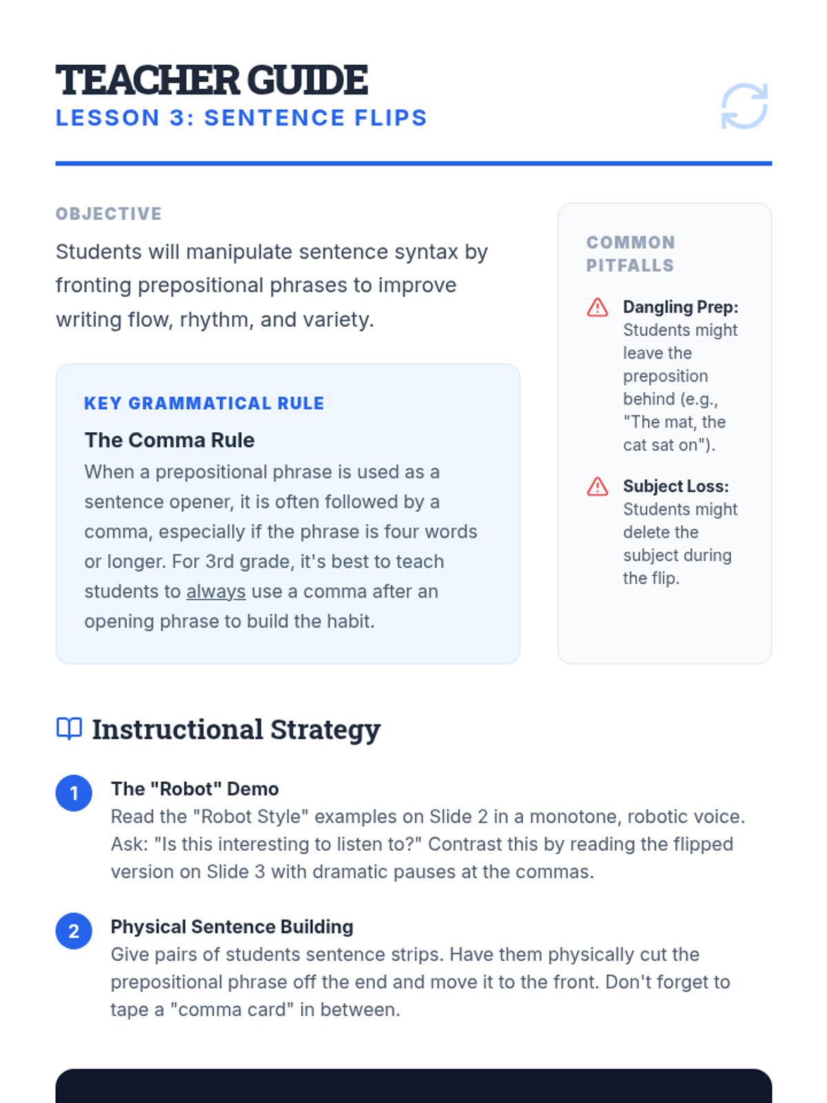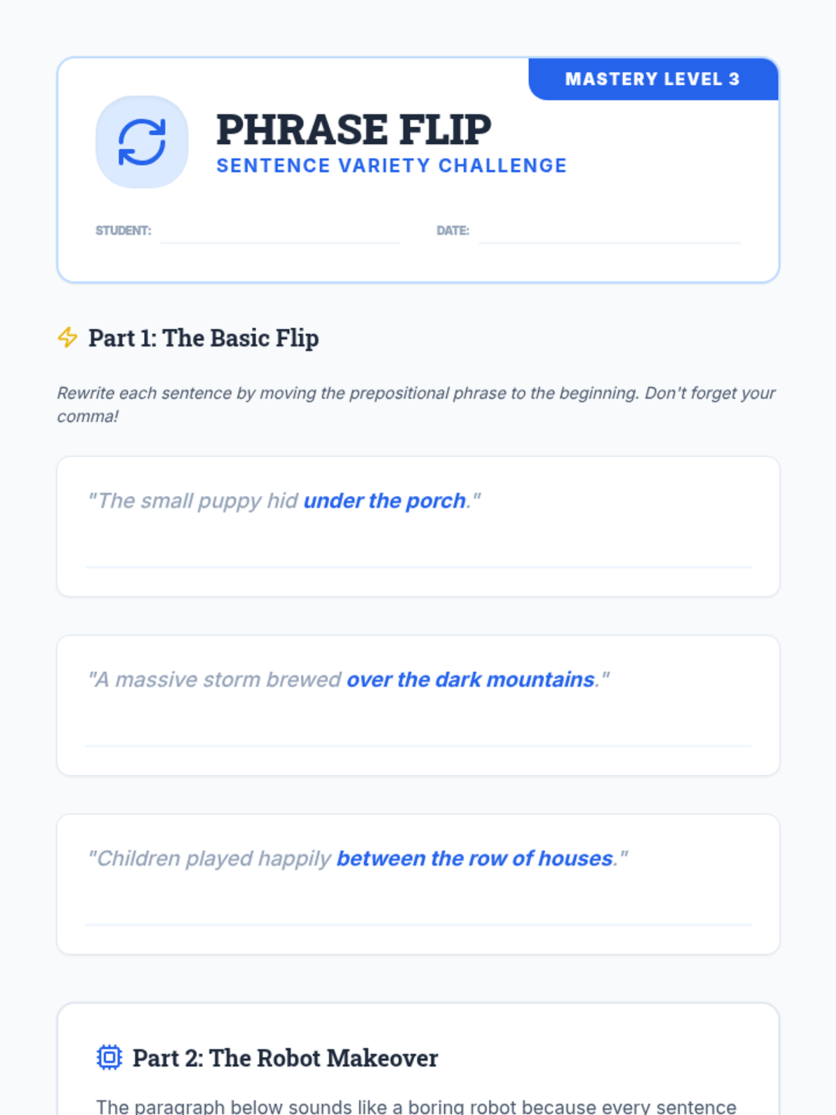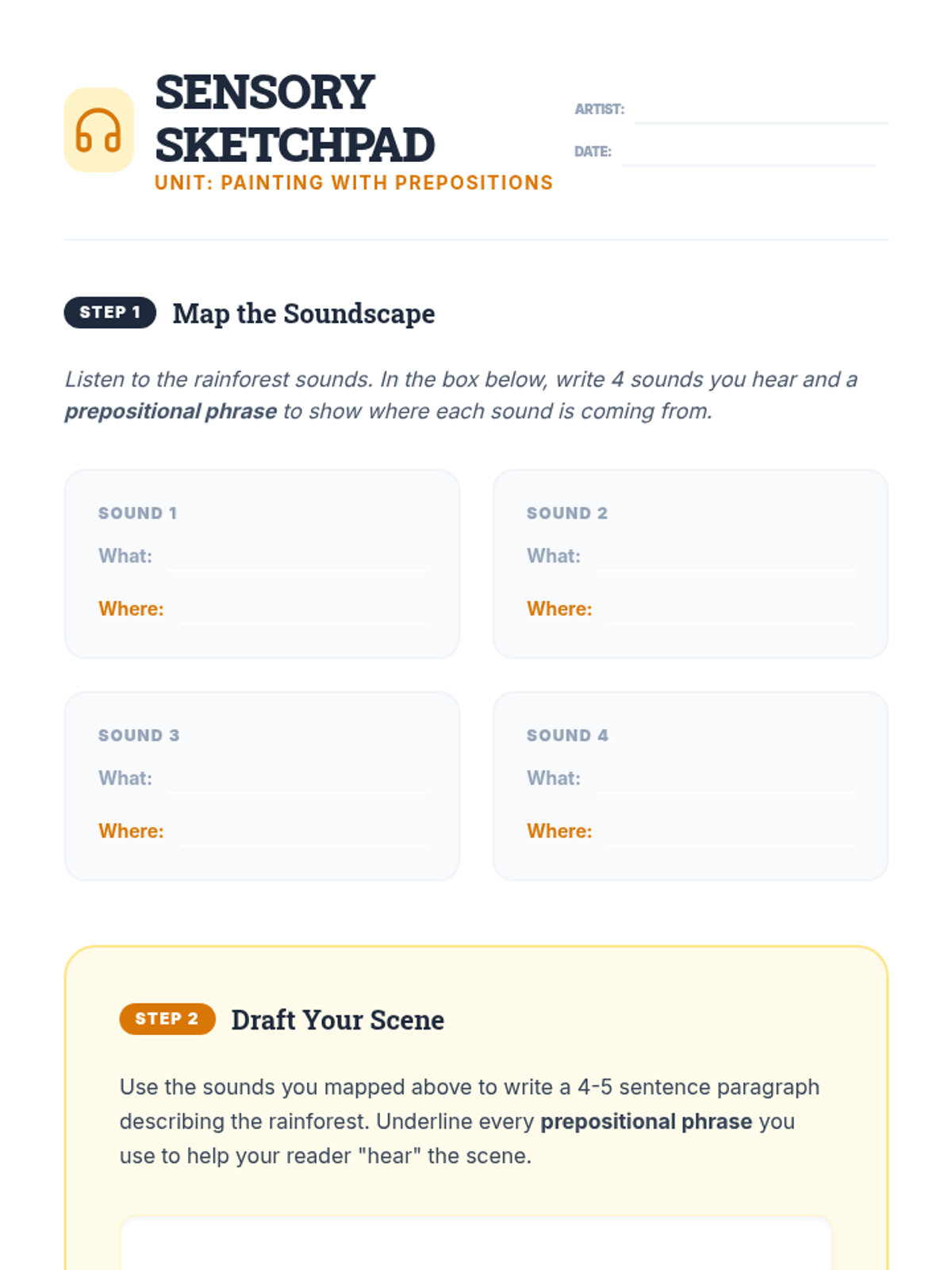 Students move beyond simple preposition identification to understanding how these words enhance descriptive writing. They analyze mentor texts, use sensory cues, and master sentence variety to paint vivid pictures for their readers.