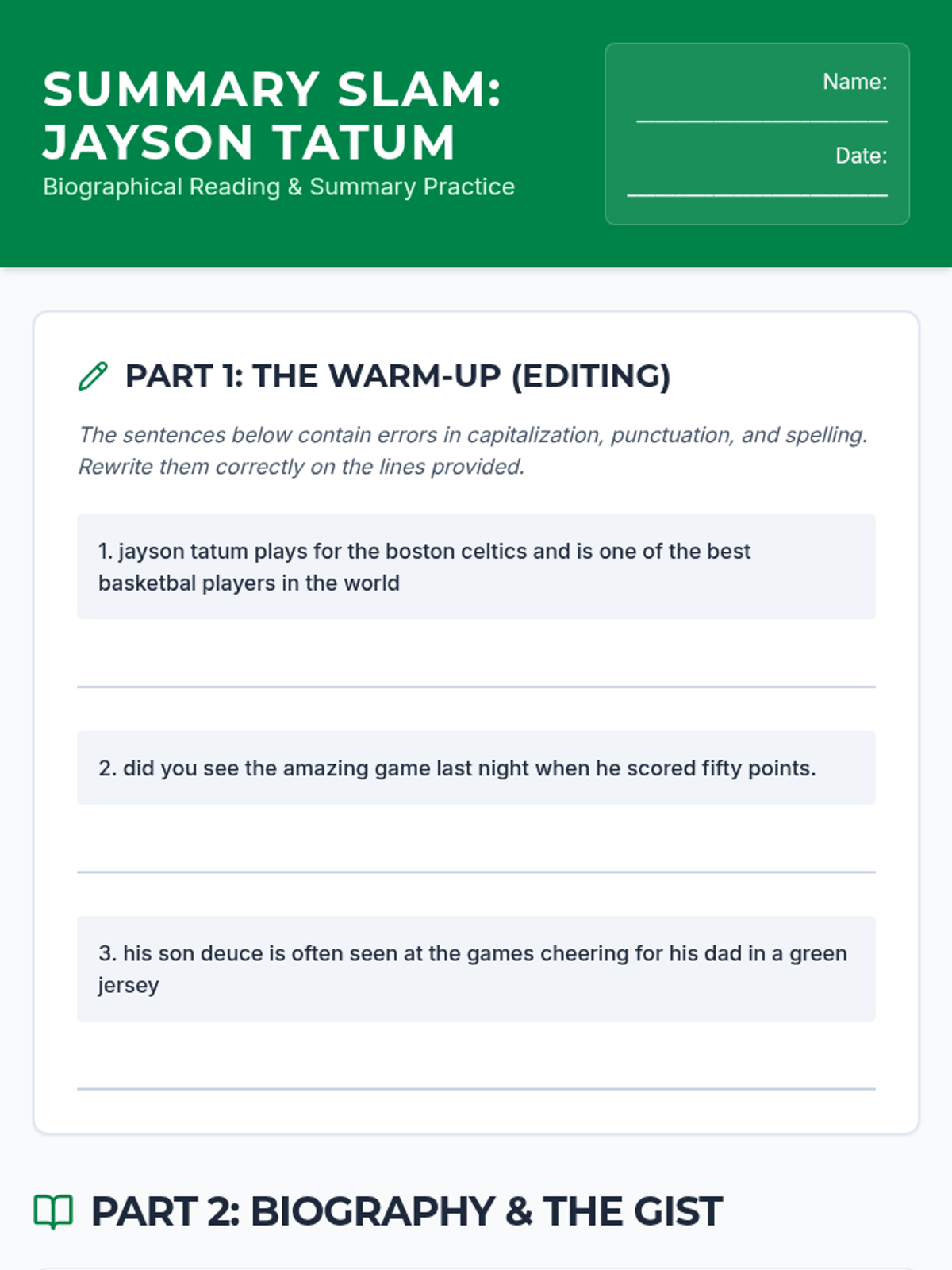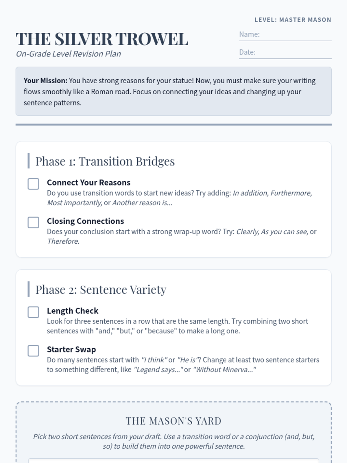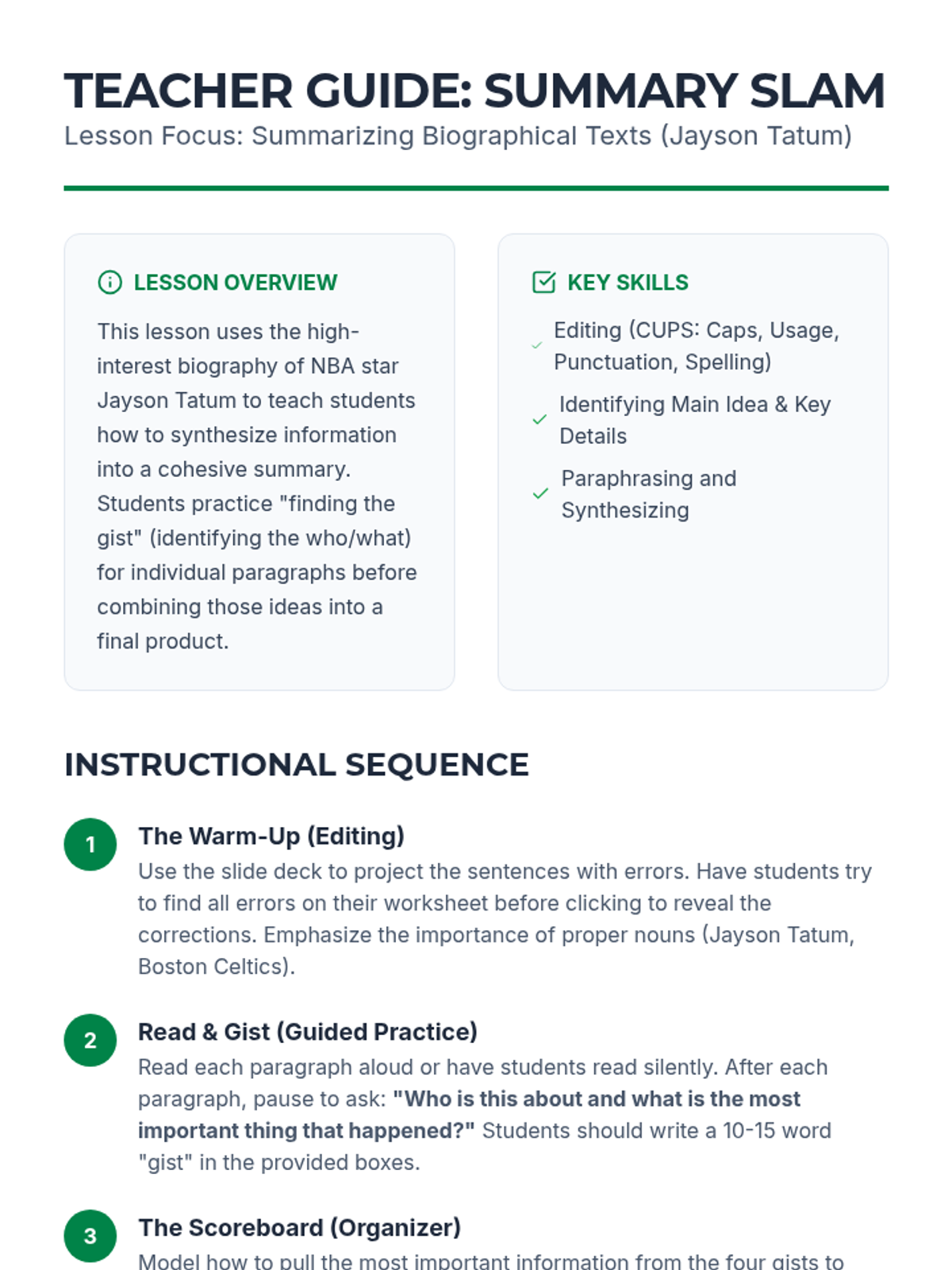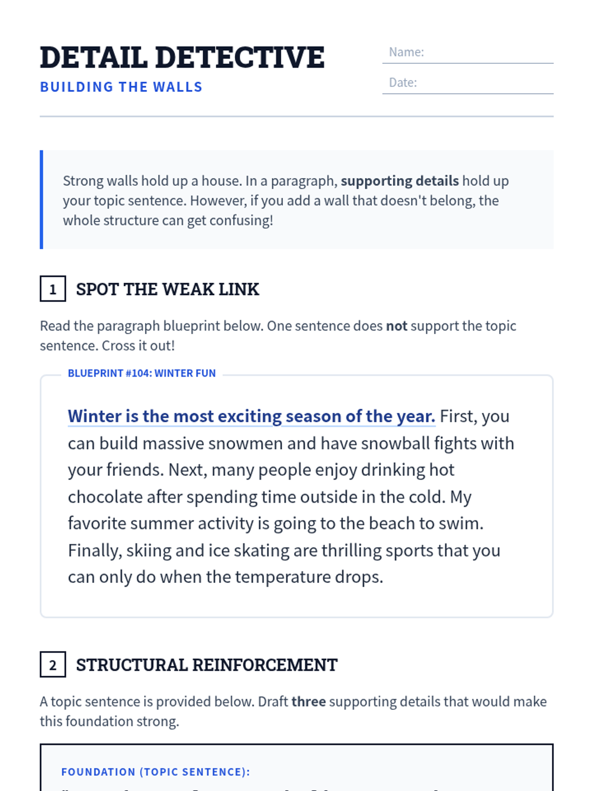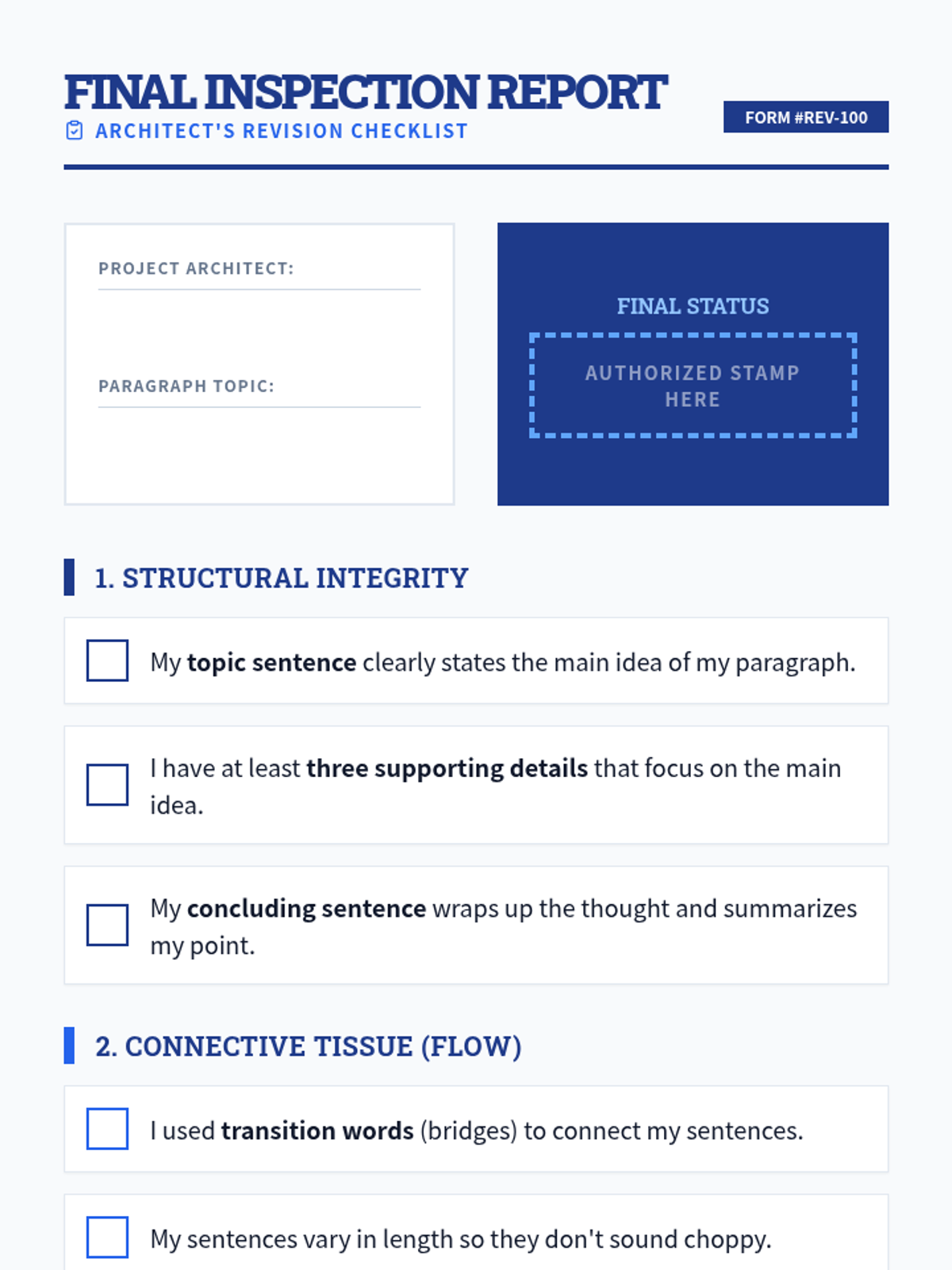 A comprehensive 2-week unit introducing students to the core components of paragraph writing, from topic sentences to concluding statements and transitions. The unit uses an architectural 'blueprint' theme to help students visualize the structure of their writing.