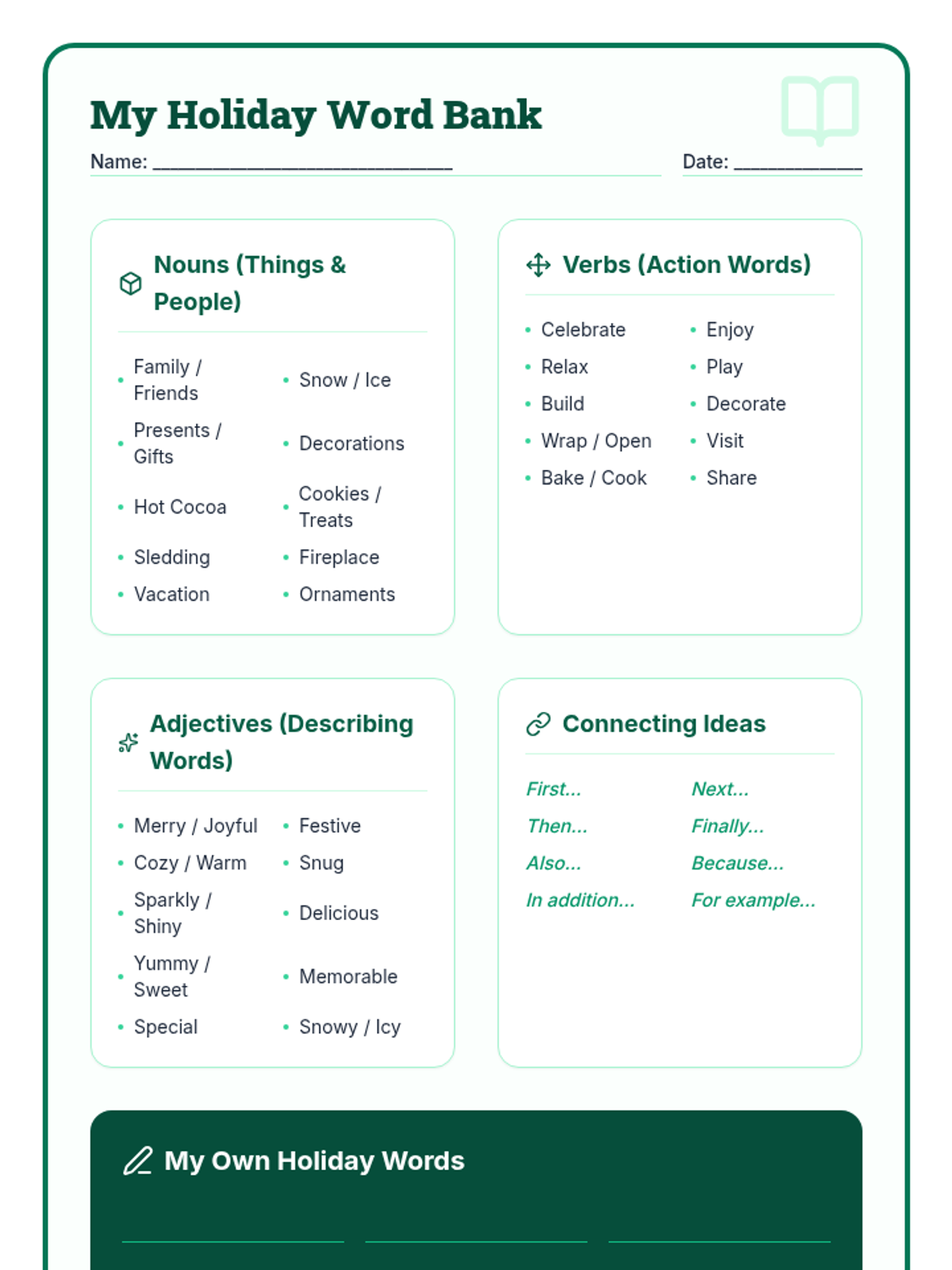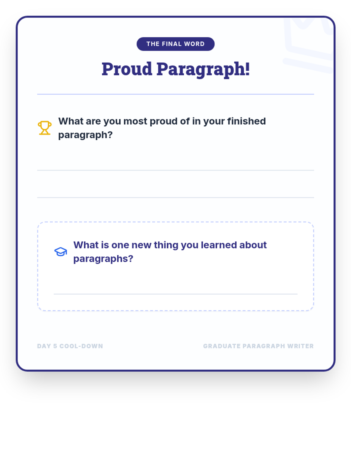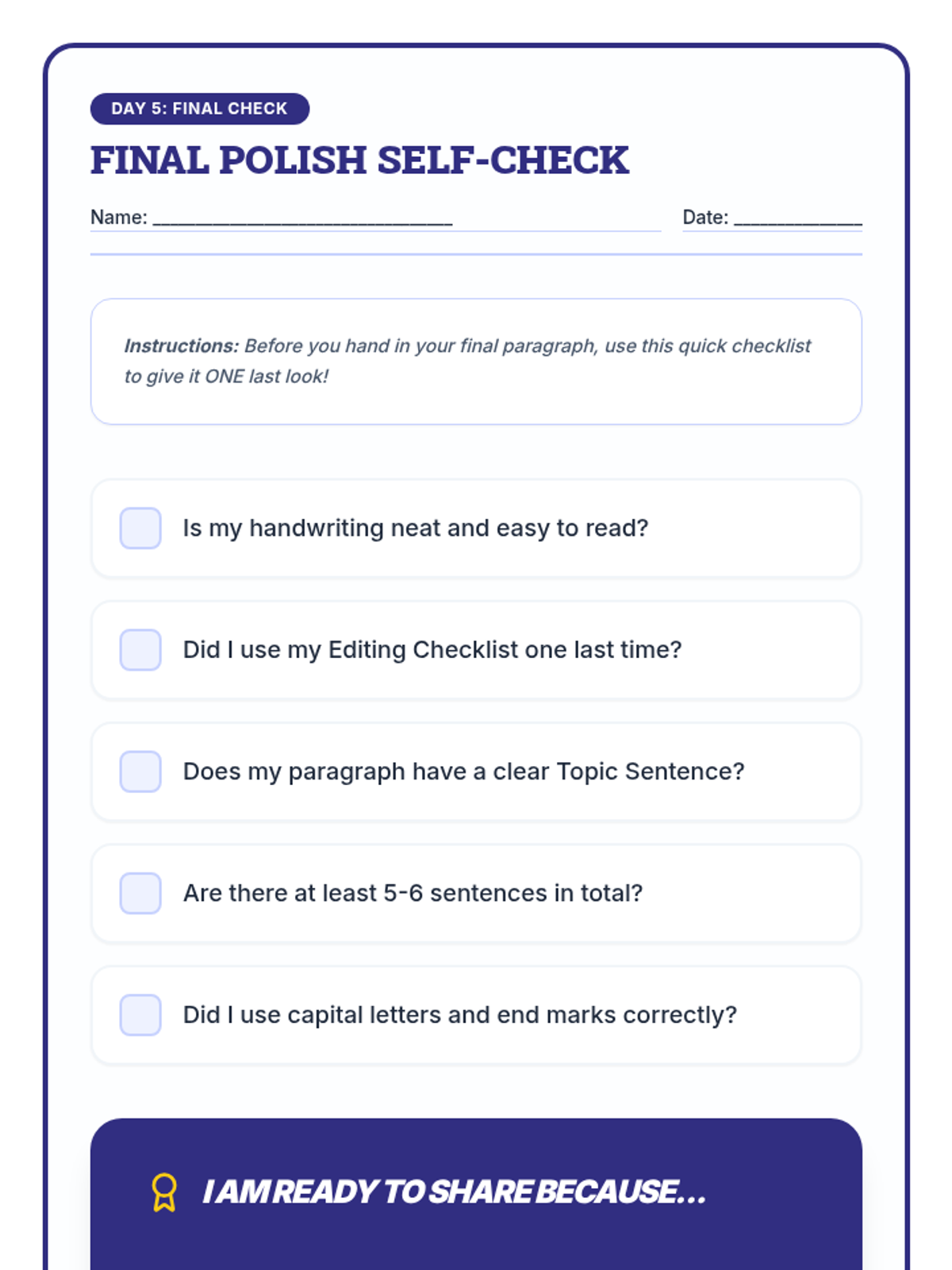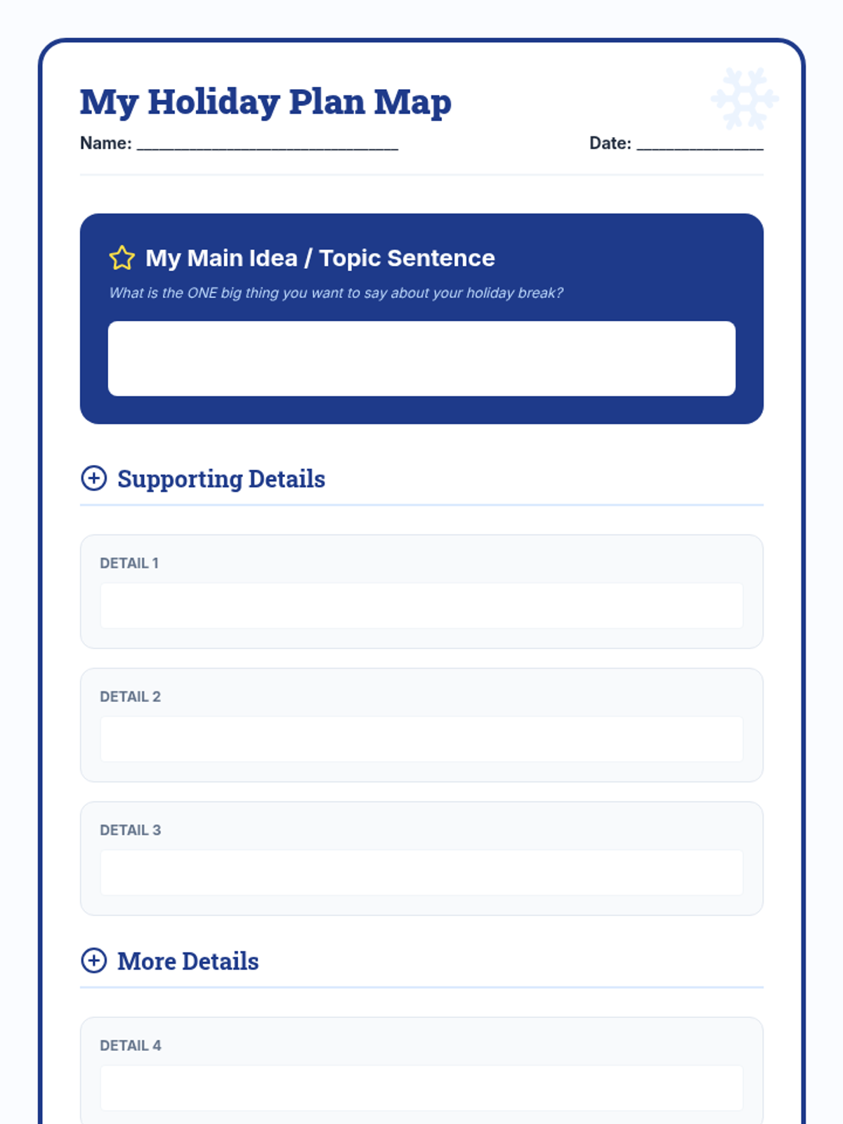 A 5-day Tier 2 writing intervention for 3rd graders focused on crafting 5-6 sentence paragraphs about their winter holiday break. Students progress from brainstorming and graphic organization to drafting, editing, and final polishing.