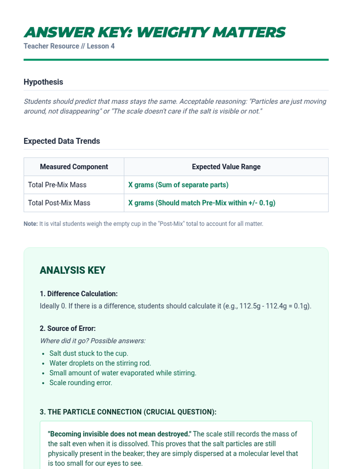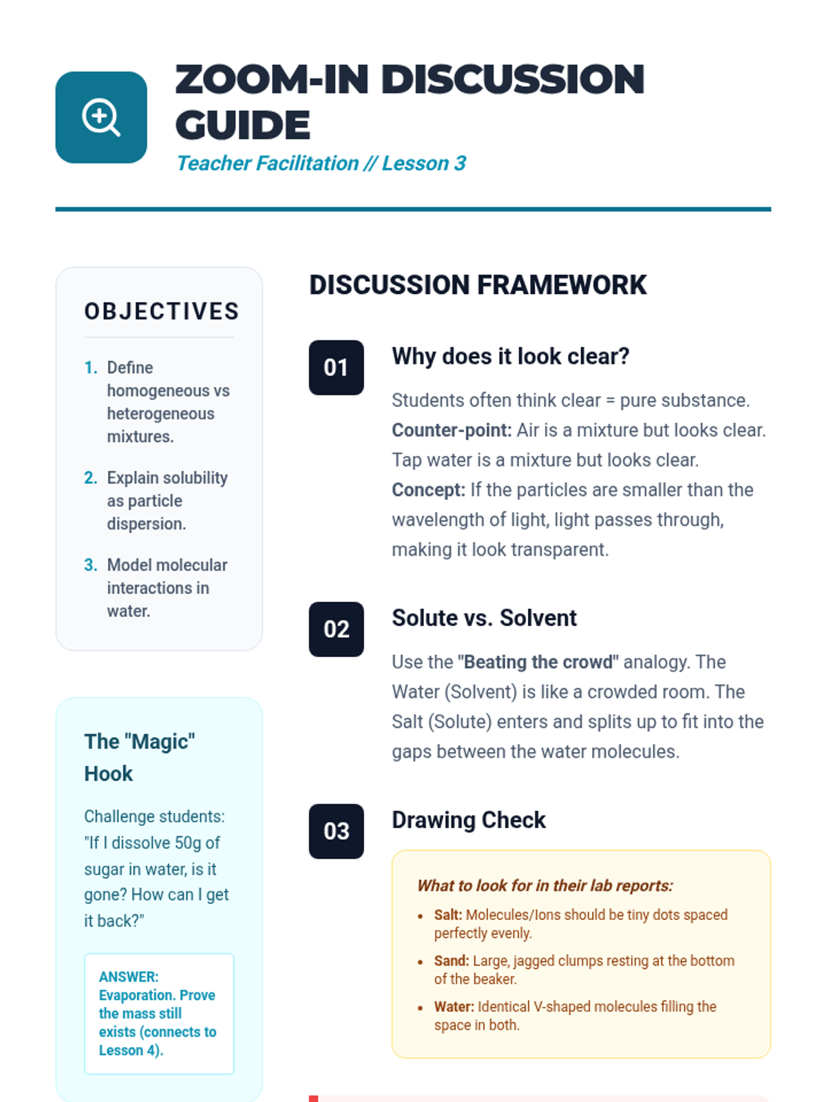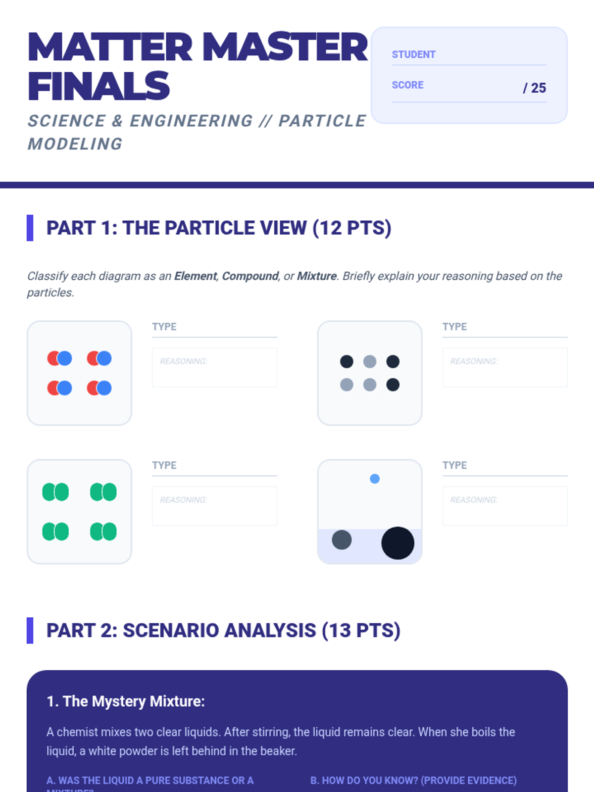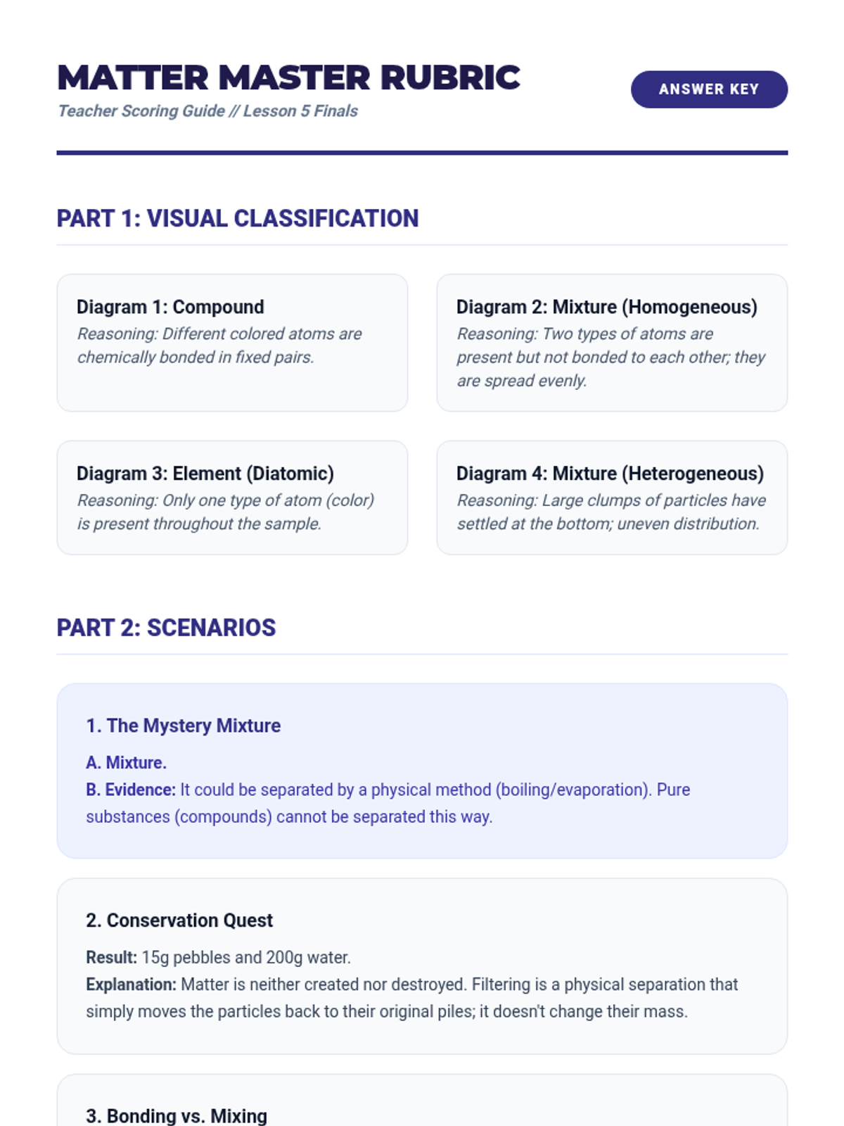 A conceptual 5-lesson sequence for 7th-grade science focusing on particle modeling to differentiate between pure substances and mixtures. Students use visualization and modeling to understand chemical vs. physical changes and the conservation of mass.