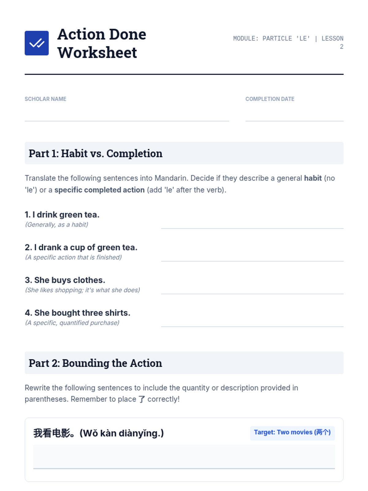 A comprehensive exploration of the Mandarin particle 'le', distinguishing between its roles as a marker of change and completion, specifically designed for undergraduate linguistics and language learners.