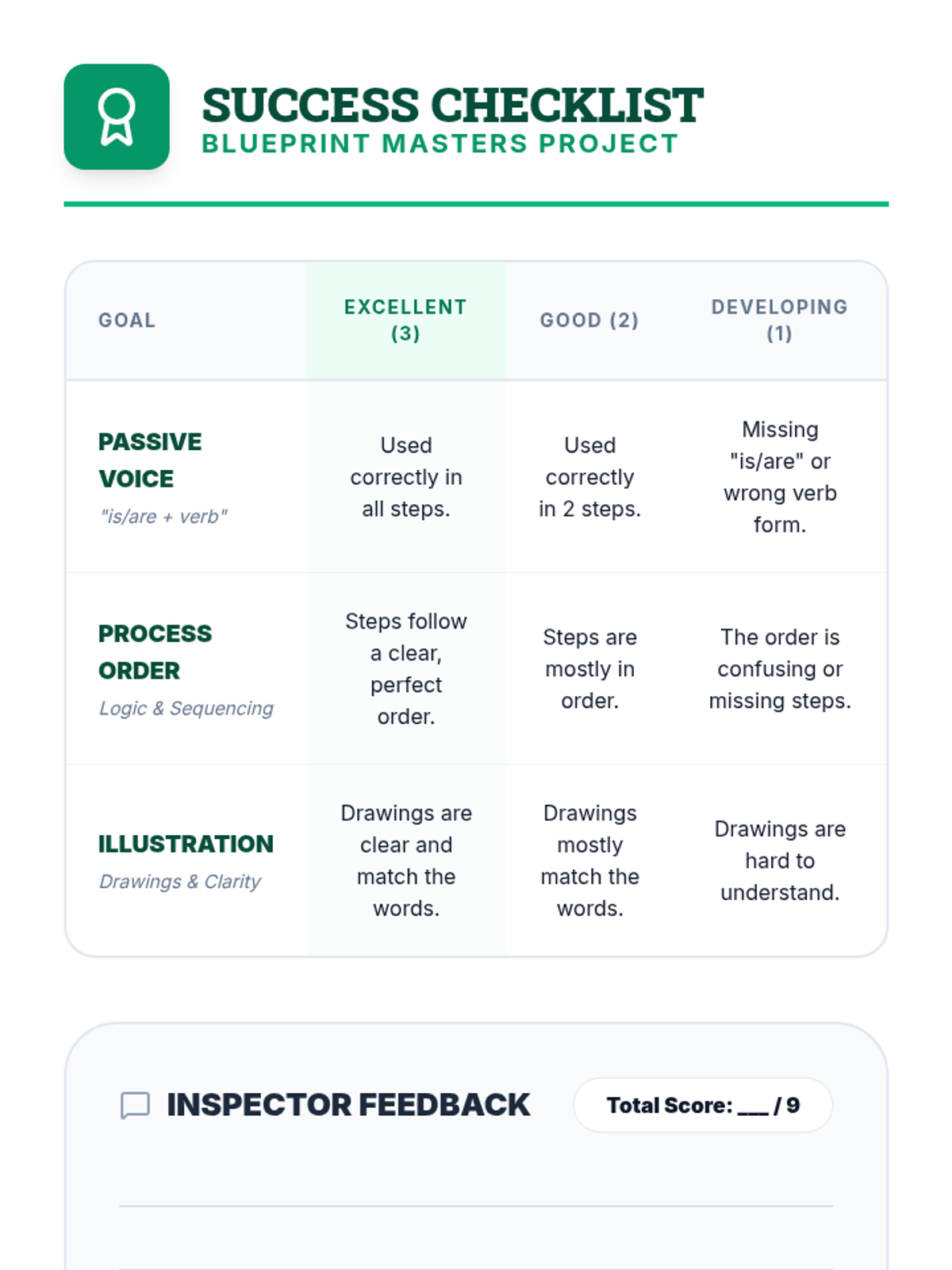 A 5-lesson sequence for 3rd-grade ESL students to master the Simple Present Passive voice through the lens of industrial processes and 'How It's Made' storytelling. Students move from noticing focus shifts to creating their own illustrated process guides.