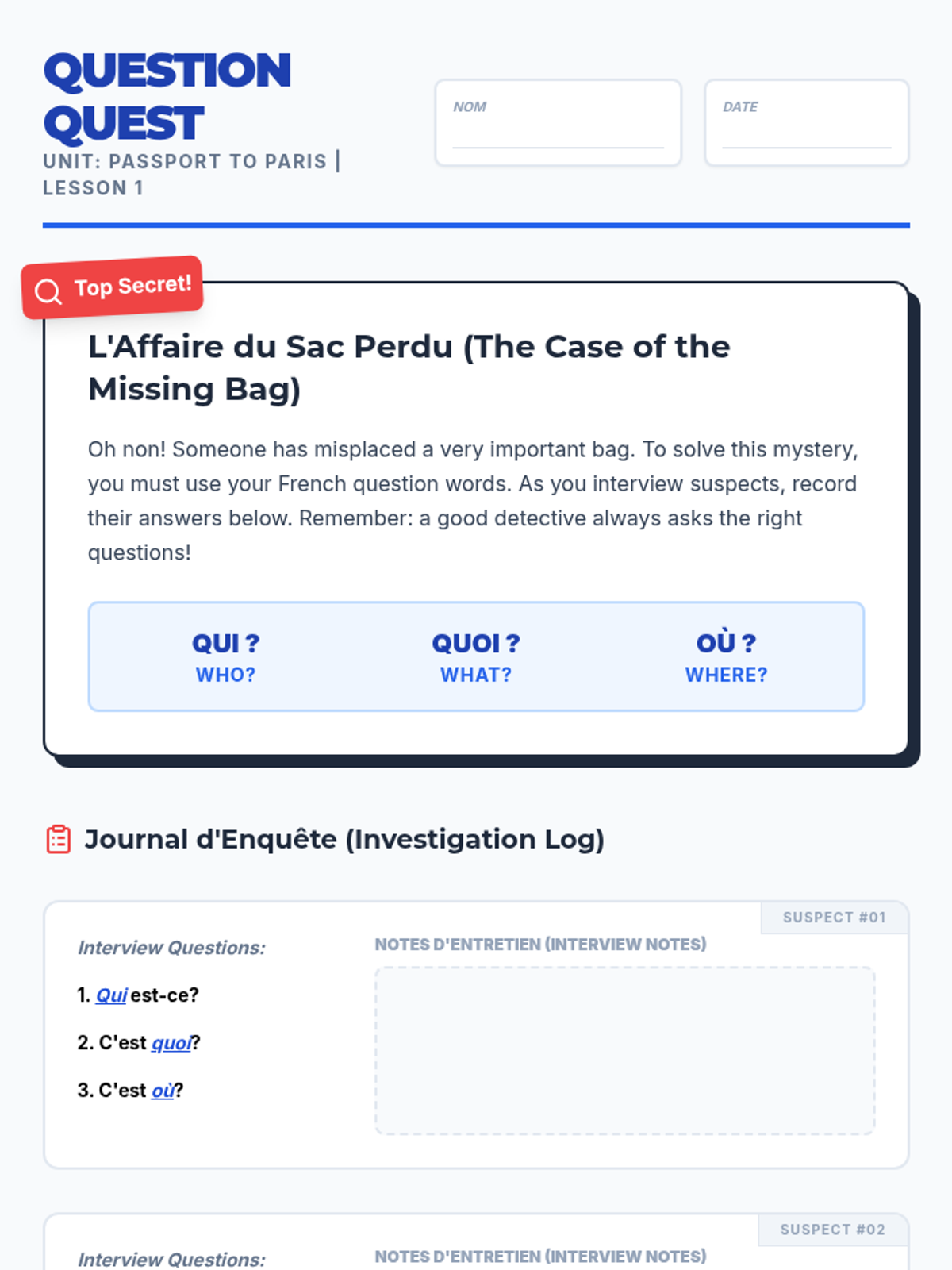 Students move beyond simple introductions to expressing personal identity, preferences, and traits using the verbs 'être' and 'aimer'. The project-based learning arc culminates in the creation of a 'Star Student' poster where students present who they are in French.