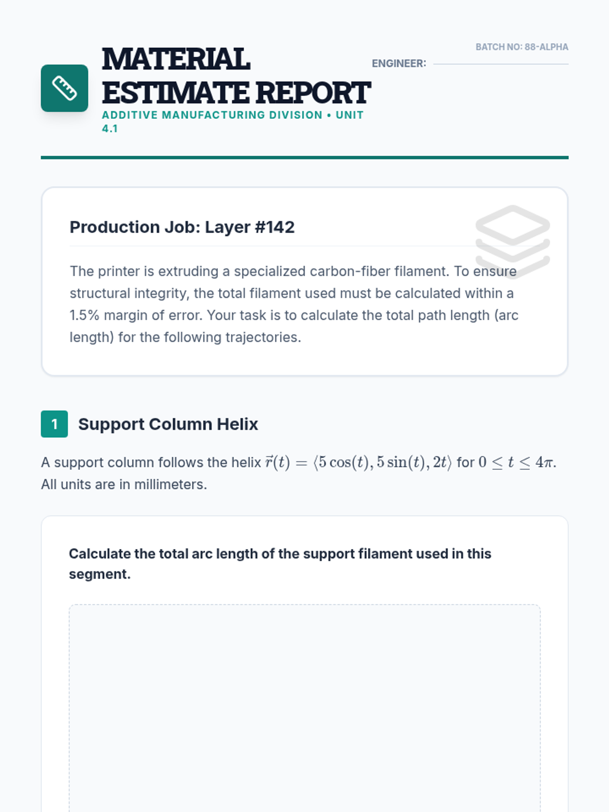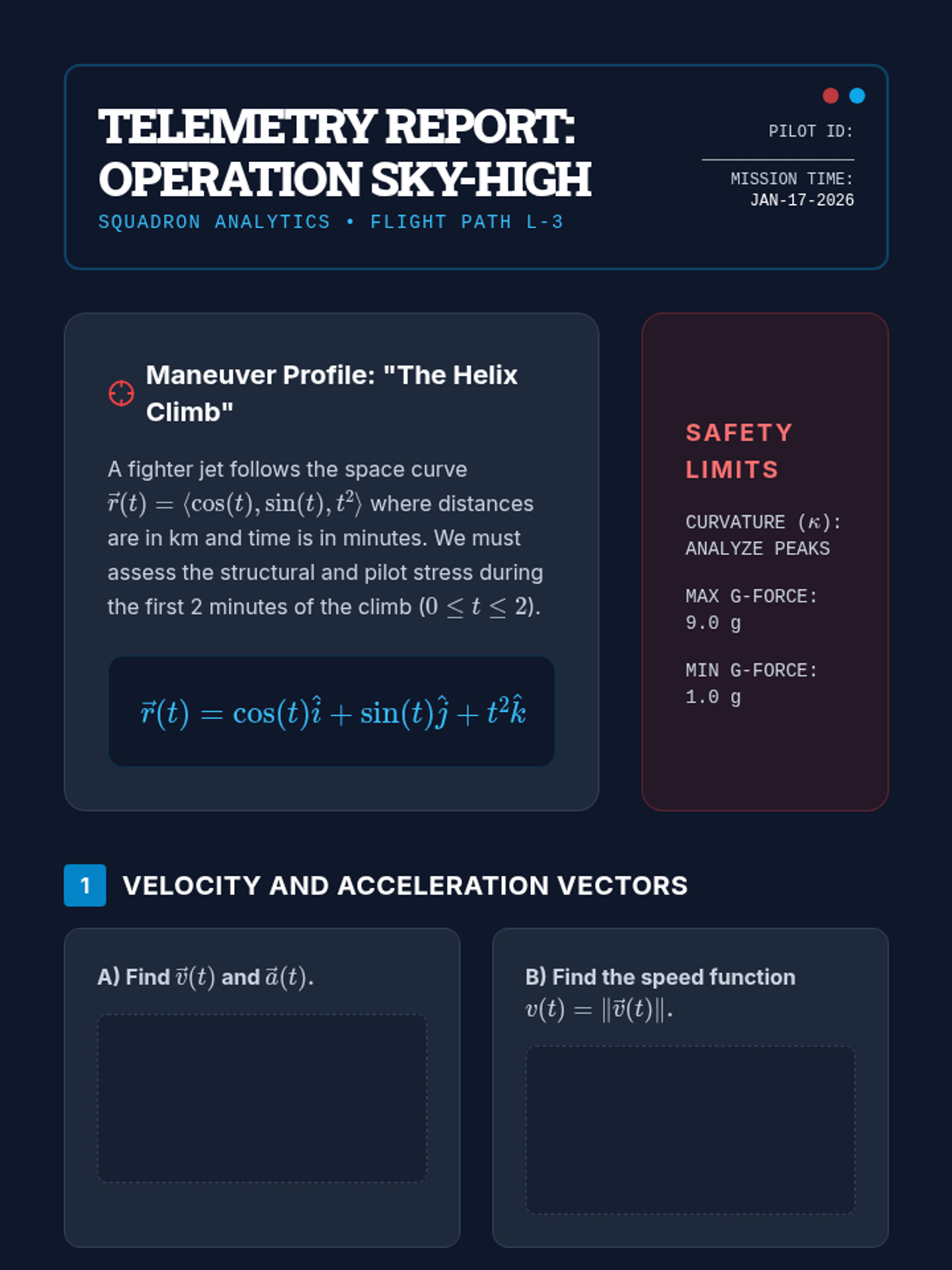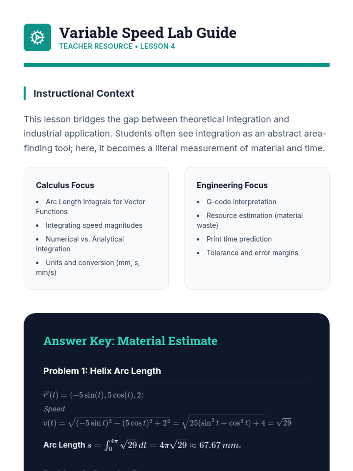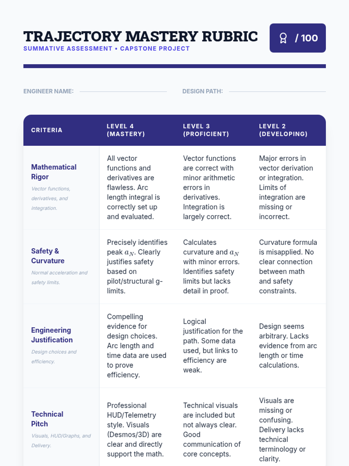 A project-based calculus sequence for 12th grade students focusing on the engineering applications of vector-valued functions, including path optimization, differentiability, and arc length.