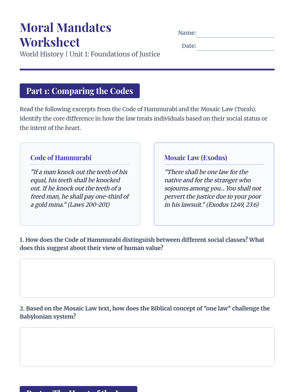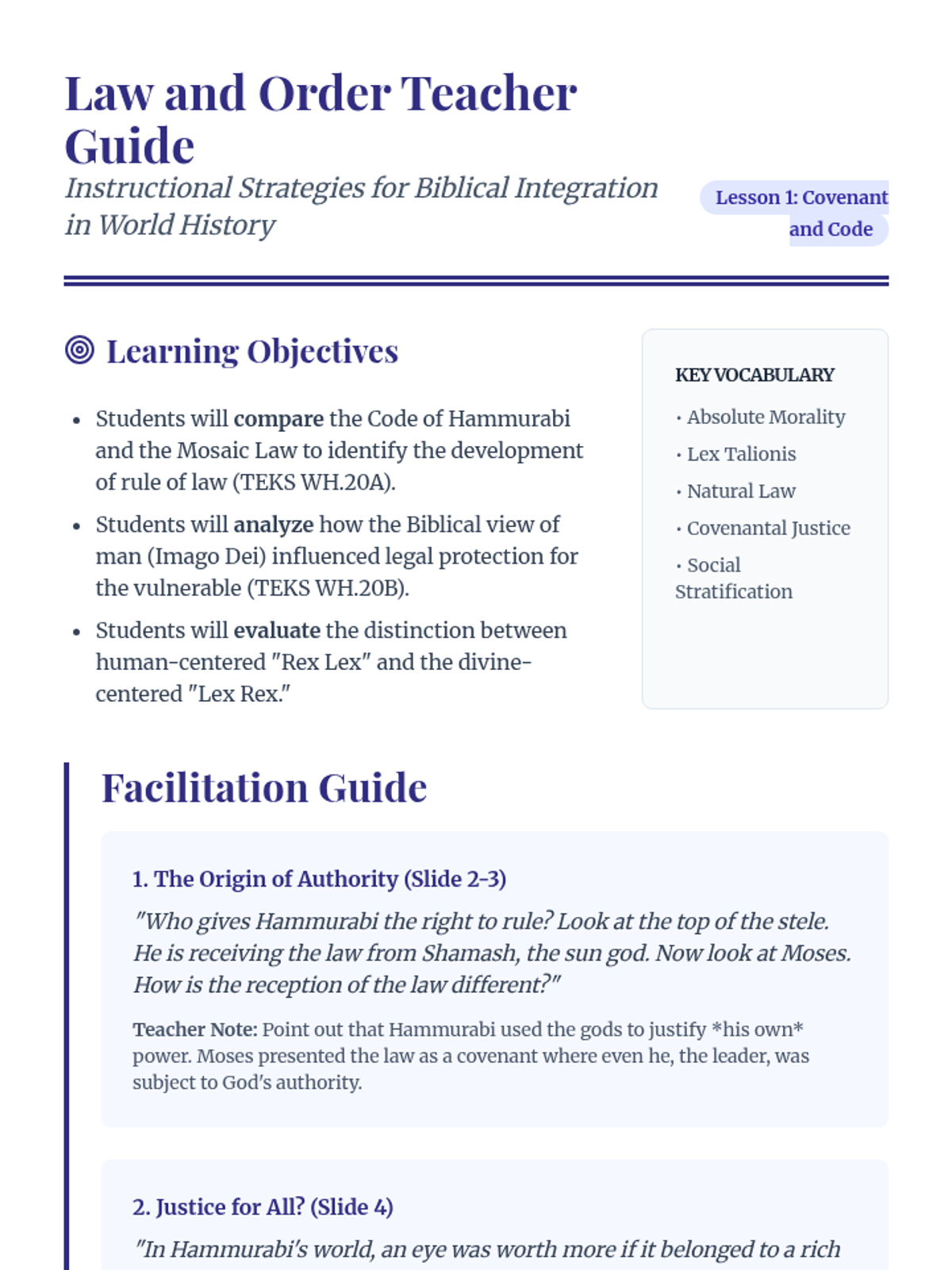 A World History sequence for 10th grade focused on the evolution of law and ethics from ancient civilizations to the modern era. This course integrates Biblical perspectives on absolute morality, the nature of man, and the foundations of justice within the framework of the Texas Essential Knowledge and Skills (TEKS).