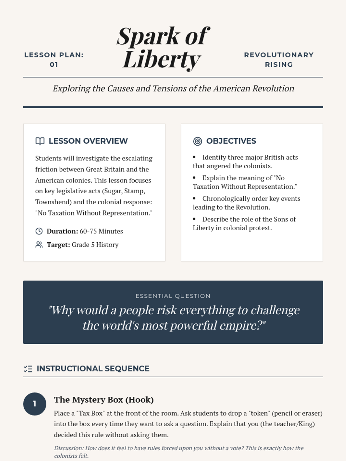 A comprehensive unit on the American Revolution, covering the causes of colonial friction and the strategic military turning points of the war for independence.