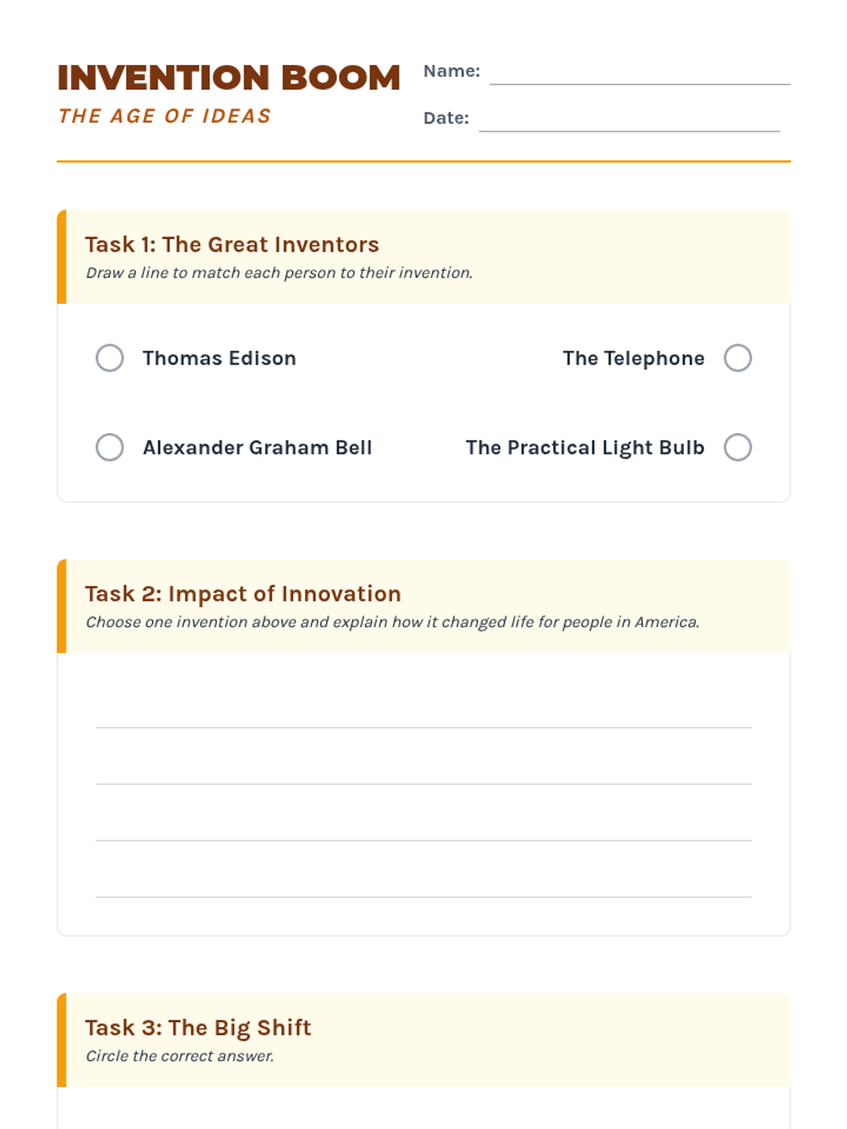 A 13-day journey through modern American history, from the Industrial Revolution to the present day, focusing on key historical figures and major conflicts as outlined in the 5th Grade TEKS. Each lesson is designed for a quick 30-minute block, integrating multimedia and primary source analysis.