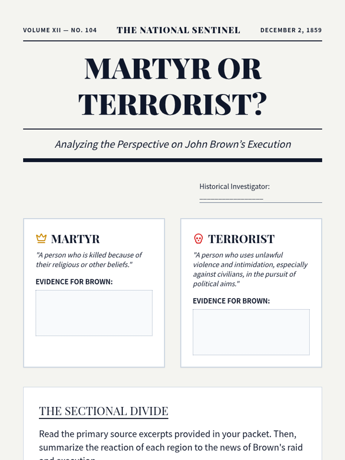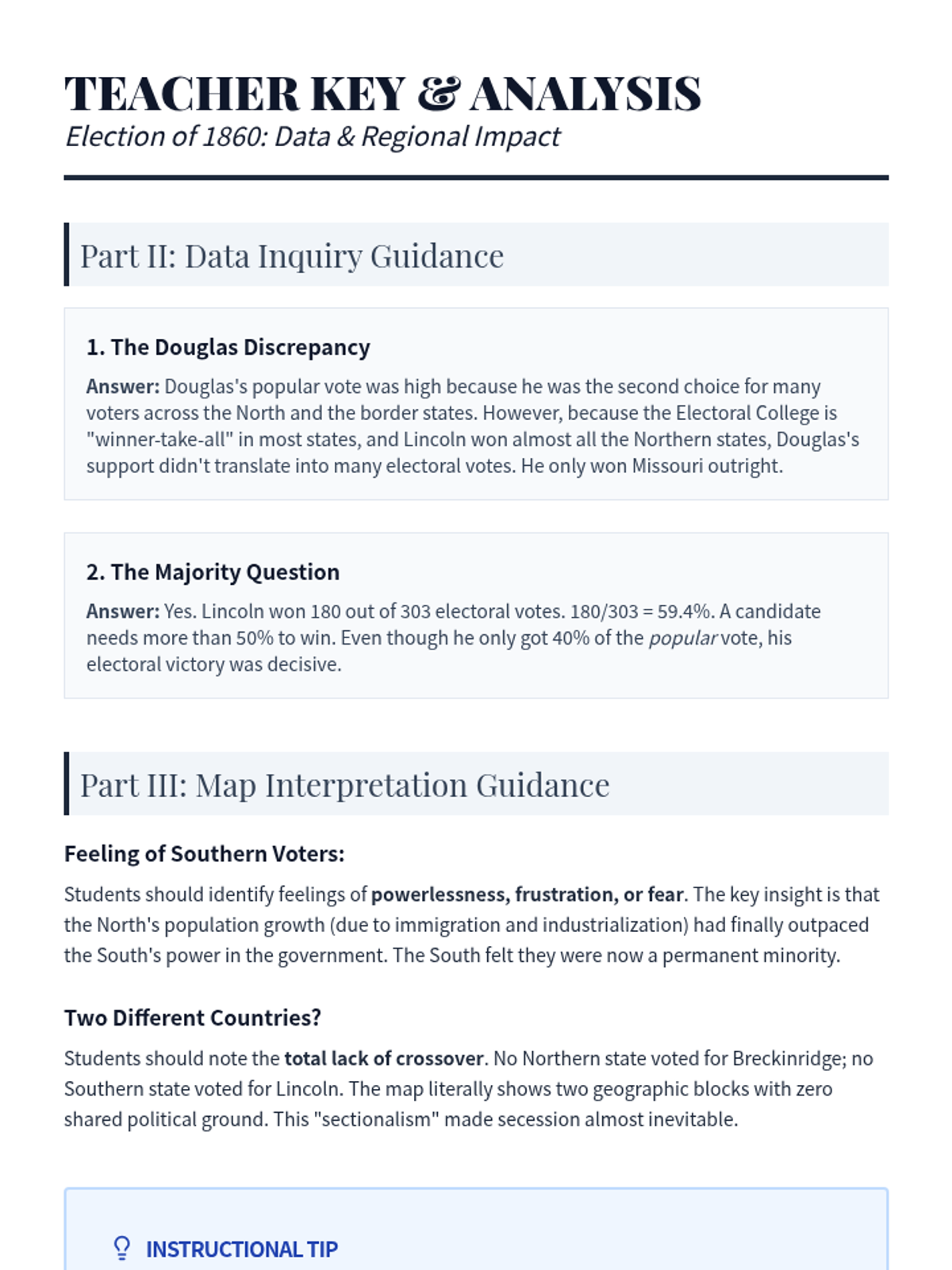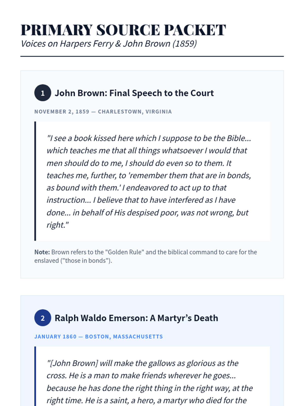 This sequence examines the critical events of the late 1850s that led to the American Civil War, including the Dred Scott decision, the Lincoln-Douglas debates, John Brown's raid, the Election of 1860, and the onset of secession. Students will analyze primary sources and legal rulings to understand the failure of diplomacy in the face of the slavery crisis.