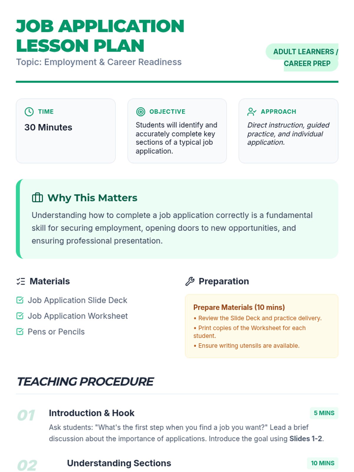 This sequence guides students from self-discovery to professional application. It begins by helping middle schoolers identify their unique 'superpowers' (strengths) and transitions into practical skills for adult learners or older students ready for their first job application.
