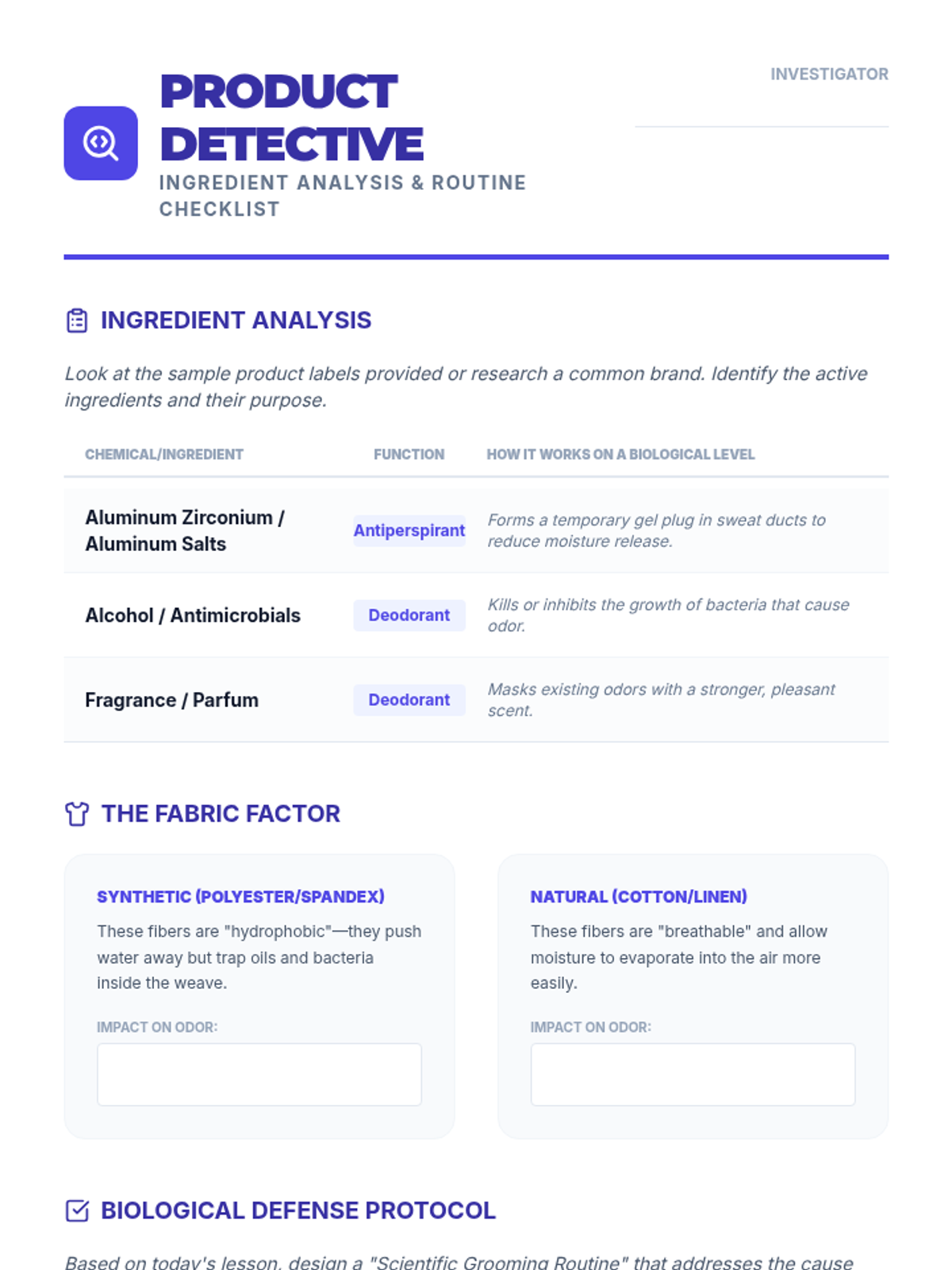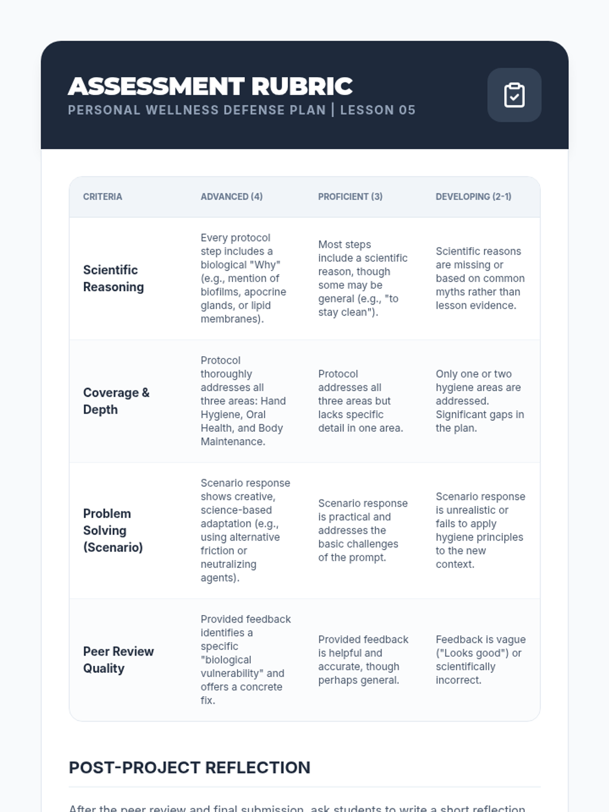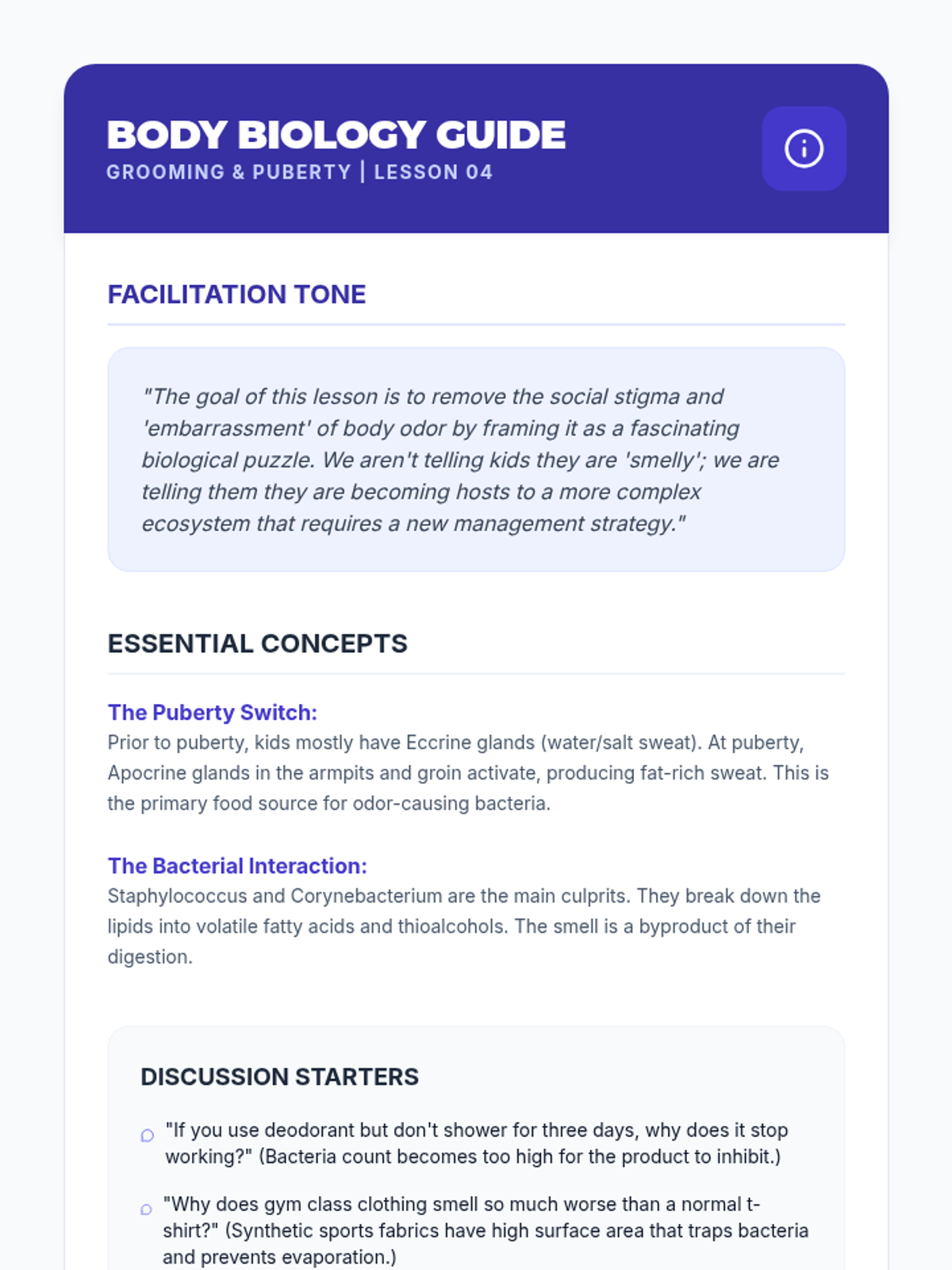 A 6th-grade inquiry-based sequence where students investigate the science of microorganisms to develop evidence-based personal hygiene protocols. The sequence covers microbial transmission, hand hygiene efficacy, oral health, body odor biology, and personal wellness planning.