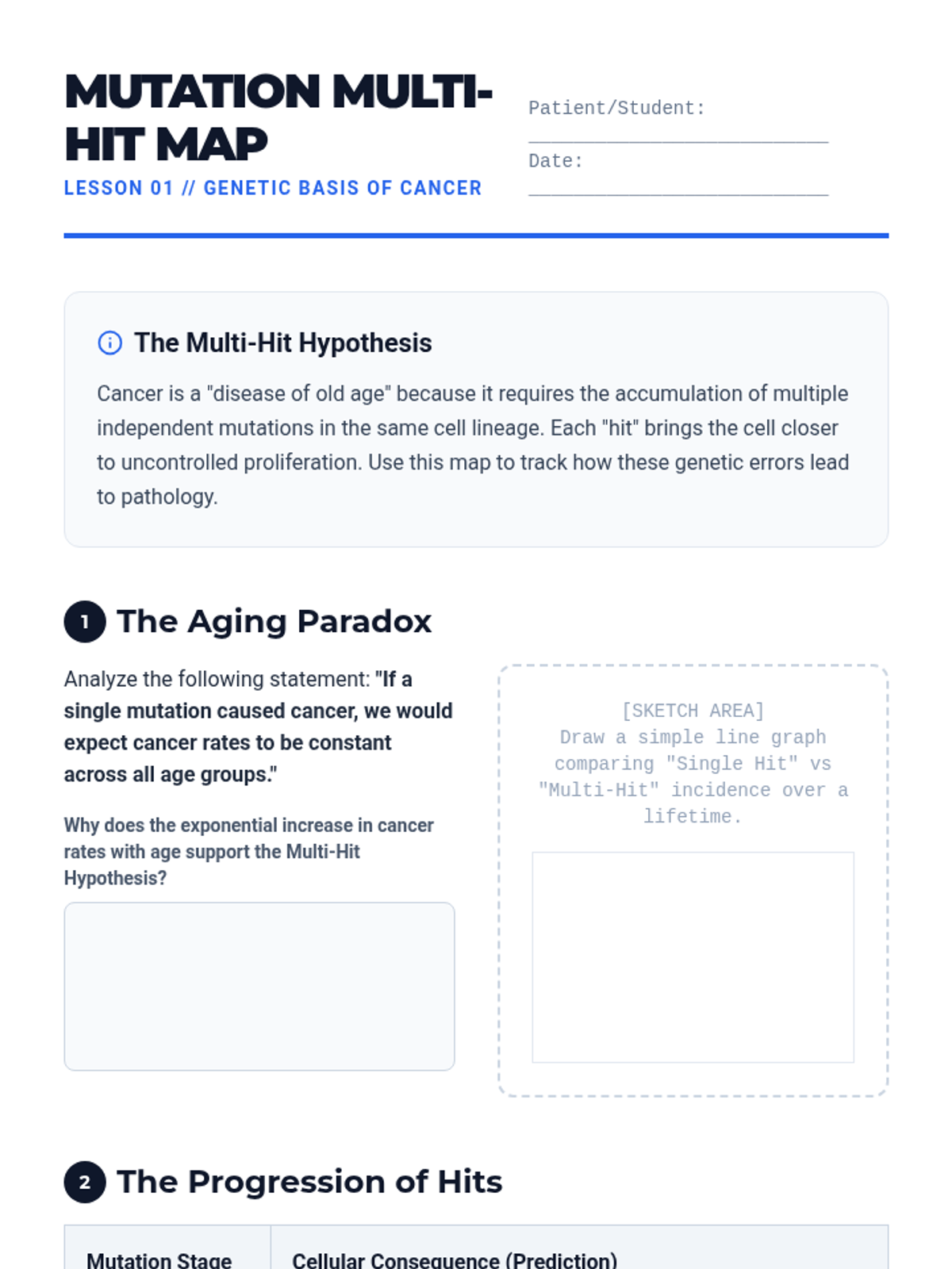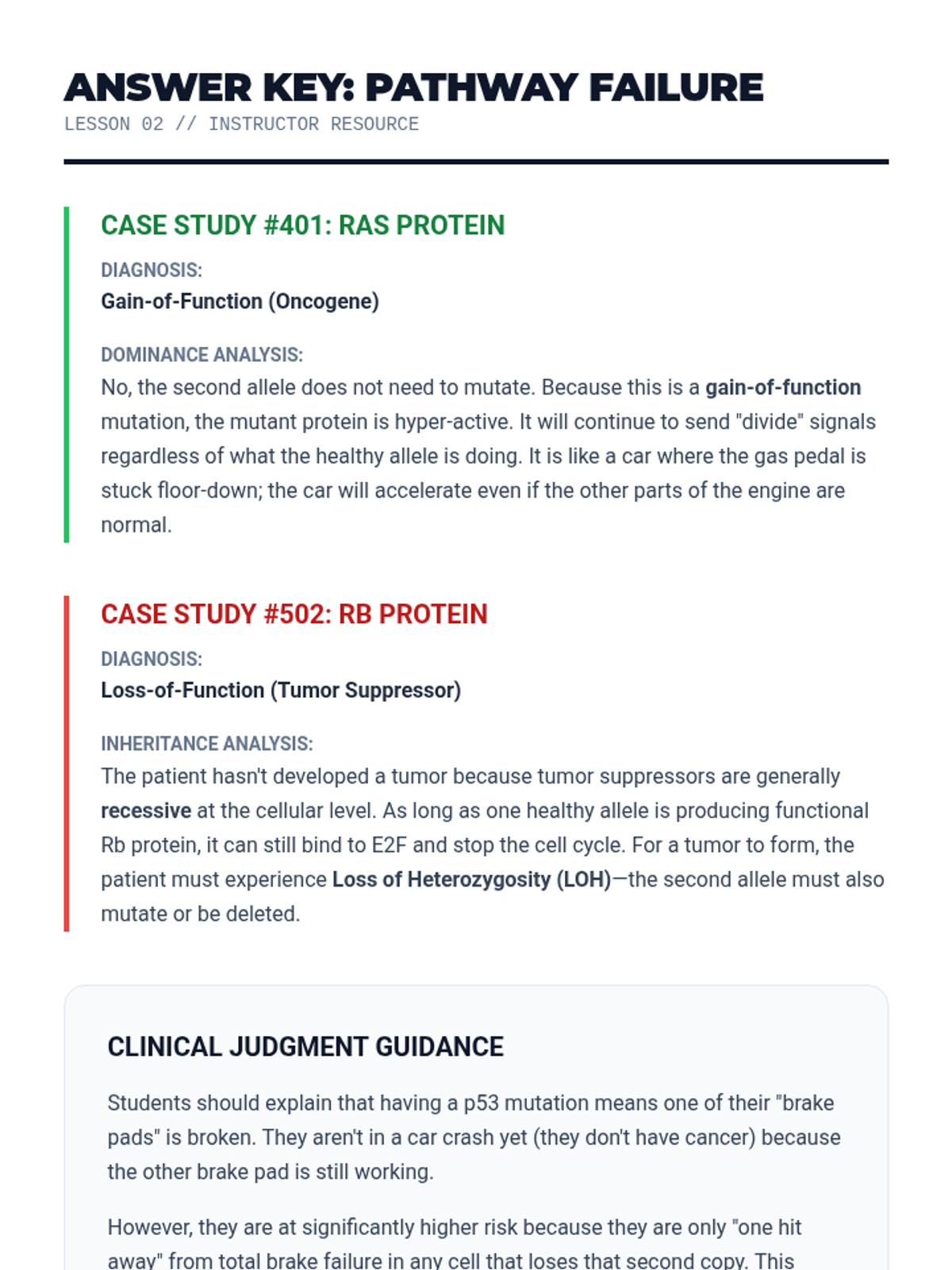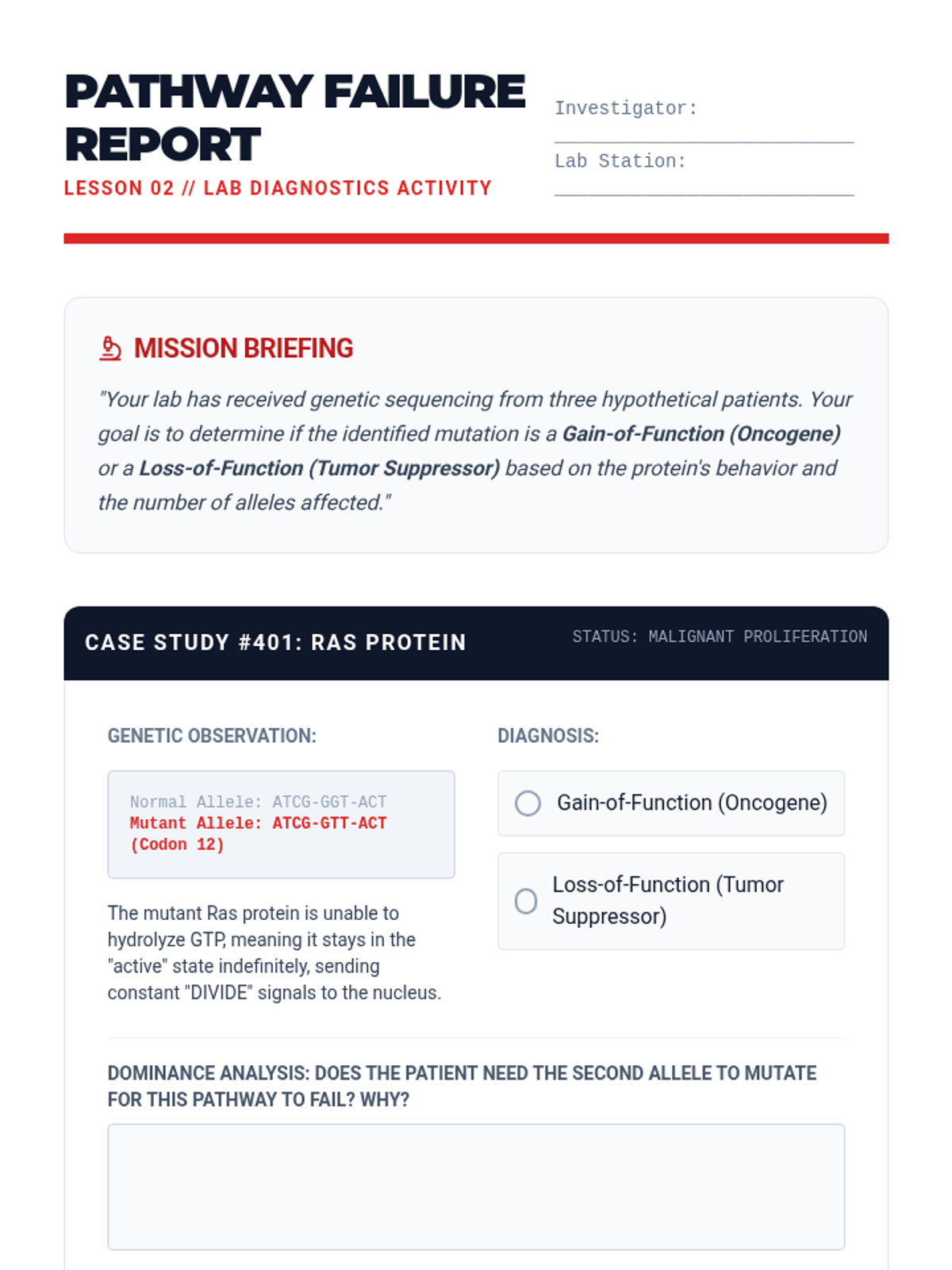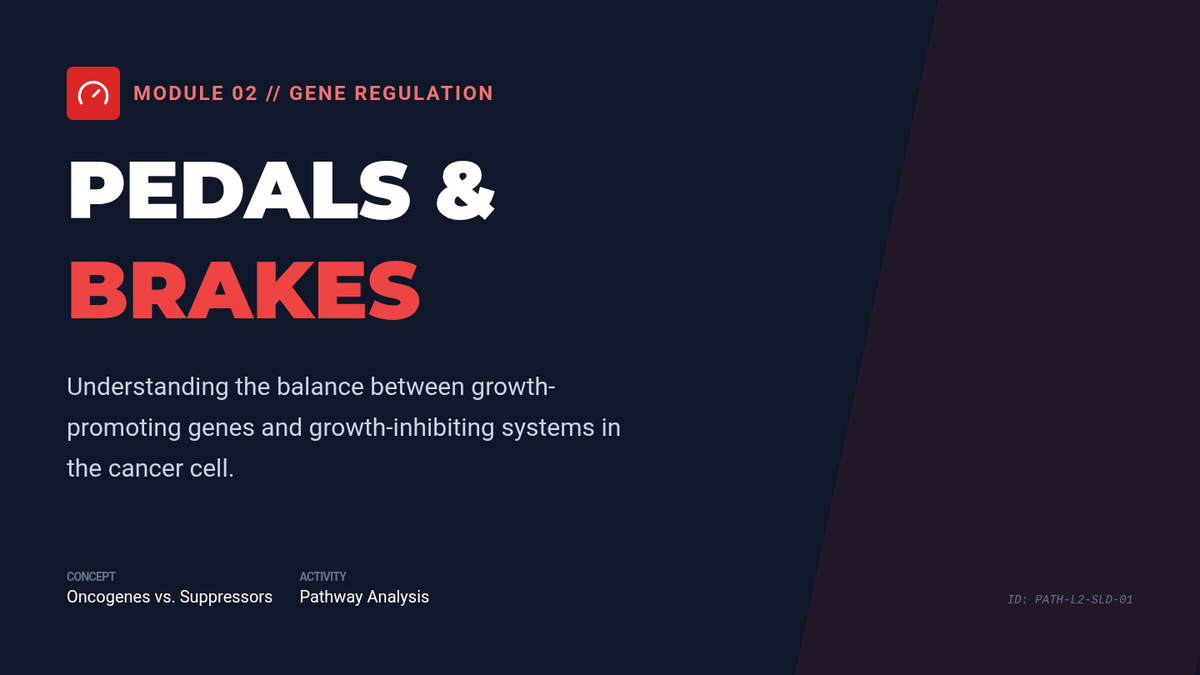 This sequence explores oncology through the lens of cell cycle regulation. Students investigate the genetic triggers of cancer, the functional differences between oncogenes and tumor suppressors, and the physiological adaptations that allow tumors to thrive and spread, concluding with an analysis of modern medical interventions.
