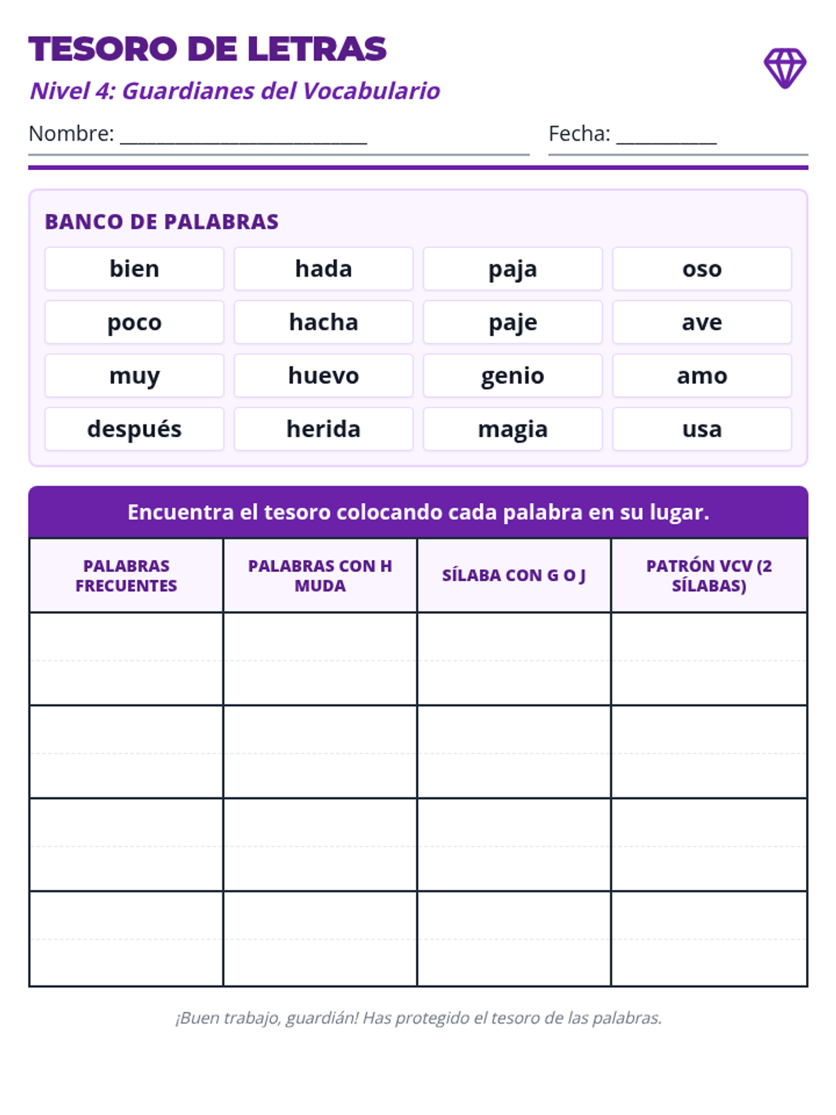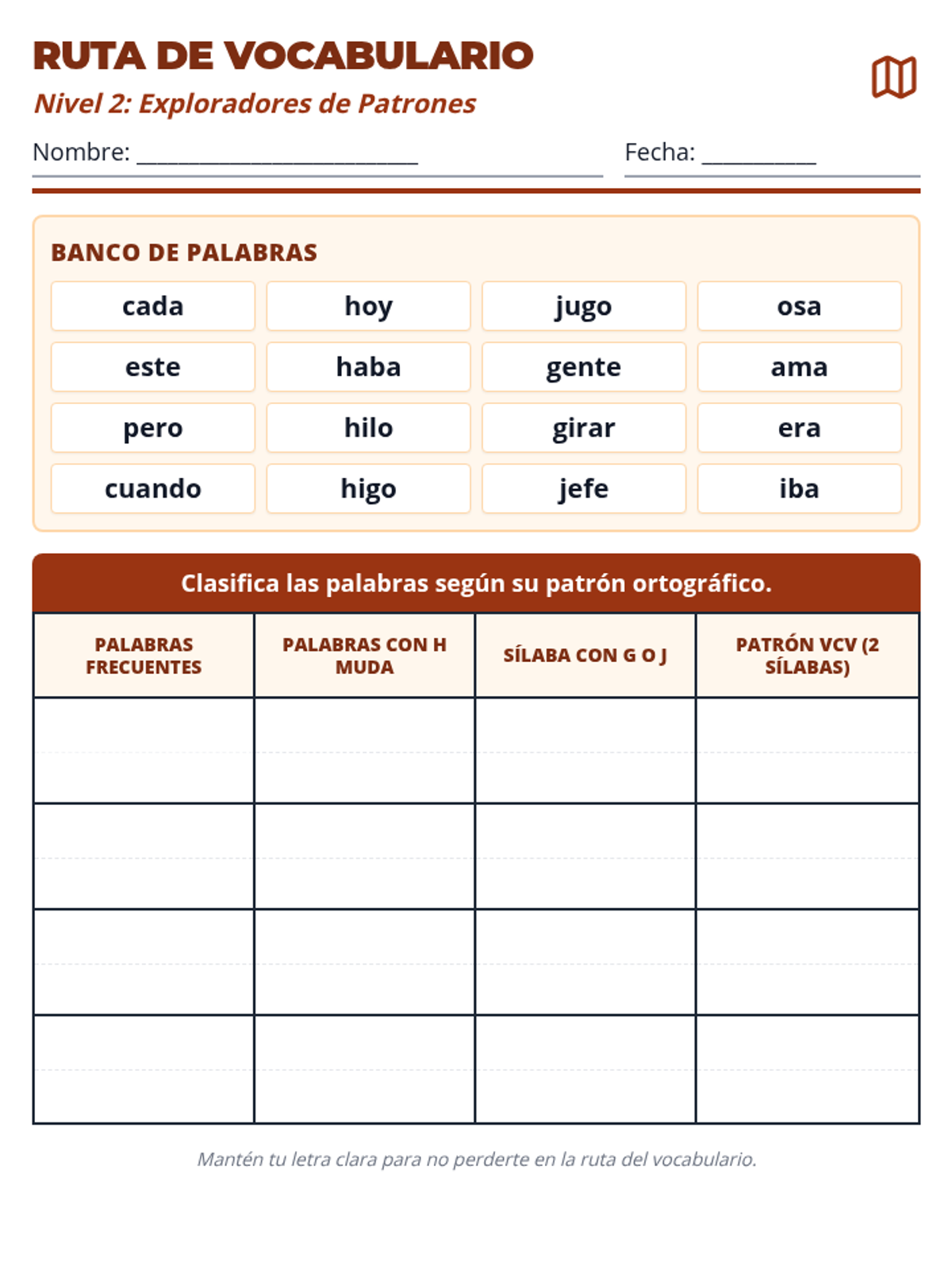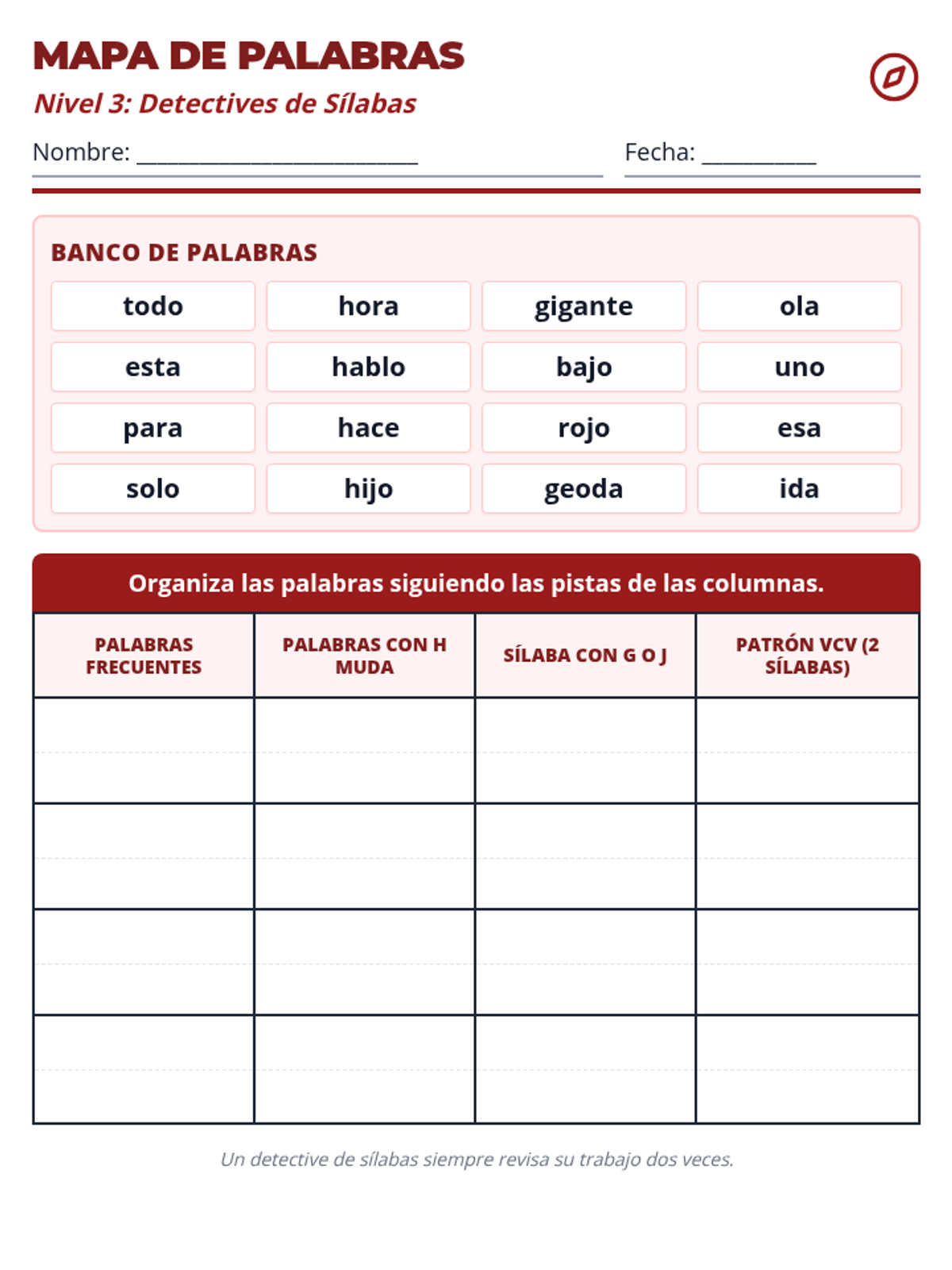 A series of Spanish word sorting lessons designed to reinforce high-frequency words and common orthographic patterns like the silent H and G/J syllables.