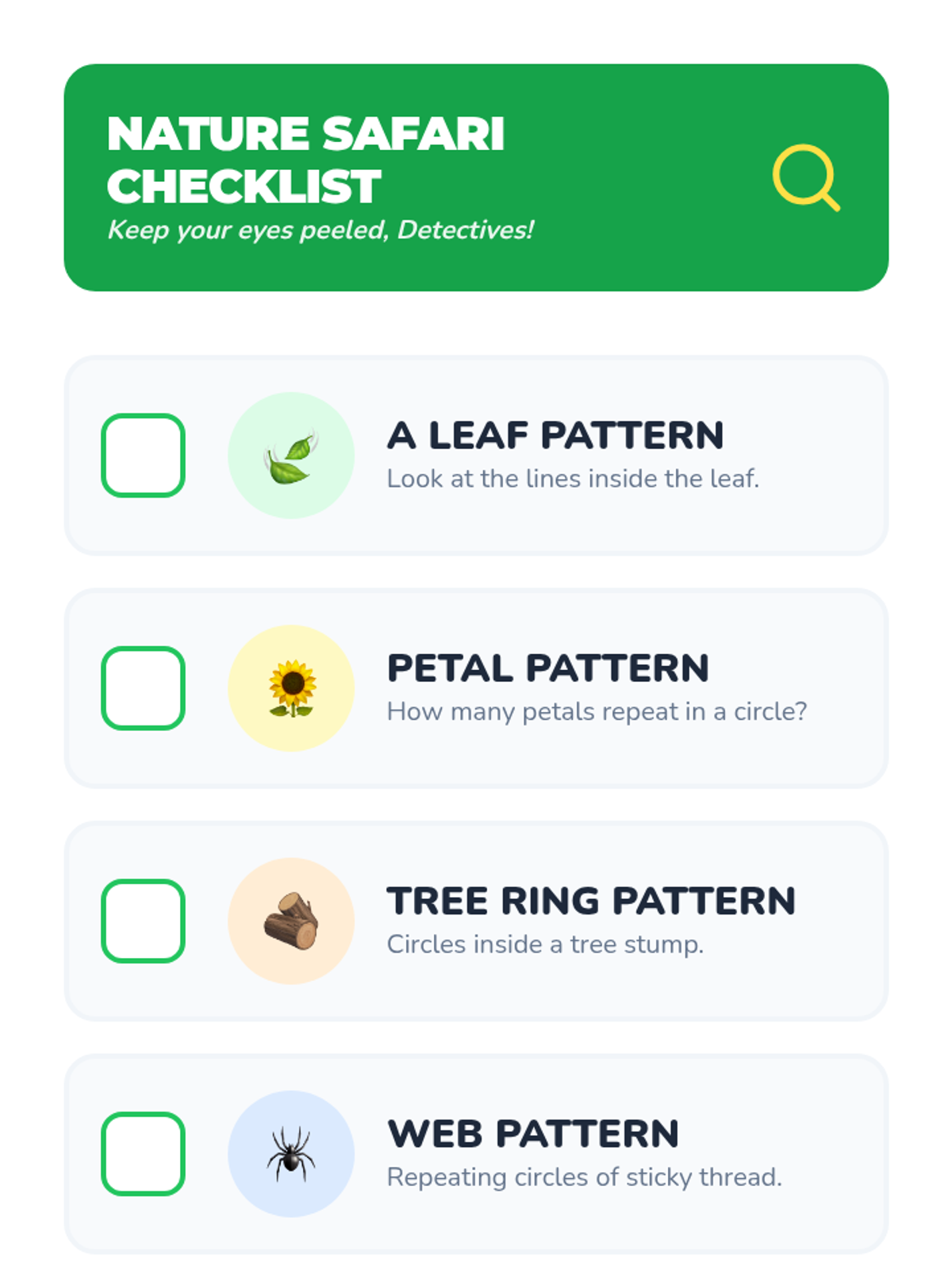 A Pre-K math sequence that explores patterns in clothing, nature, routines, and architecture, turning students into 'Pattern Detectives' who observe and document the world around them.