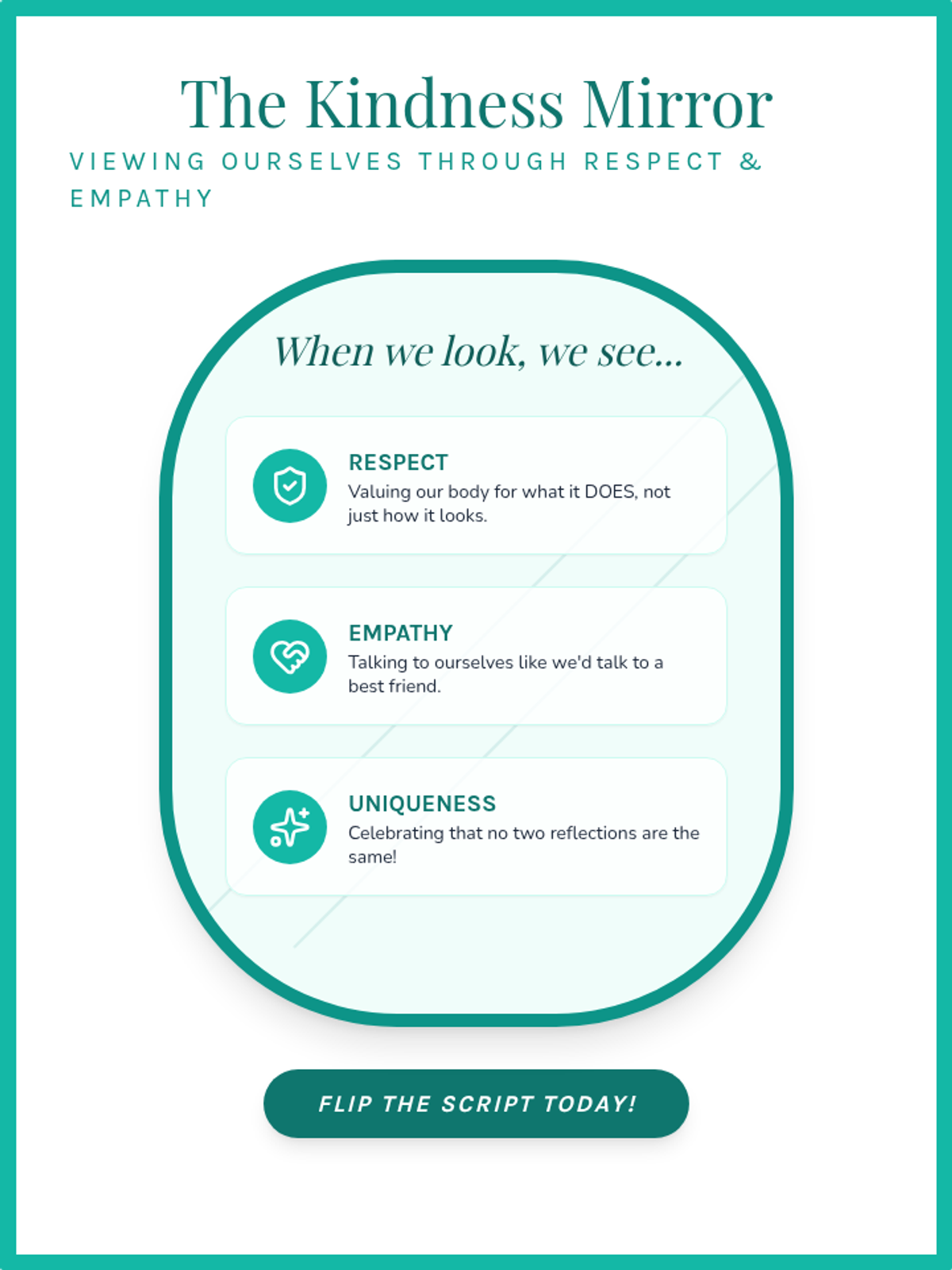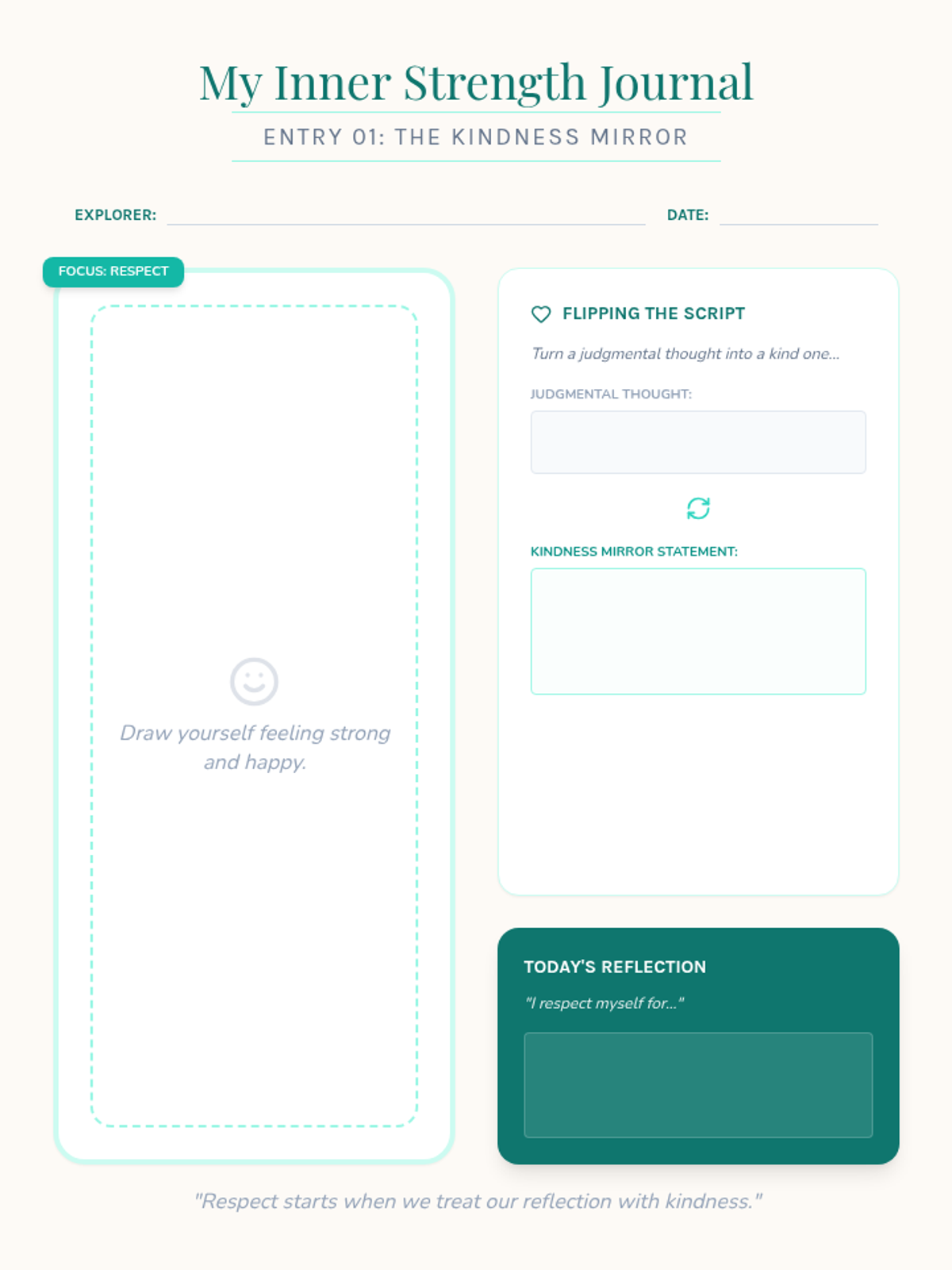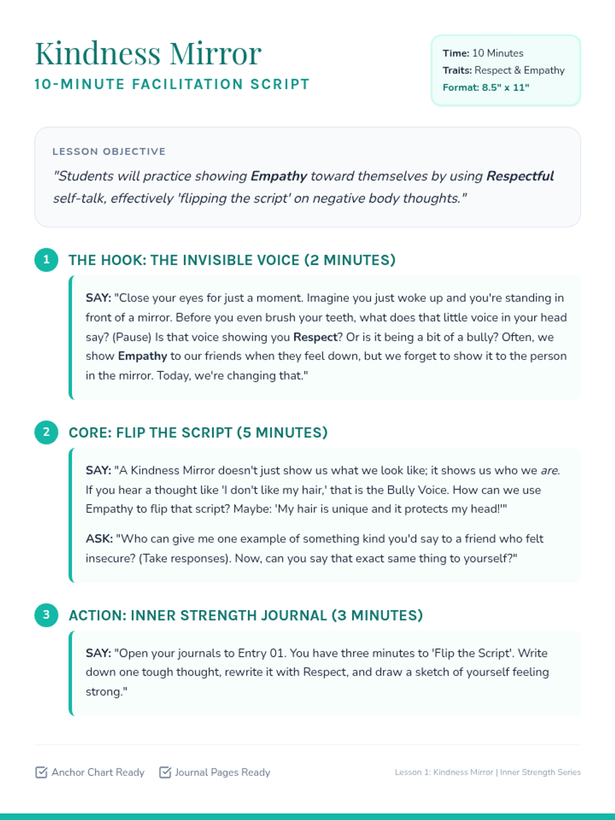 A series of three 10-minute micro-lessons for 5th graders focused on building positive body image through the CharacterStrong traits of Respect, Empathy, Courage, and Perseverance. These lessons help students shift focus from appearance to internal strengths and functional capabilities.