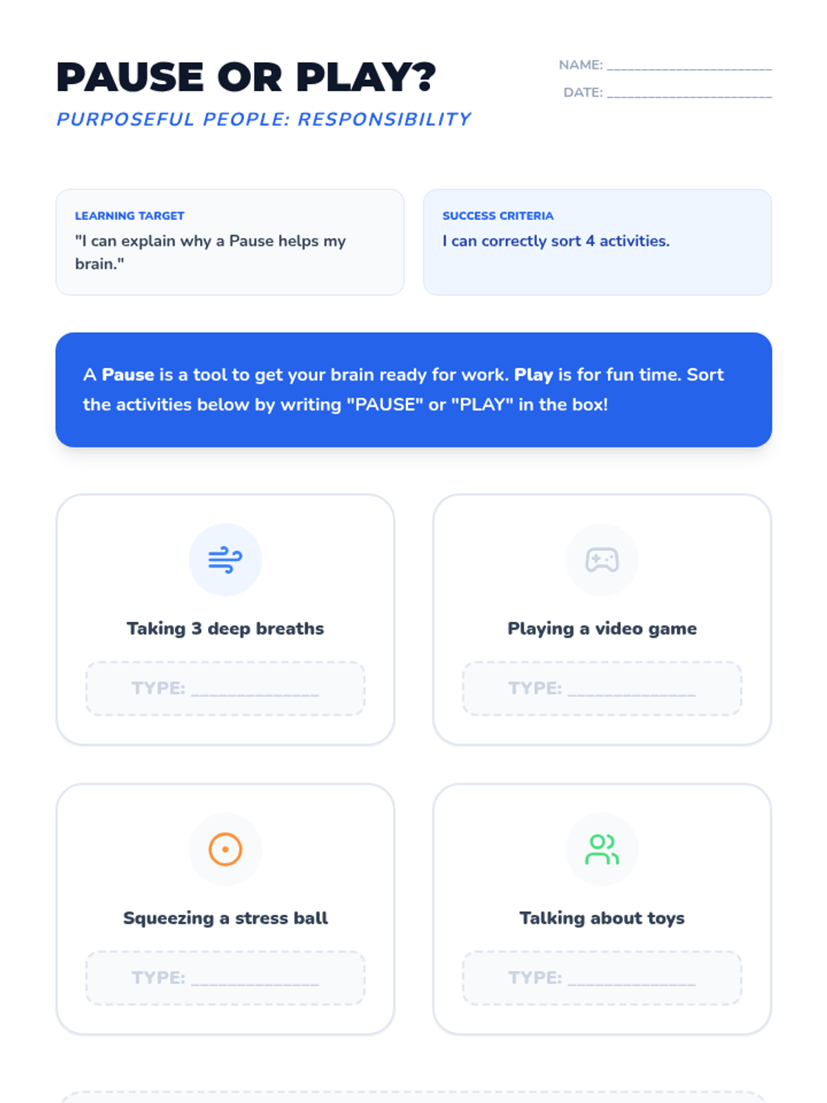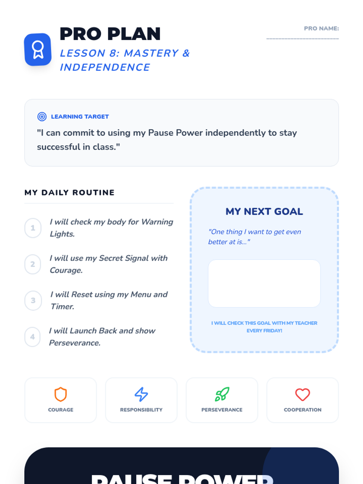 A gentle, visual 8-lesson intervention for preschoolers to learn self-regulation. Uses simple icons, puppet-based role-play, and 'I Can' picture goals to move from 'wiggly' feelings to 'calm' choices through the Pause Power routine.