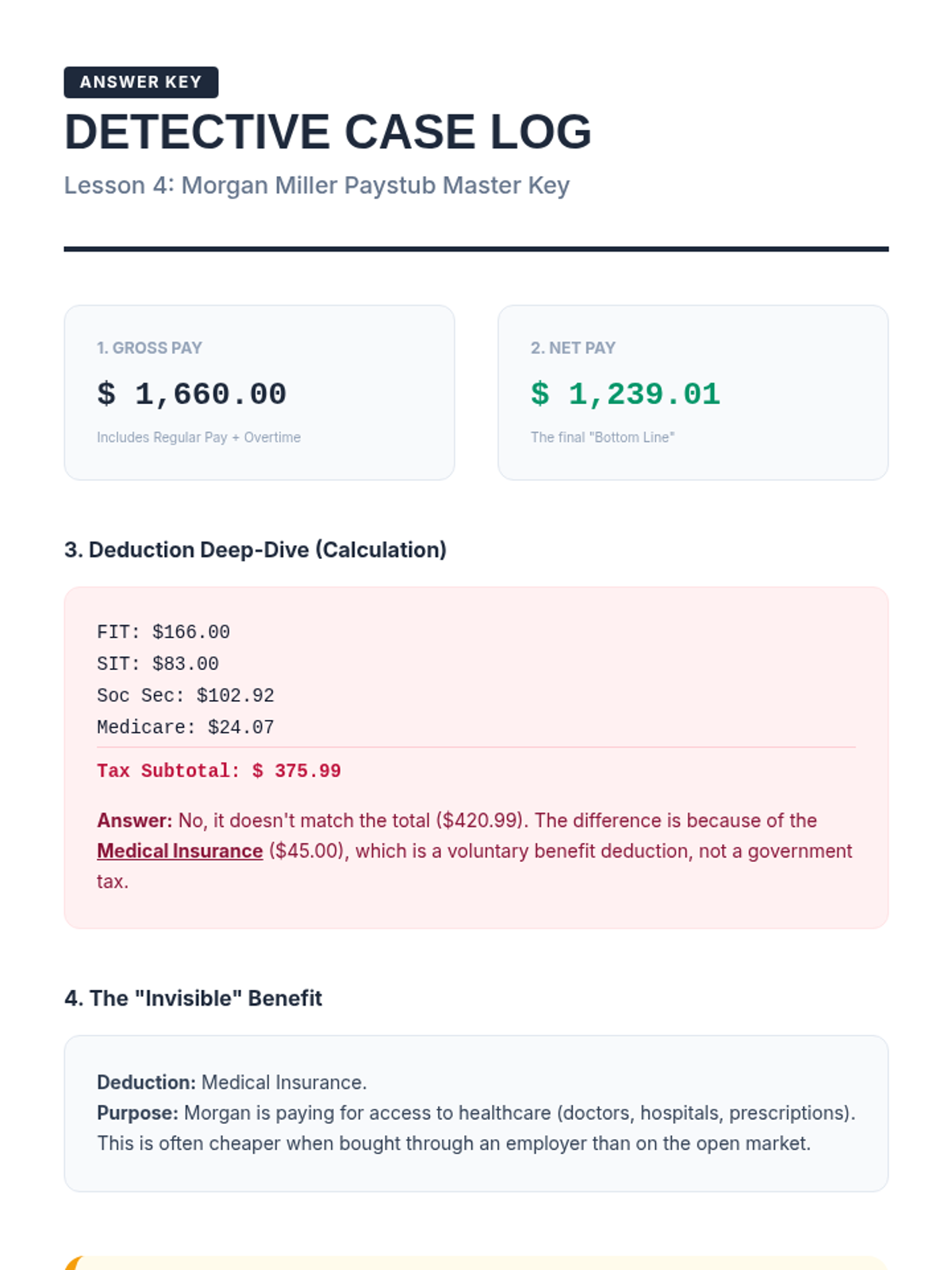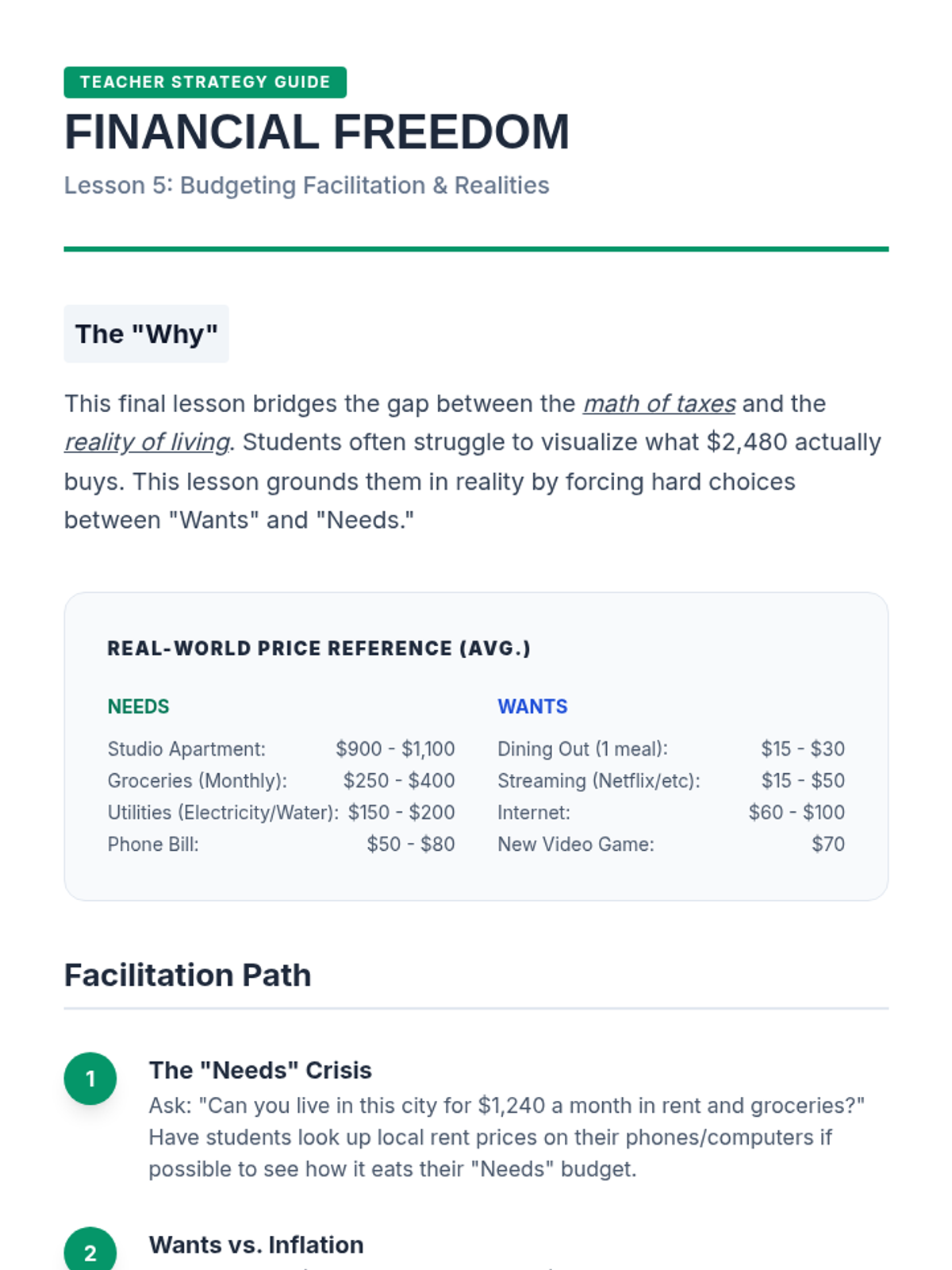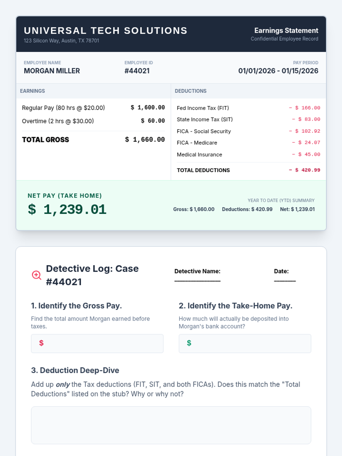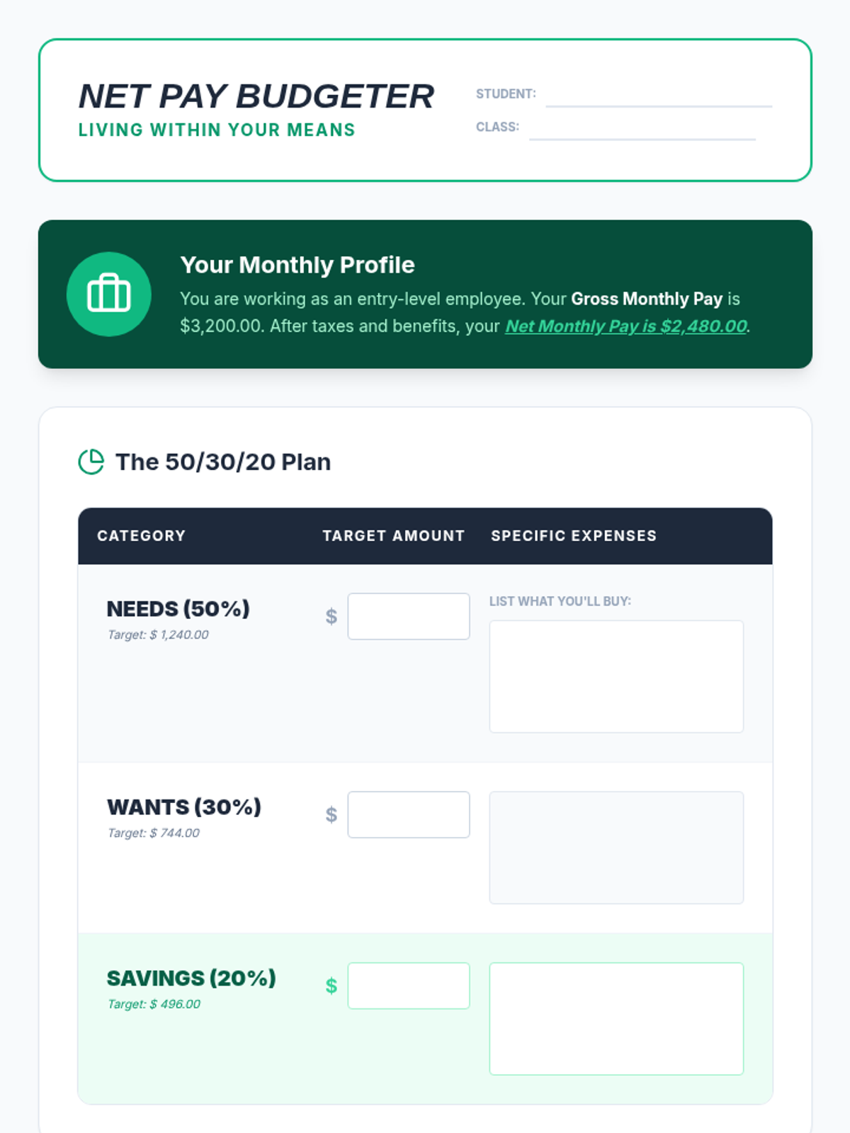 This workshop-style sequence focuses on the practical math and documentation associated with earning an income. Students simulate the onboarding process of a new job, learning to complete a W-4 form, deciphering the difference between gross and net pay, and calculating specific withholdings to understand their final take-home pay.