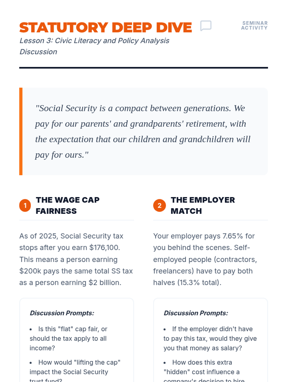 A career-readiness sequence designed for older students and undergraduates to identify their current skills, potential growth areas, and personality types using the Ikigai and Quadrant of Success models. Students move from auditing their time to creating a strategic roadmap for professional development.