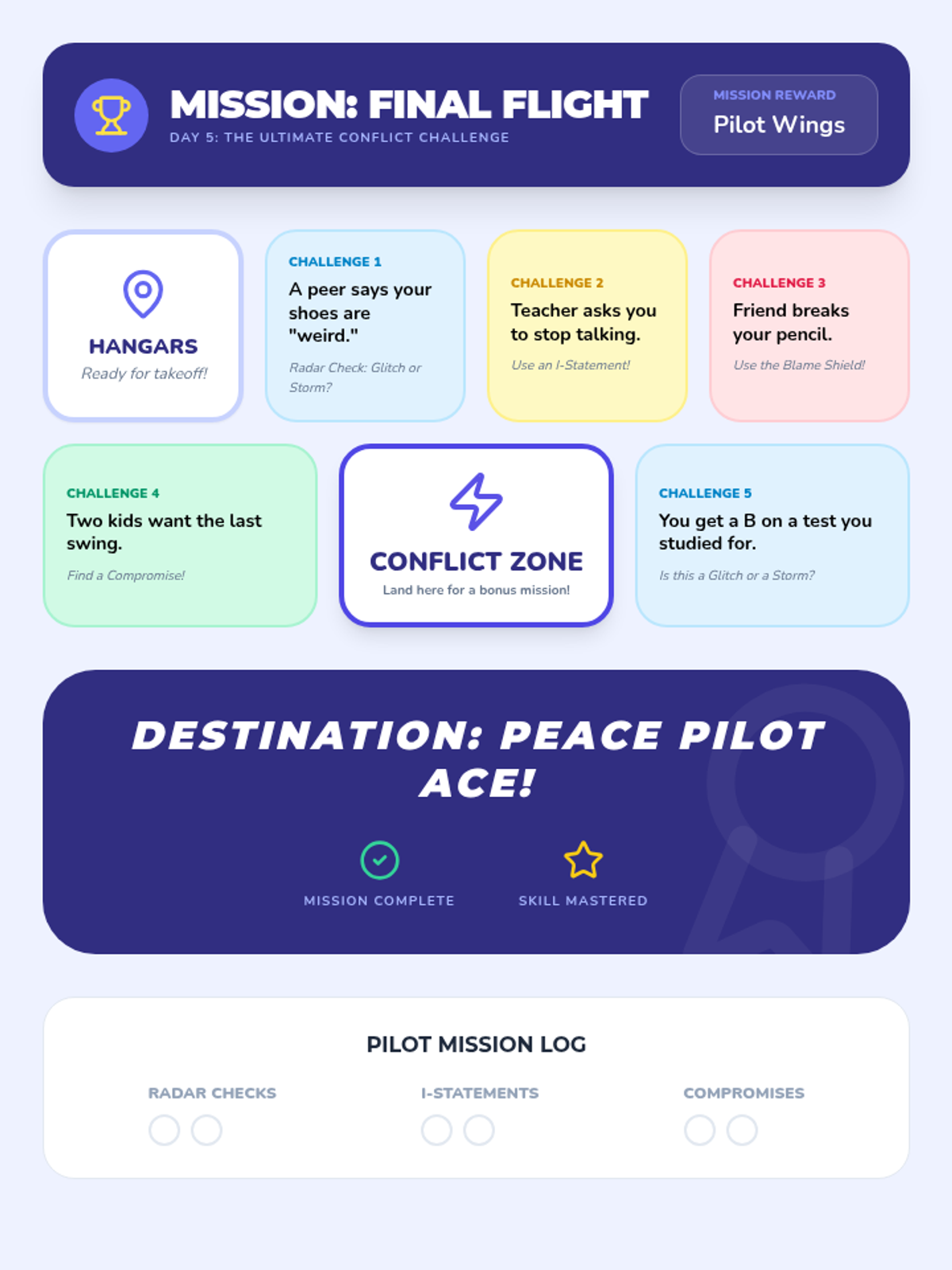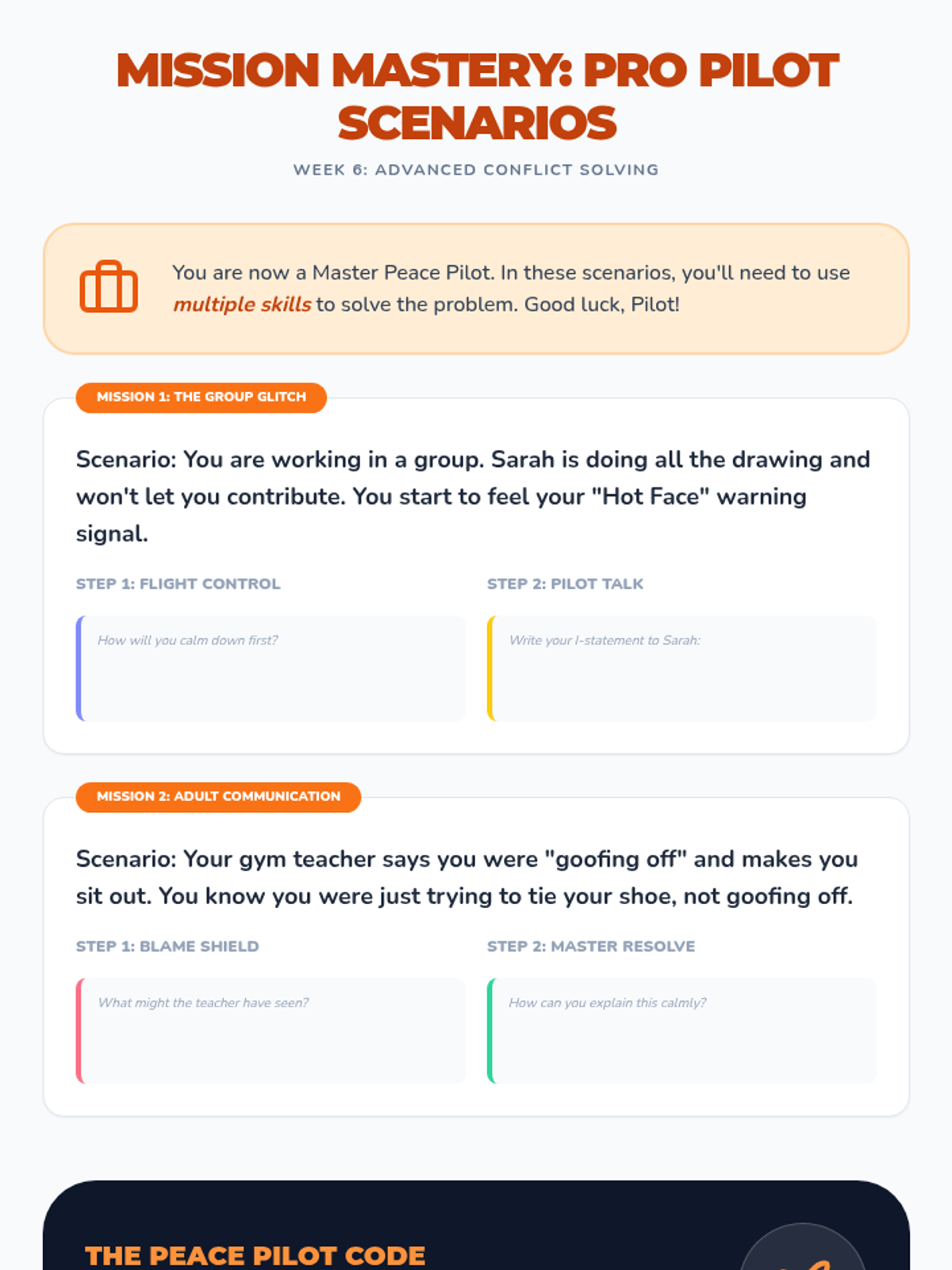 A comprehensive 6-week Social-Emotional Learning sequence designed for 3rd-grade students to master conflict resolution, problem-sizing, I-statements, compromise, and emotional regulation. Each week focus on a core skill through 10-minute daily sessions.