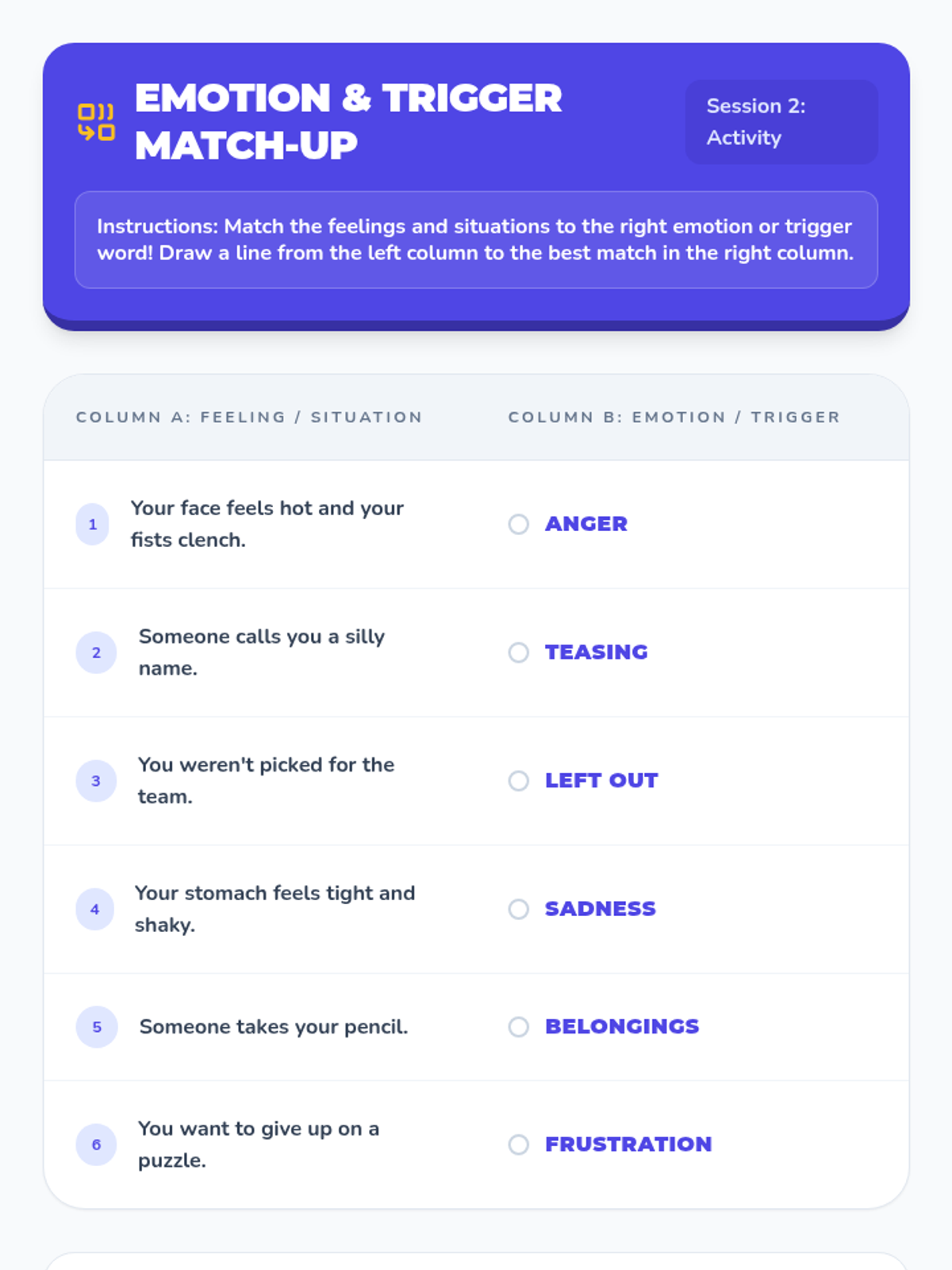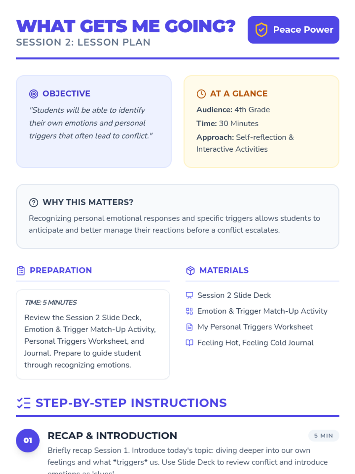 A multi-day social-emotional learning sequence that teaches students how to identify, manage, and communicate difficult emotions like anger and conflict using the metaphor of an 'Emotional Backpack'. Designed with high-visual support for EAL and neurodivergent learners.