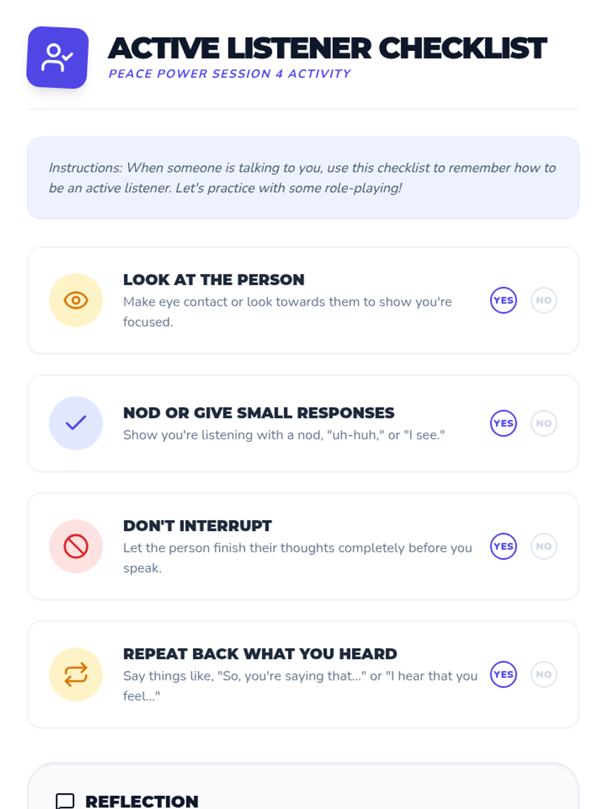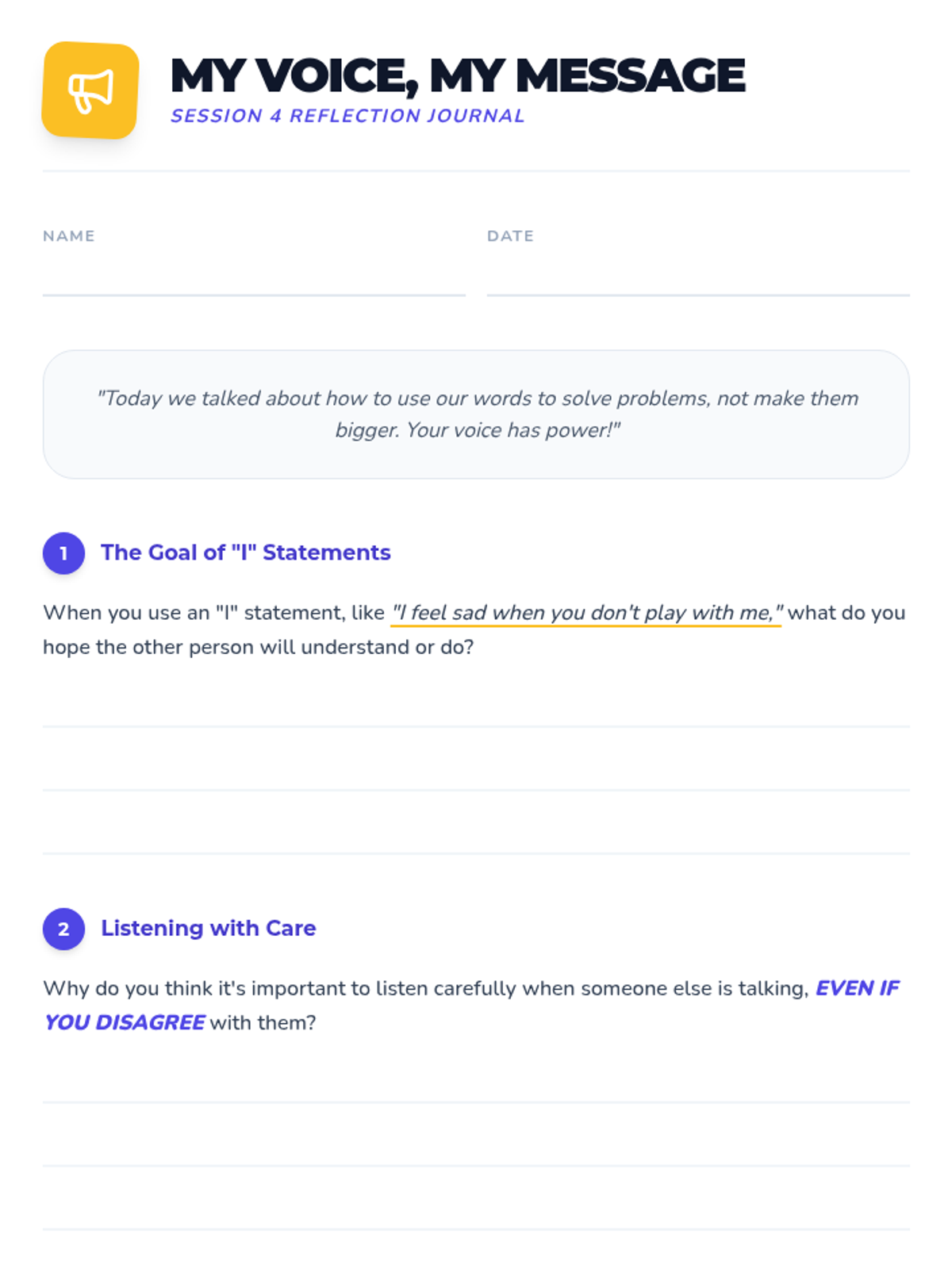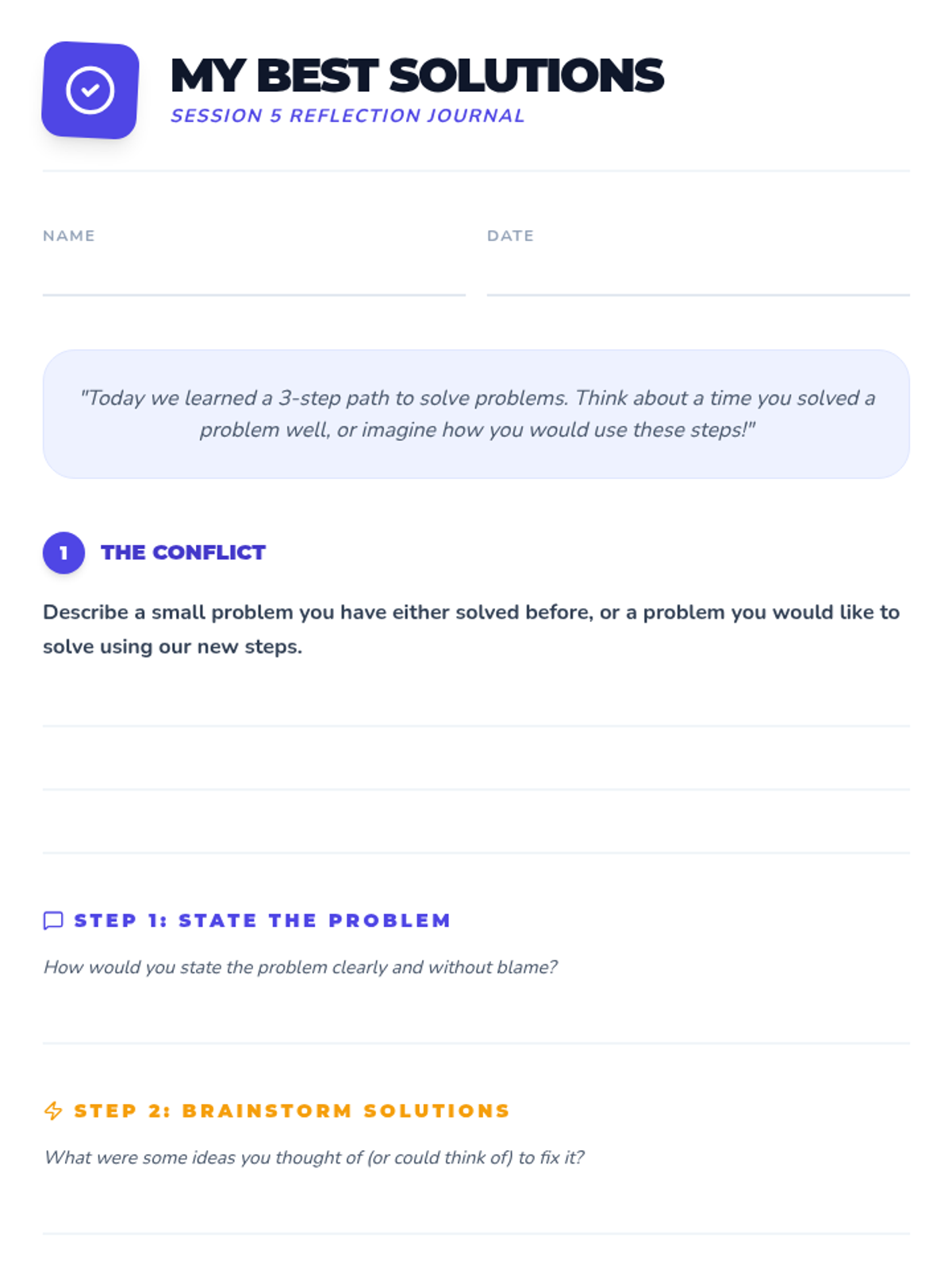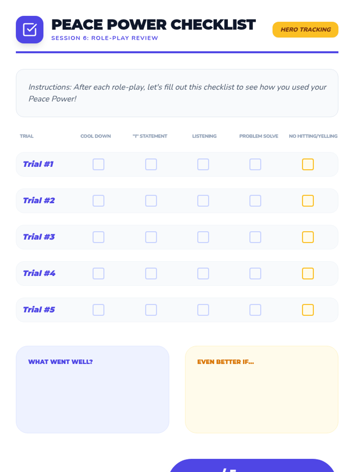A 6-week individual counseling program for 4th-grade students to develop conflict resolution skills, moving from understanding conflict to demonstrating peaceful solutions in real-world scenarios.