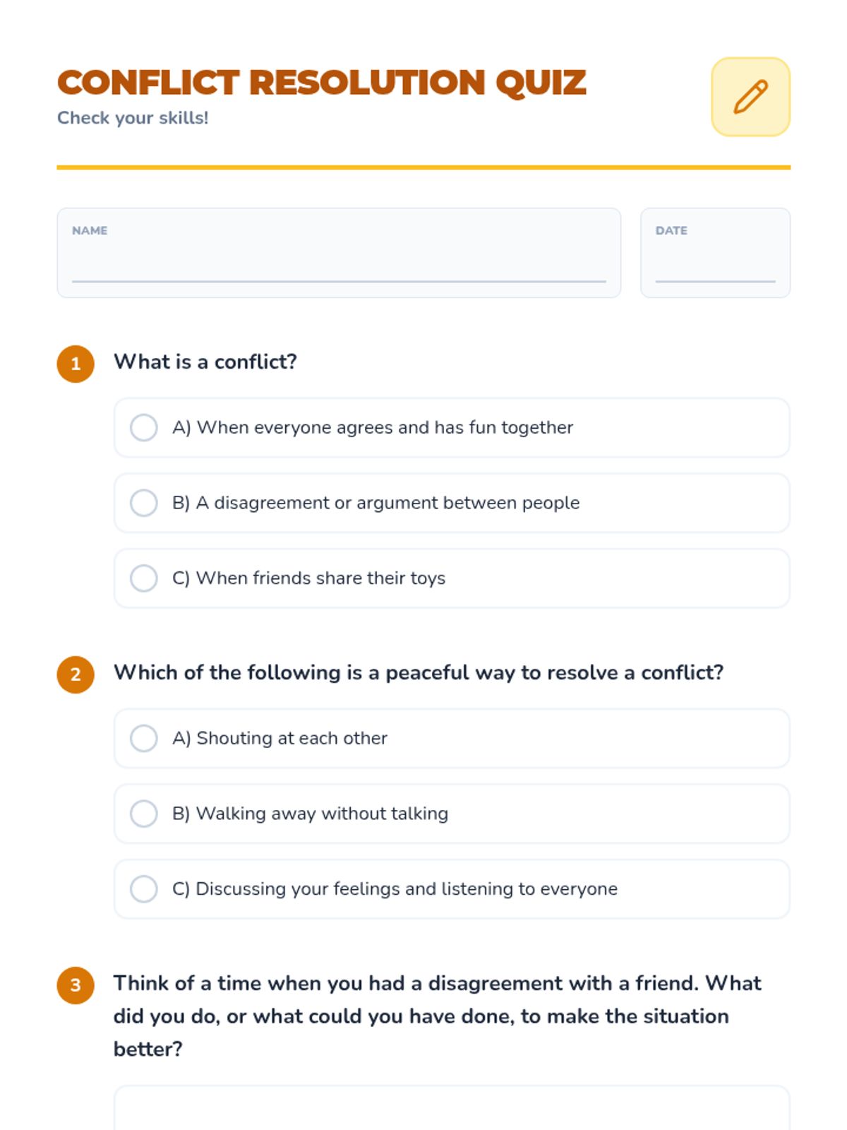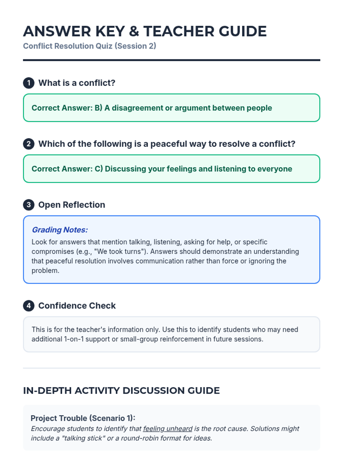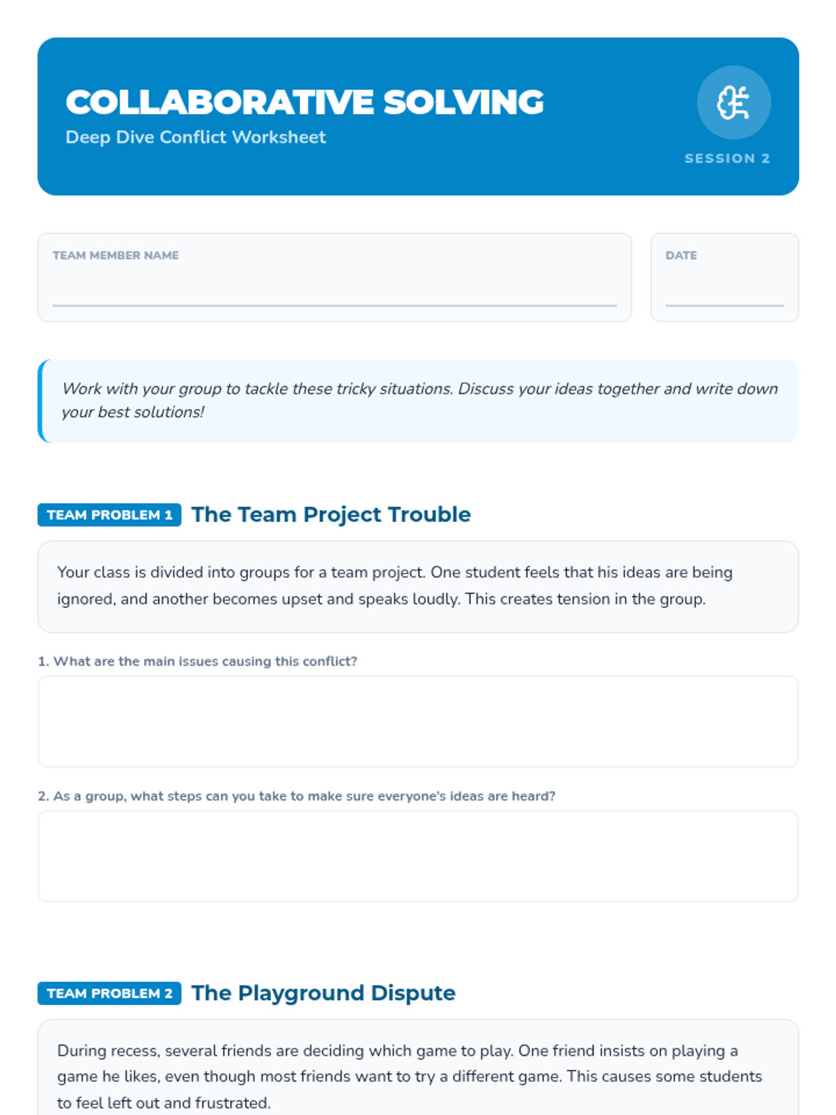 A two-session sequence for 3rd-grade boys focusing on identifying, understanding, and resolving conflicts through playground-themed activities and discussions.