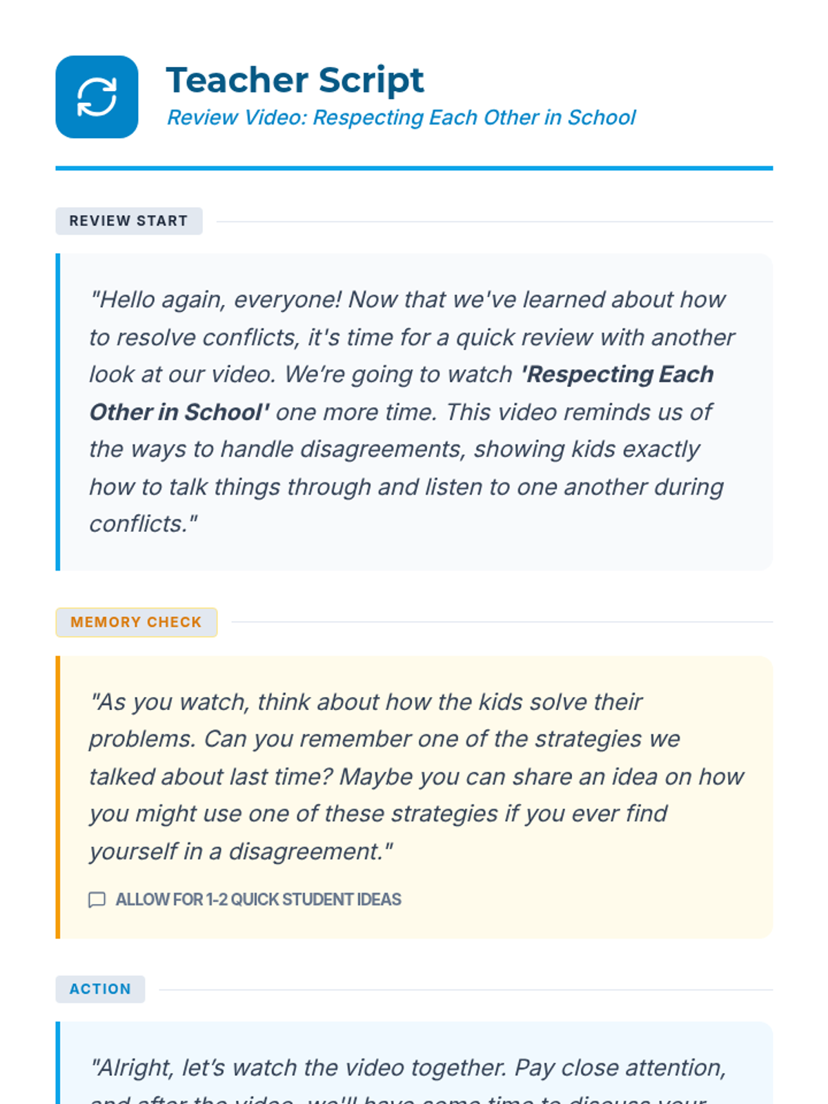 A comprehensive four-lesson series designed to help students identify their emotions, recognize physical triggers, build a coping toolbox, and align their reactions with the size of their problems.