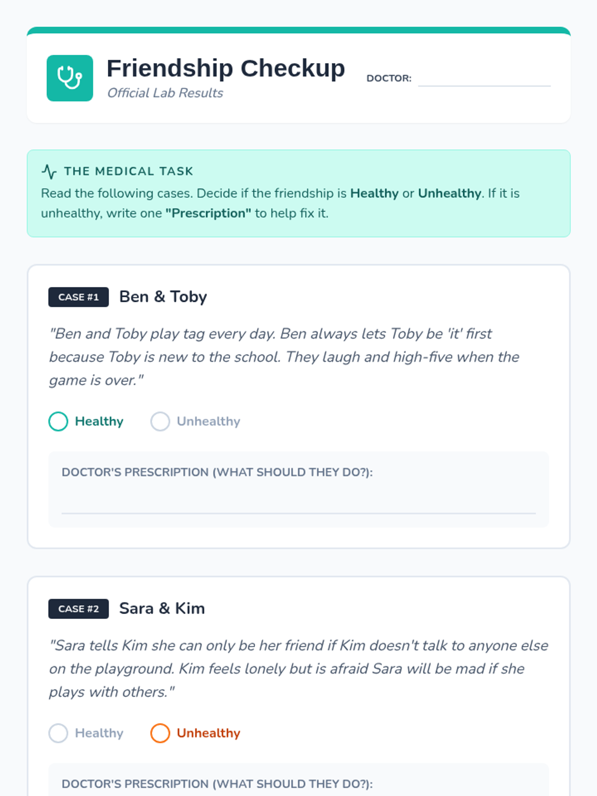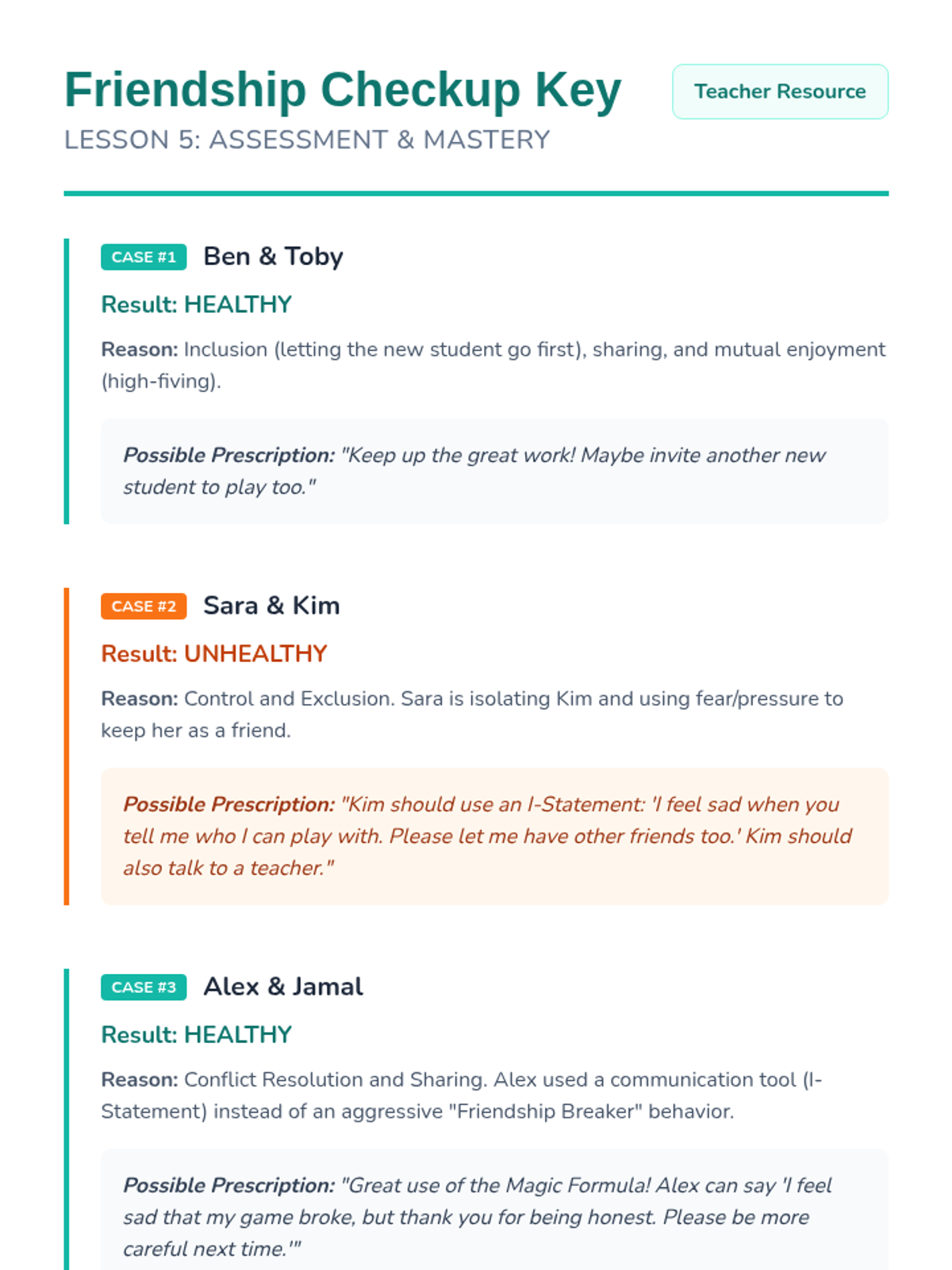 This 2nd Grade sequence teaches students to distinguish between healthy and unhealthy peer dynamics. Students will learn to define friendship qualities, recognize the difference between leadership and bossiness, use 'I-statements' for conflict resolution, and practice inclusive behaviors to ensure safe and fun peer relationships.