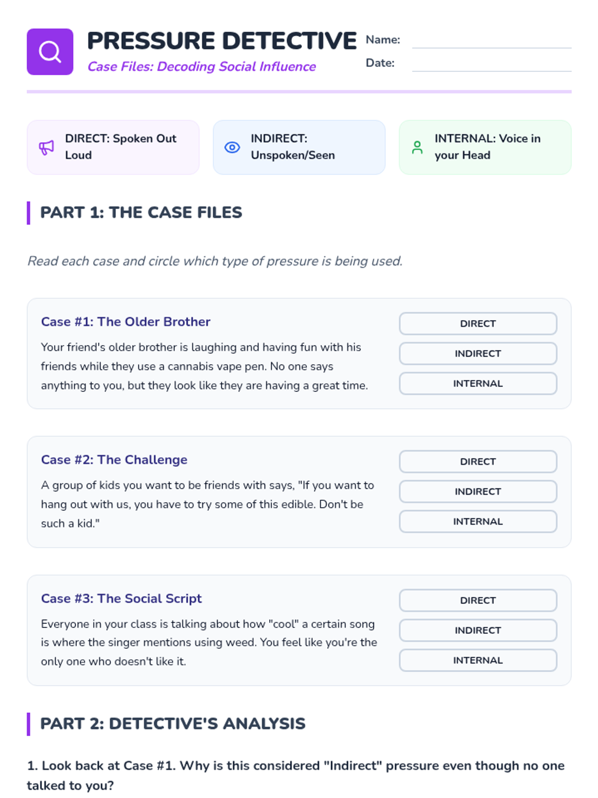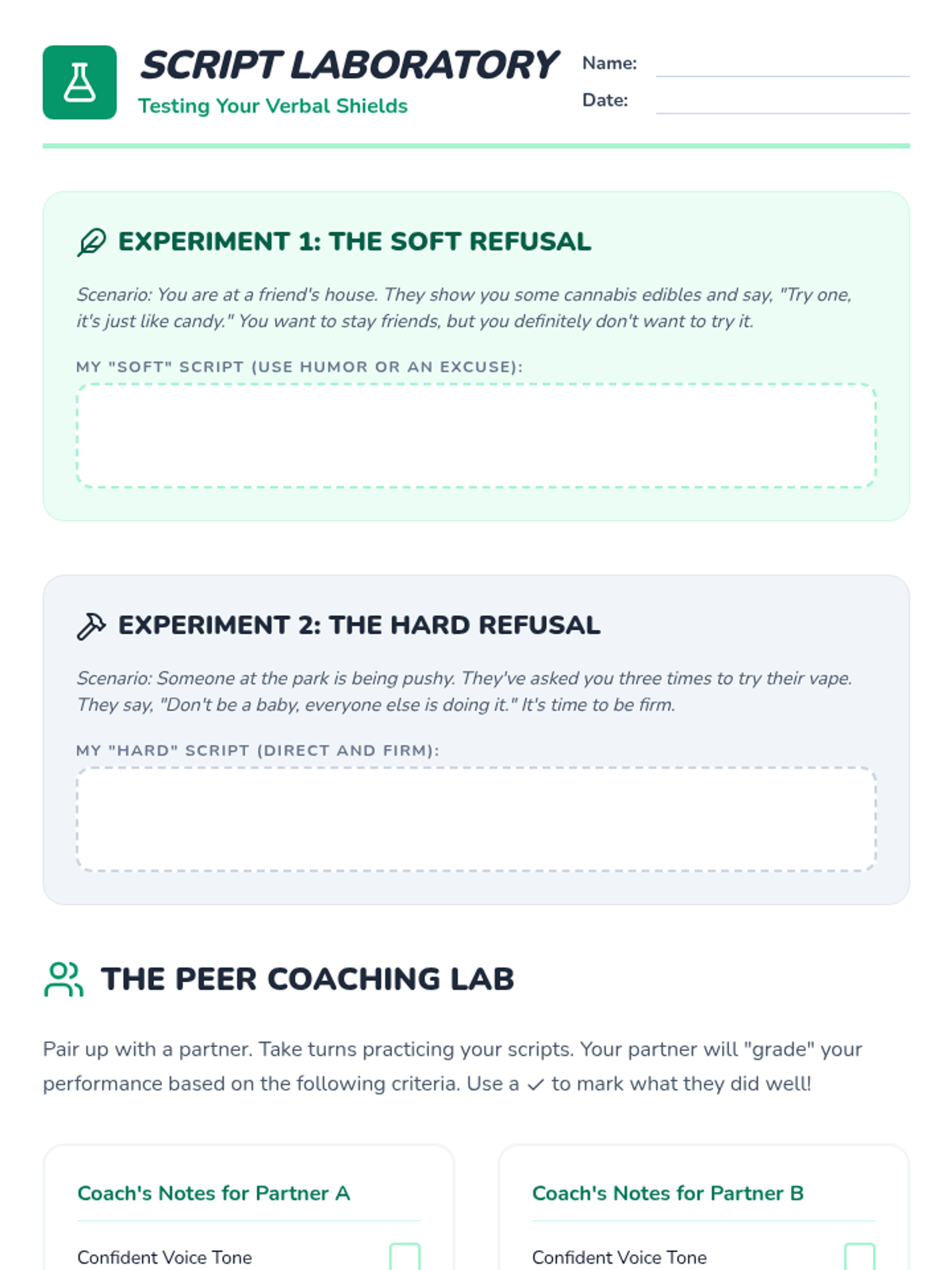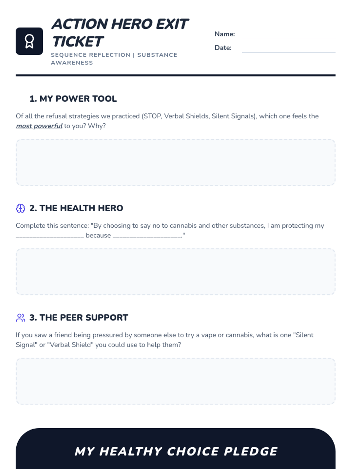 A comprehensive 5-lesson sequence for 5th graders focusing on the STOP decision-making model, identifying types of peer pressure, and mastering verbal and non-verbal refusal skills specifically related to cannabis and substance awareness.