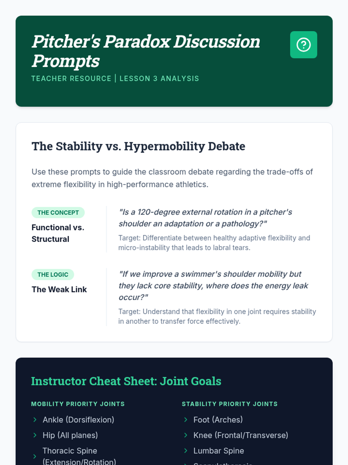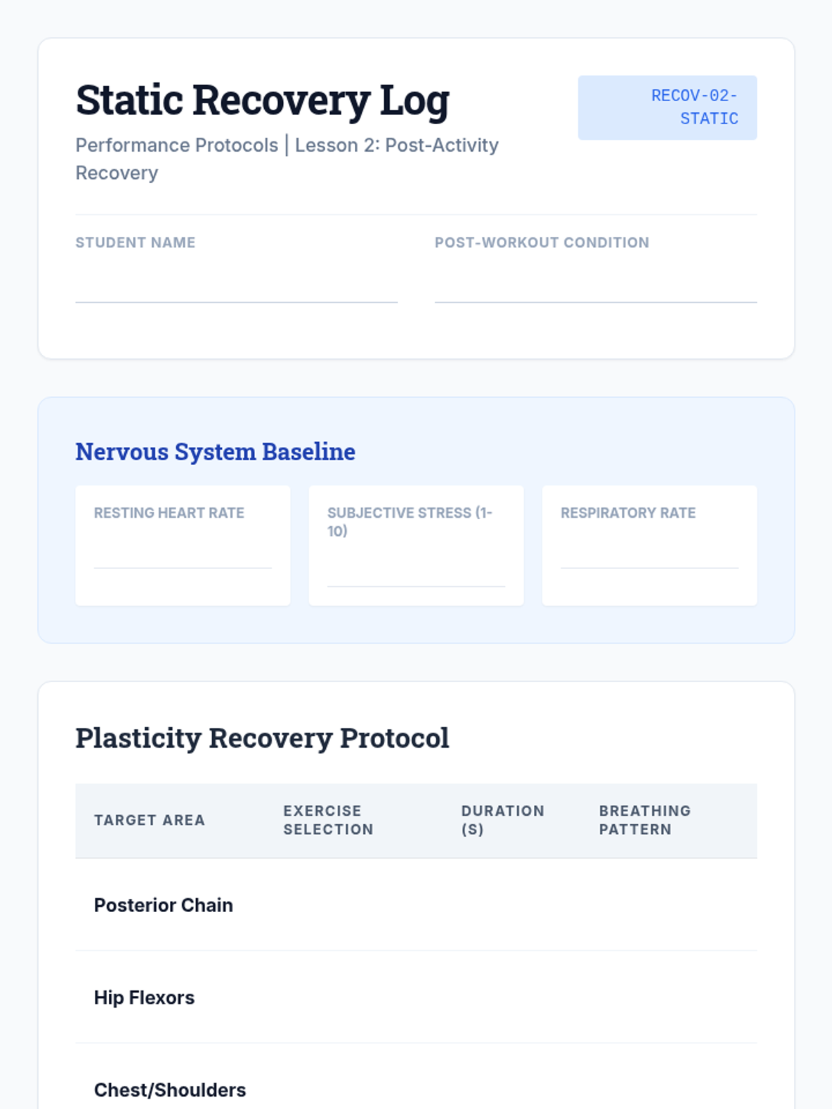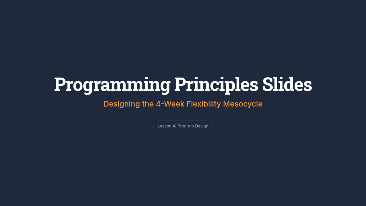 A comprehensive undergraduate-level sequence focusing on the science and application of dynamic and static stretching. Students progress from physiological principles to designing and leading sport-specific flexibility programs.