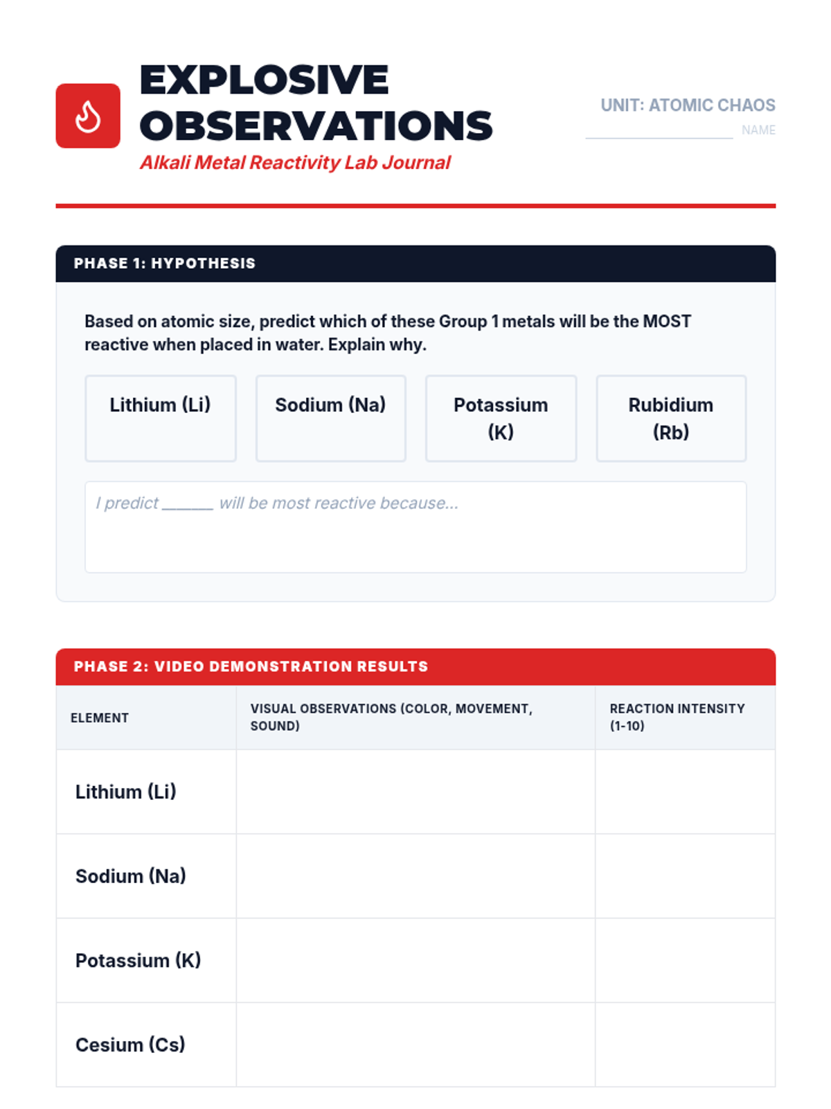 This sequence explores recurring patterns in the periodic table, including atomic radius, ionization energy, and electronegativity. Students will analyze data, use analogies, and visualize how atomic structure influences chemical properties and reactivity.