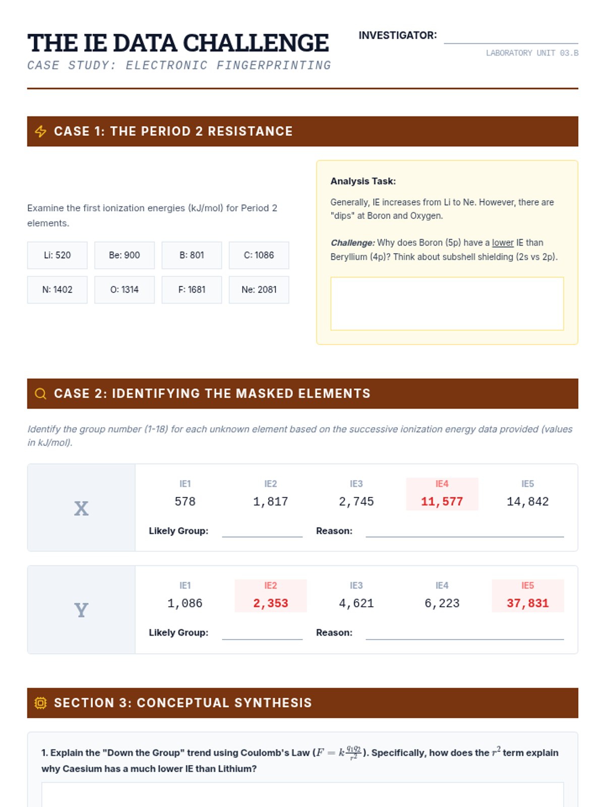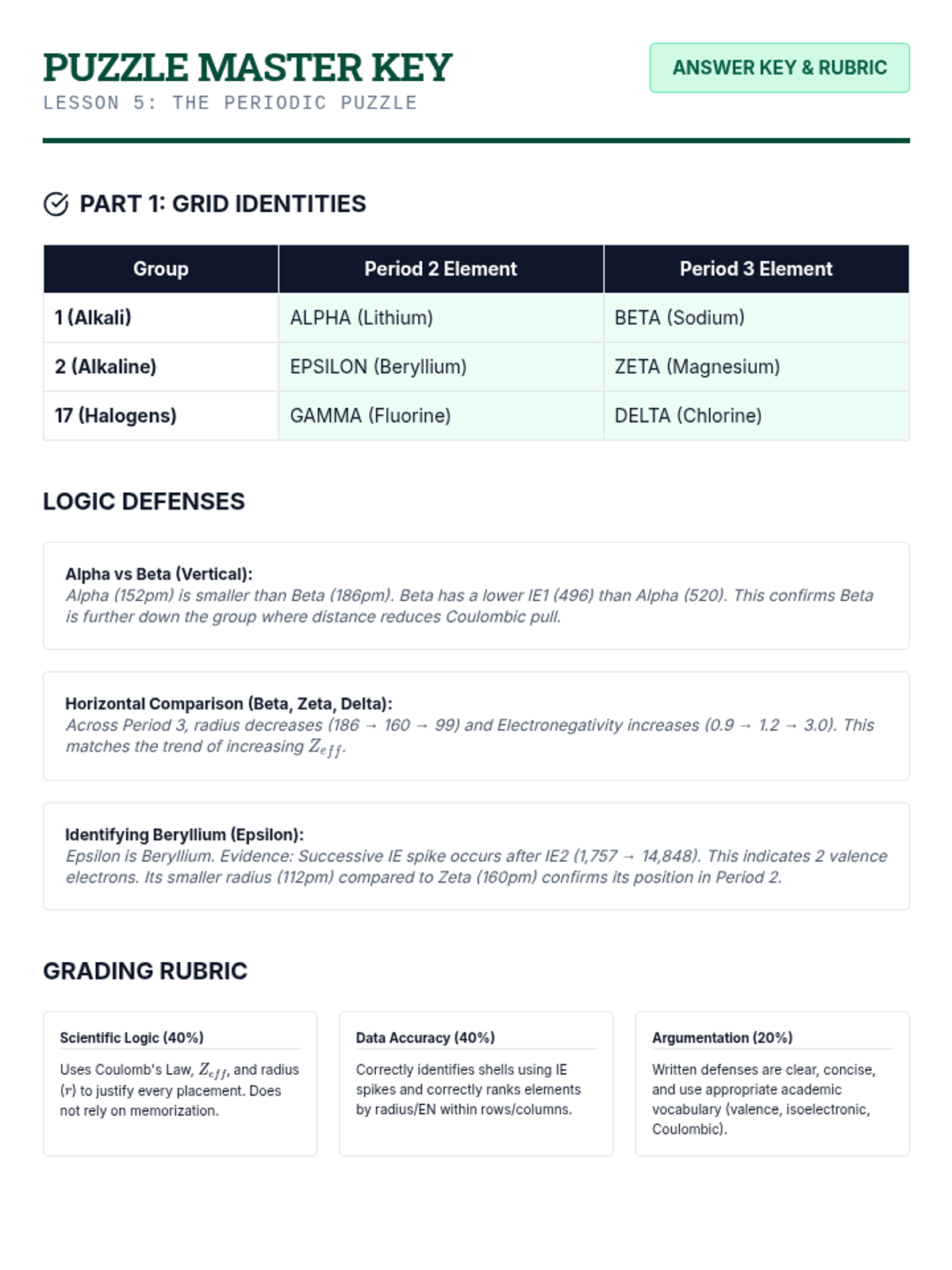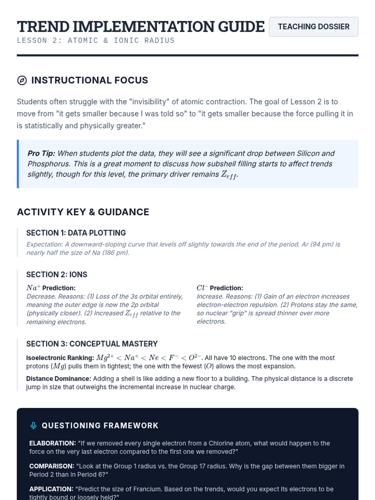 This 12th-grade physics sequence explores how Coulomb's Law and electrostatic forces govern periodic trends. Students analyze Effective Nuclear Charge (Zeff), atomic radii, ionization energies, and electronegativity to understand the underlying physical principles of chemical behavior.