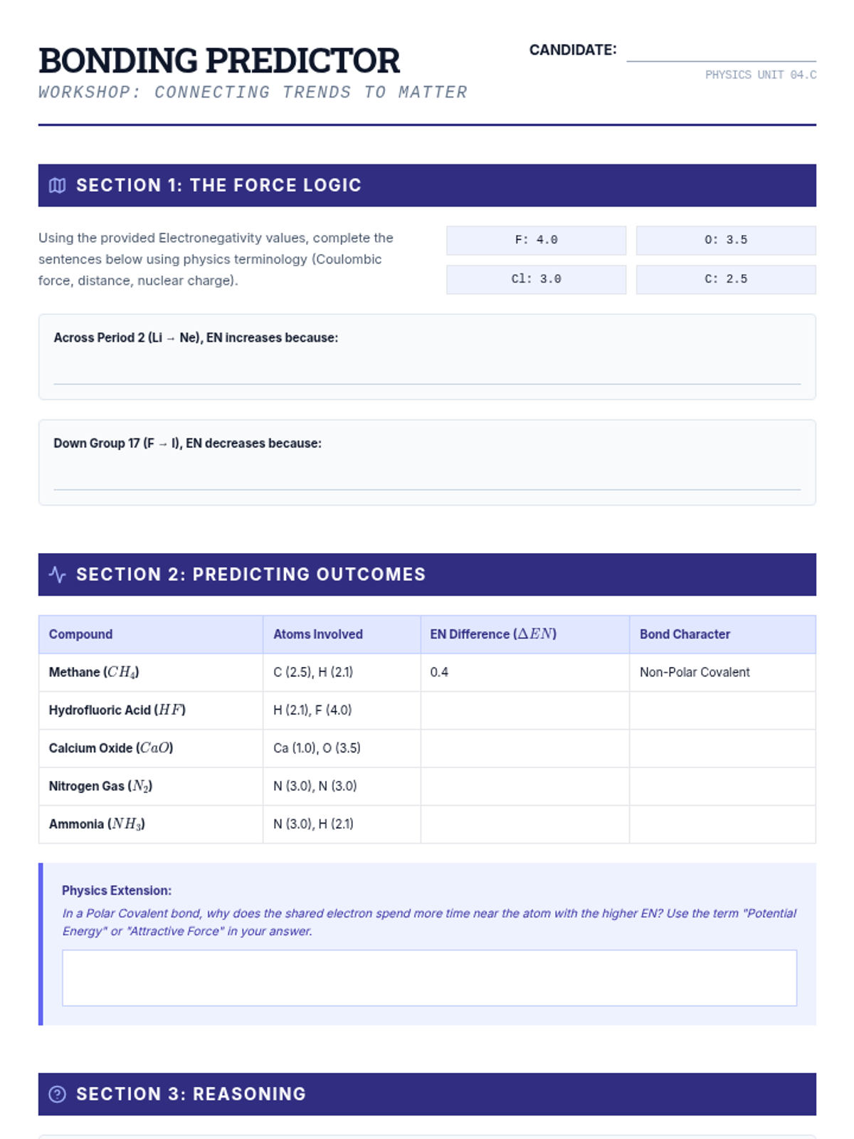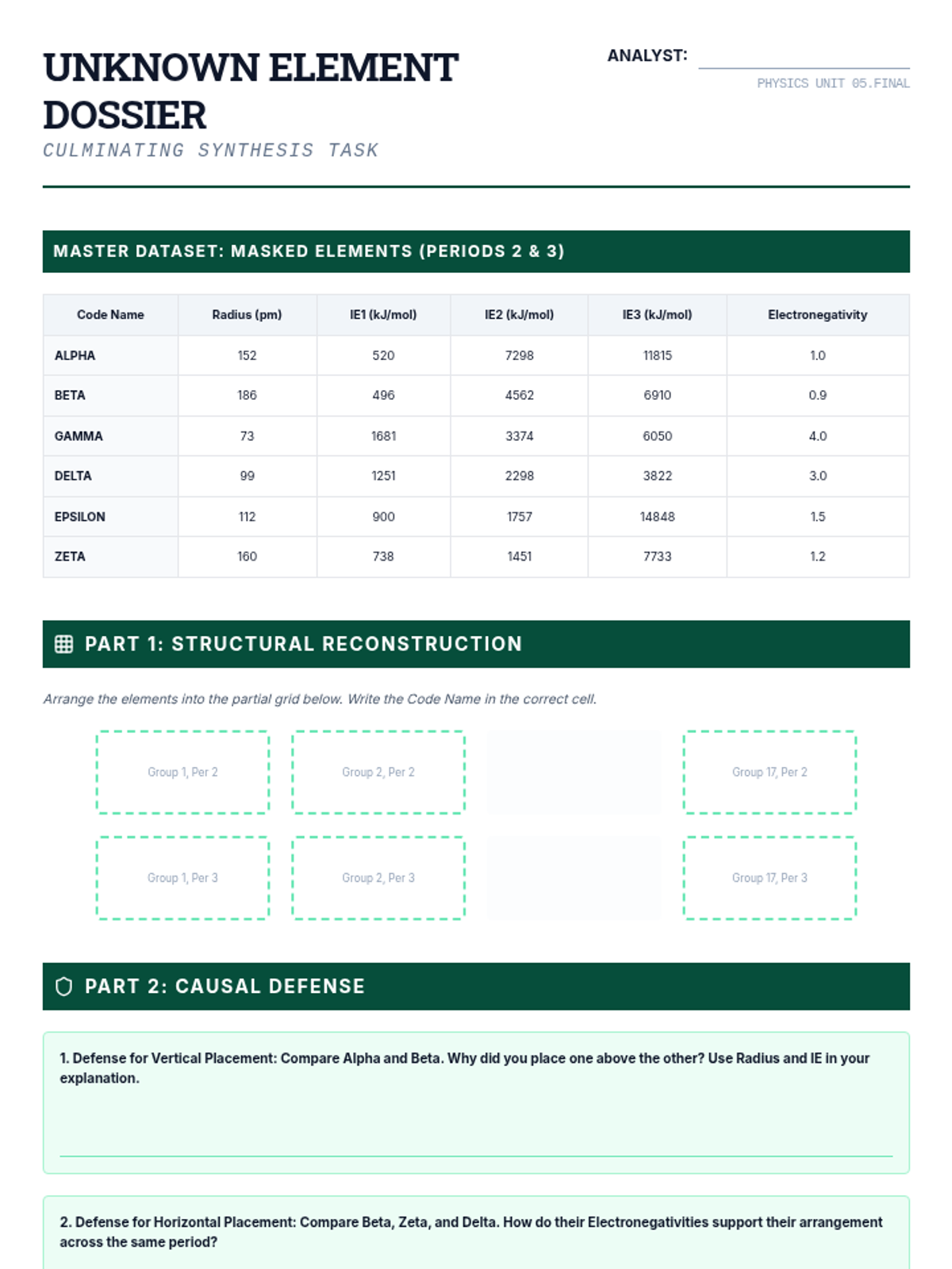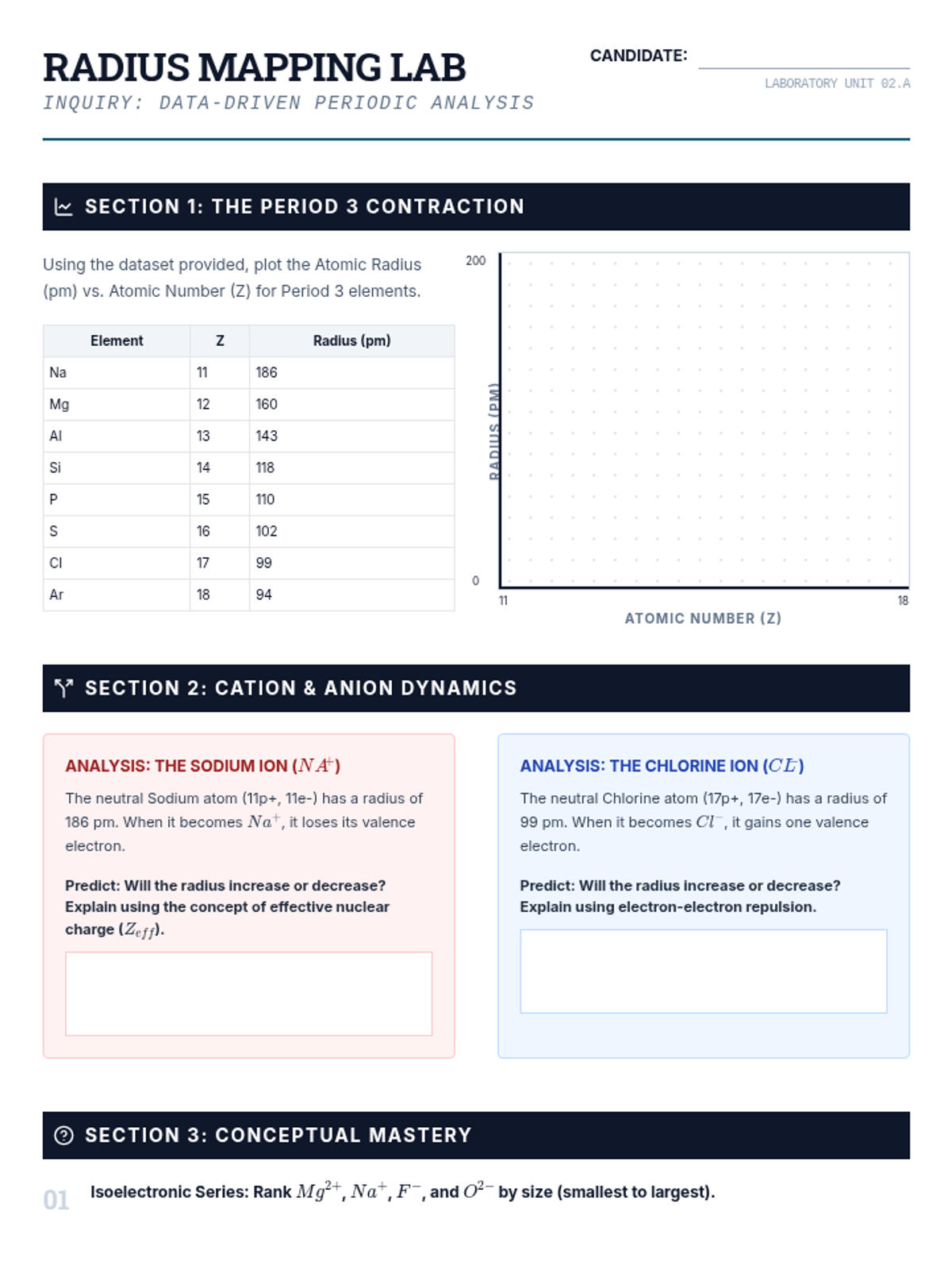 This 12th-grade physics sequence explores how Coulomb's Law and electrostatic forces govern periodic trends. Students analyze Effective Nuclear Charge (Zeff), atomic radii, ionization energies, and electronegativity to understand the underlying physical principles of chemical behavior.