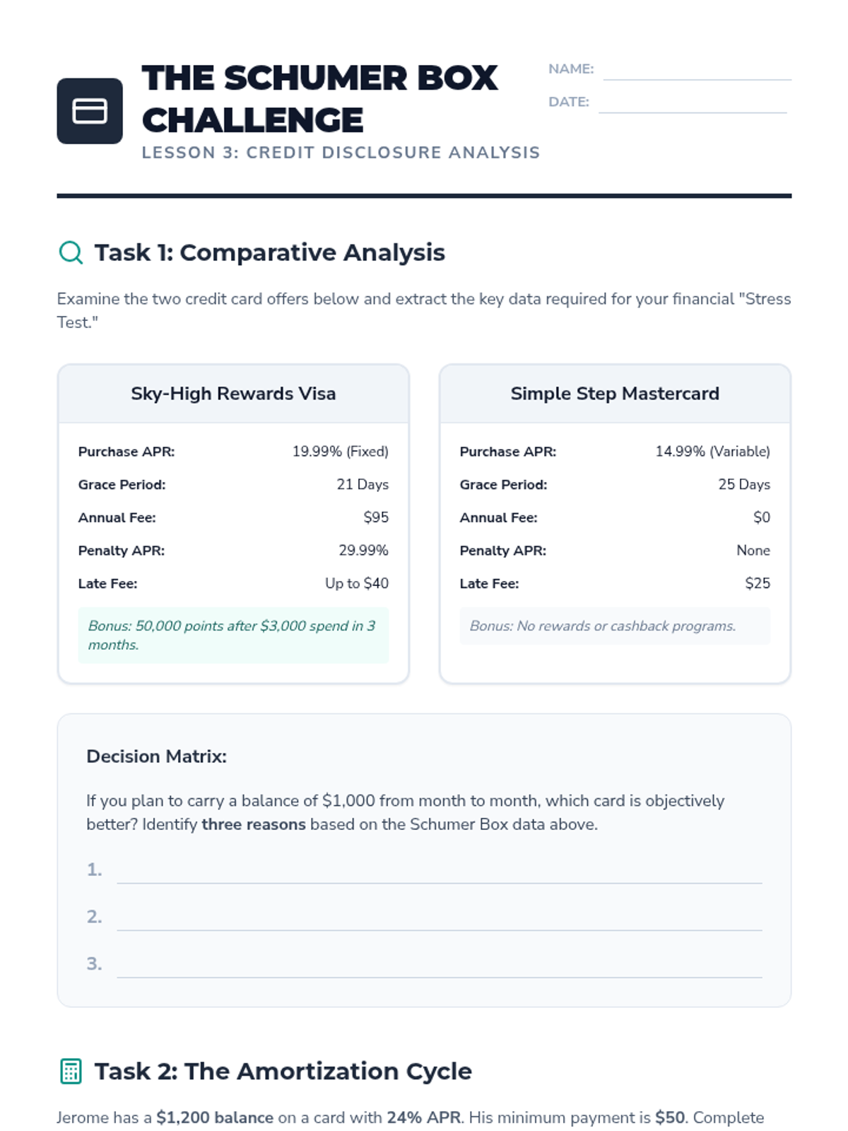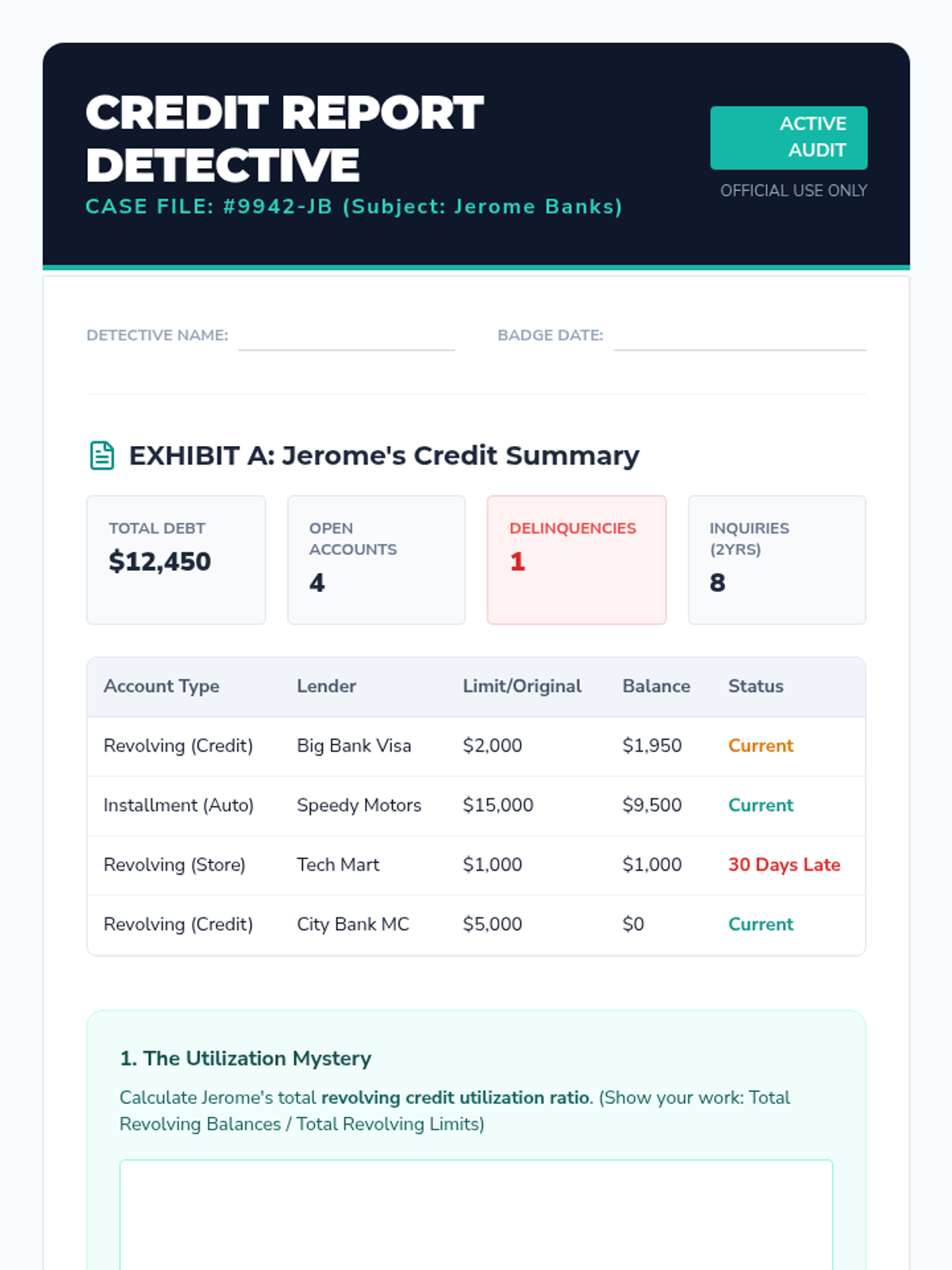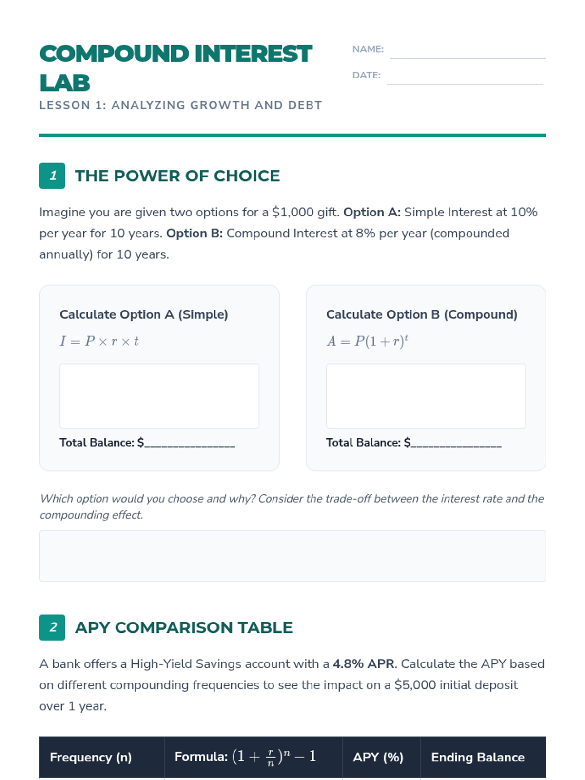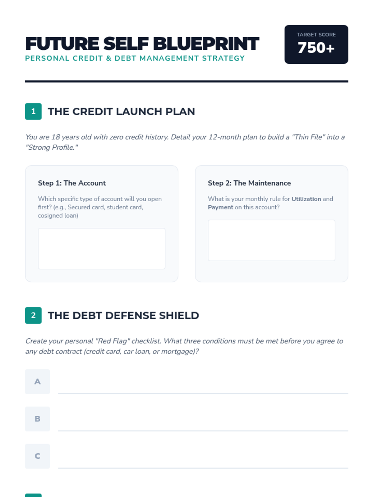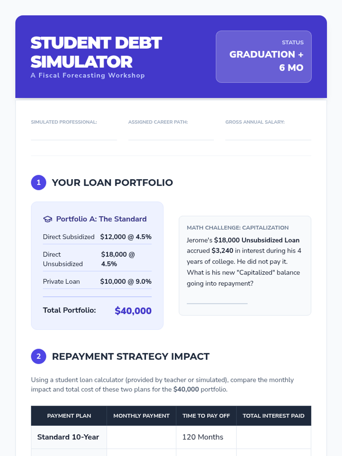 A comprehensive workshop for 12th graders transitioning to financial independence, focusing on interest calculations, credit score mechanics, debt analysis, and strategic financial planning.