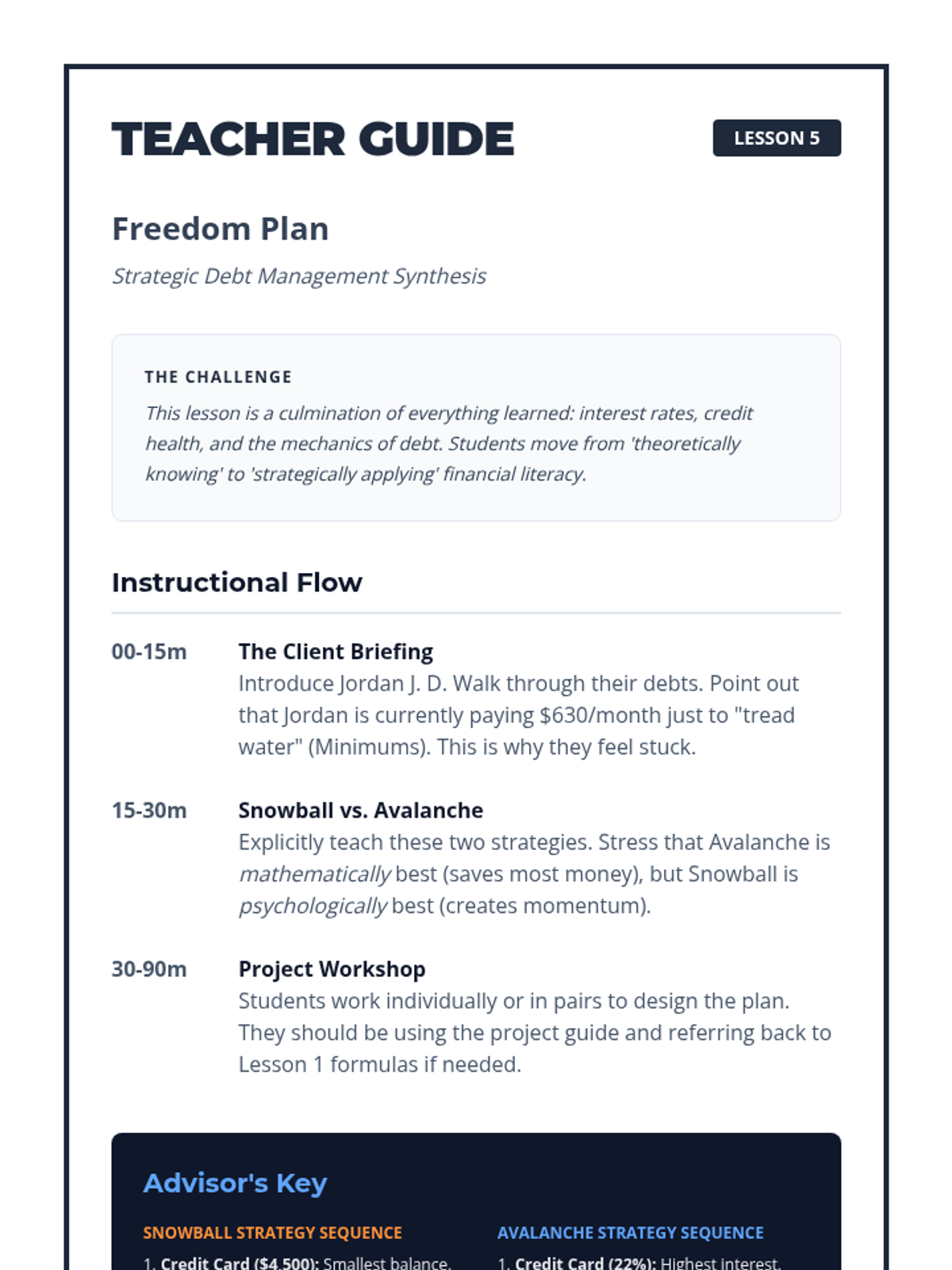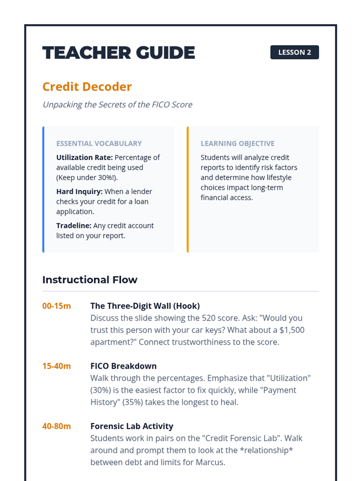 A comprehensive 11th-grade unit exploring the mechanics of interest, credit systems, loan structures, and strategic debt management to build long-term financial stability.