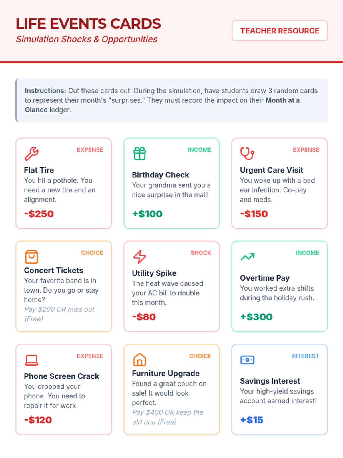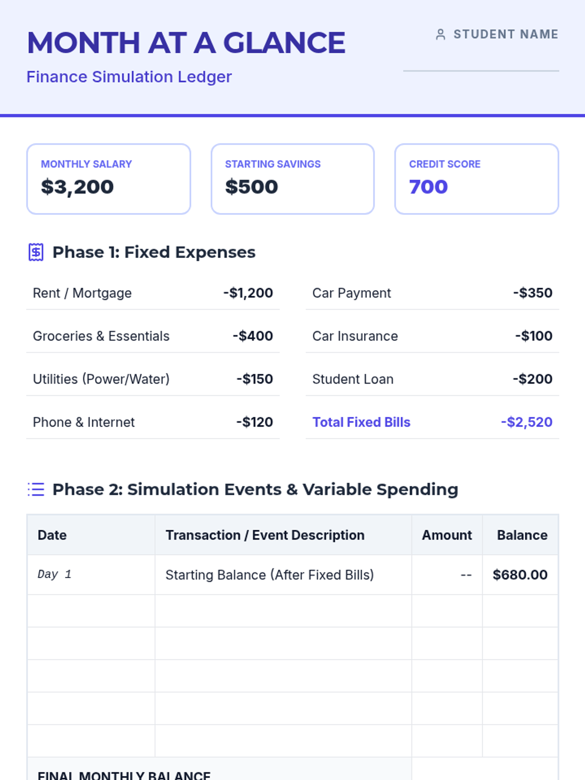 A comprehensive financial literacy unit for middle school students focusing on the essential skills of money management, aligned with state standards. Students navigate through concepts of income, expenses, and credit to build a solid financial future.