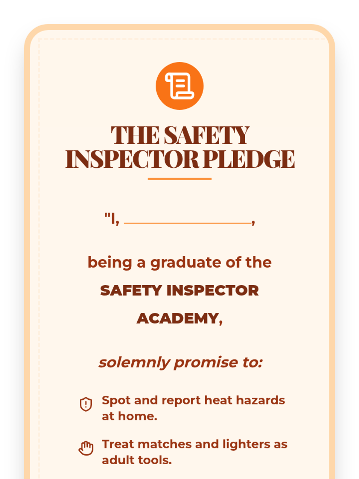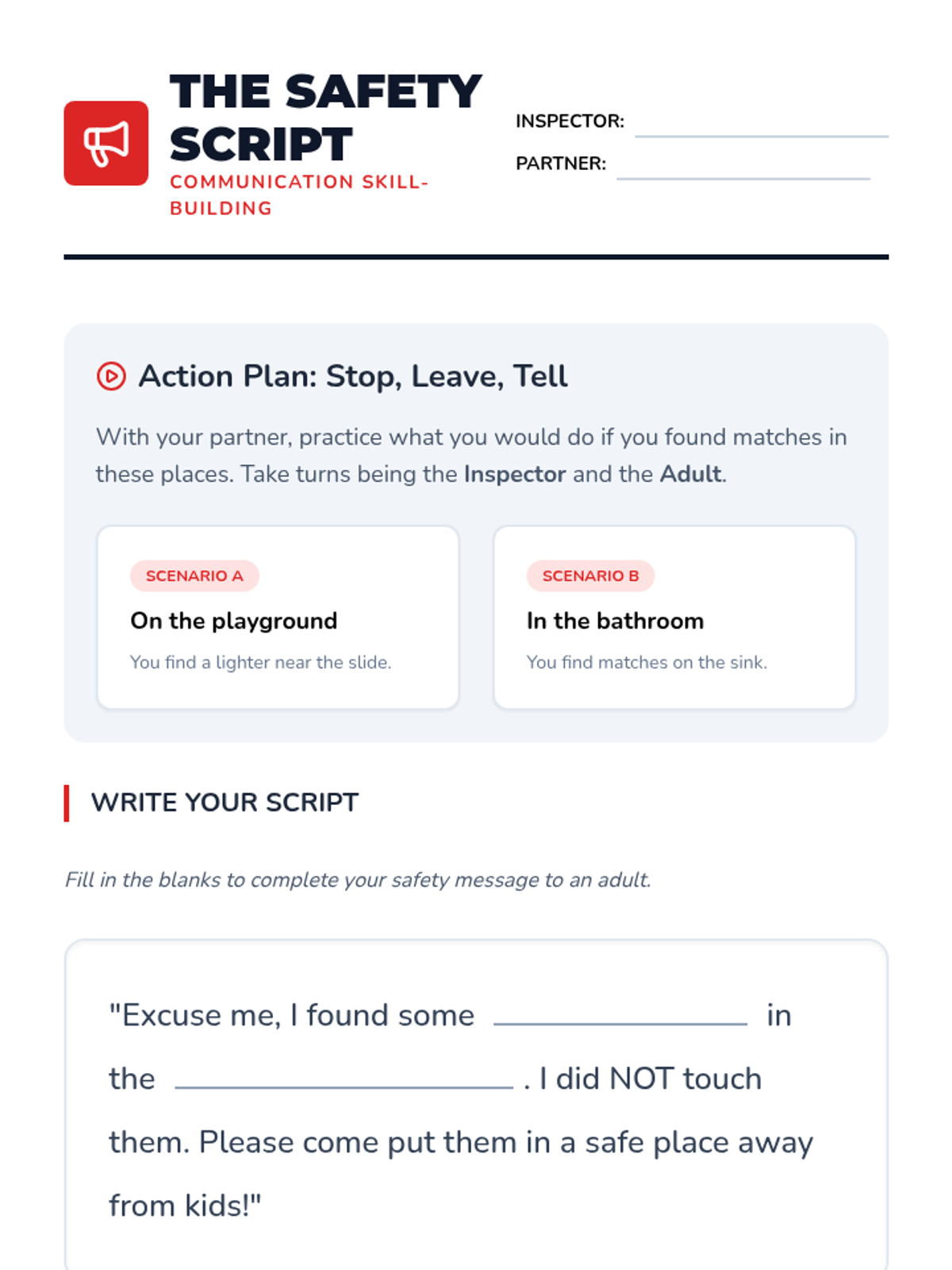 A project-based safety sequence where 2nd-grade students become 'Safety Inspectors.' They learn to identify household fire hazards, understand the danger of matches and lighters, interpret safety signage, and advocate for prevention through creative posters and a final safety pledge.