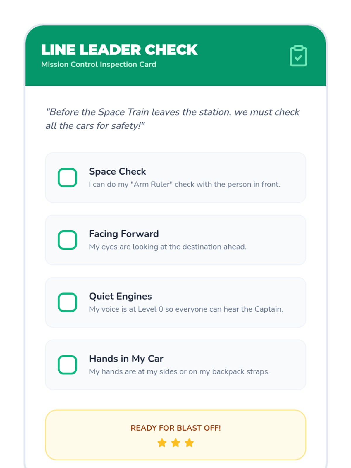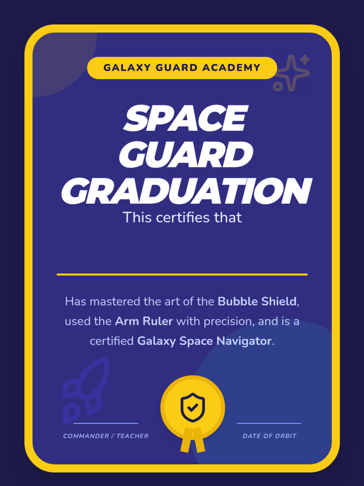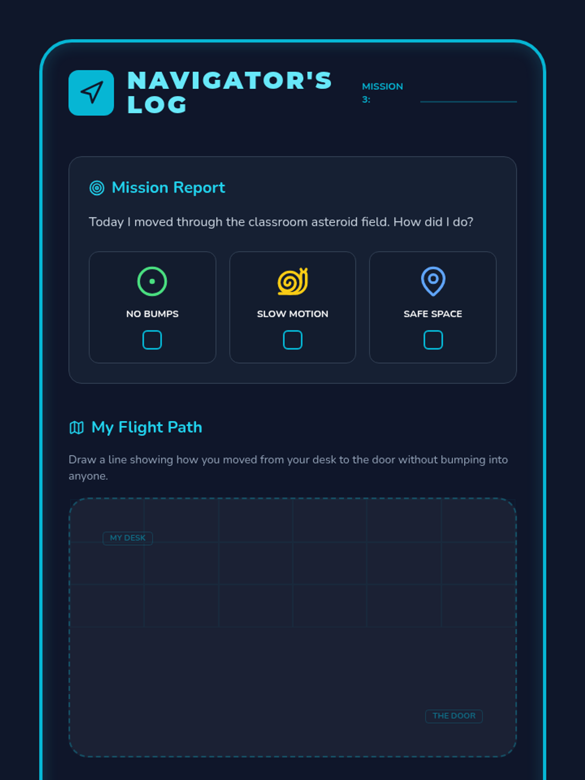 This sequence introduces personal space to 3rd grade students using a 'Space Explorer' theme. Students learn to visualize their personal bubble, use the arm-length rule, navigate shared spaces, line up effectively, and self-monitor their social distance.