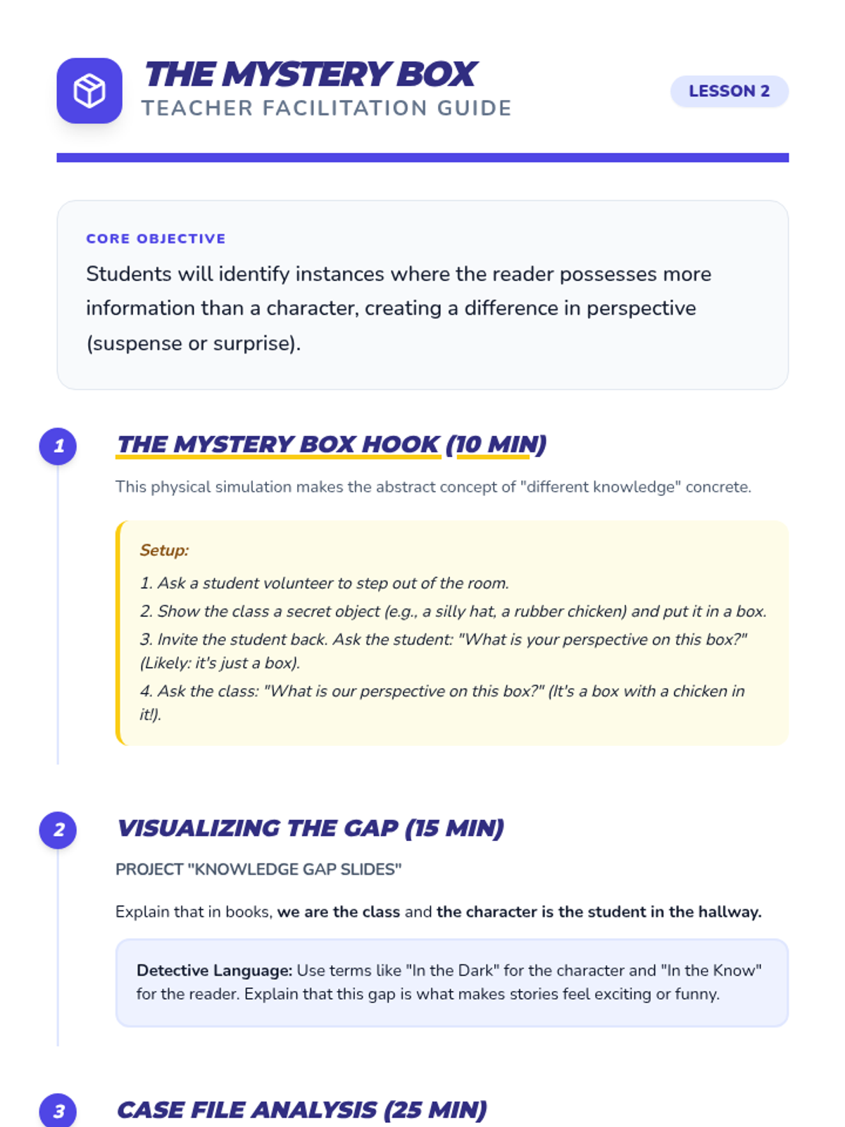 A drama-focused sequence for 3rd grade that uses Mystery and Adventure plays to teach reading literature standards RL.3.1, RL.3.4, and RL.3.5. Students move from teacher modeling to independent practice using the gradual release of responsibility.