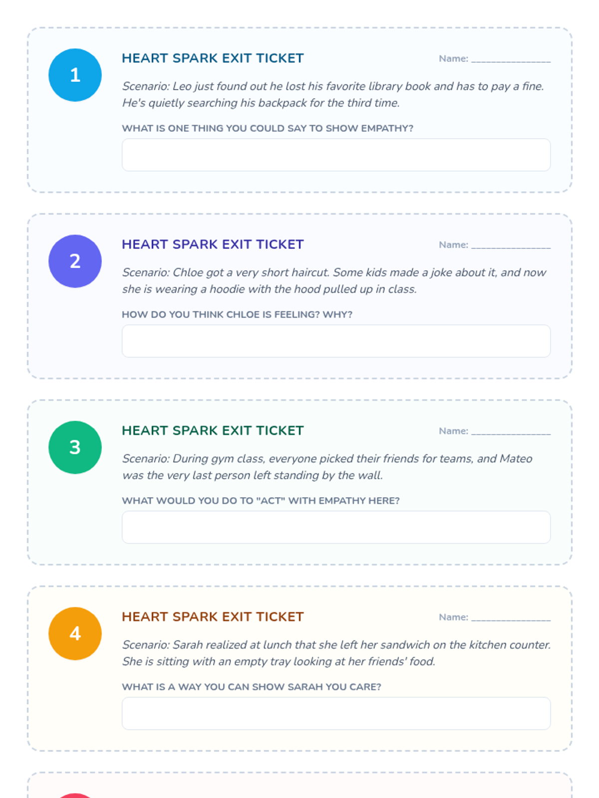 A comprehensive social-emotional learning unit designed for 5th graders to develop empathy, perspective-taking skills, and compassionate action through scenarios, project-based learning, and daily reflections.
