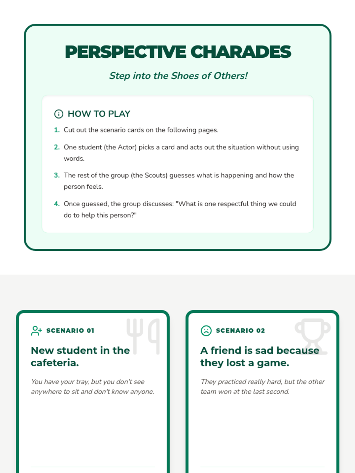 A comprehensive 15-session unit for third graders designed to build perspective-taking skills, empathy, and respect through games, role-play, and creative reflection.