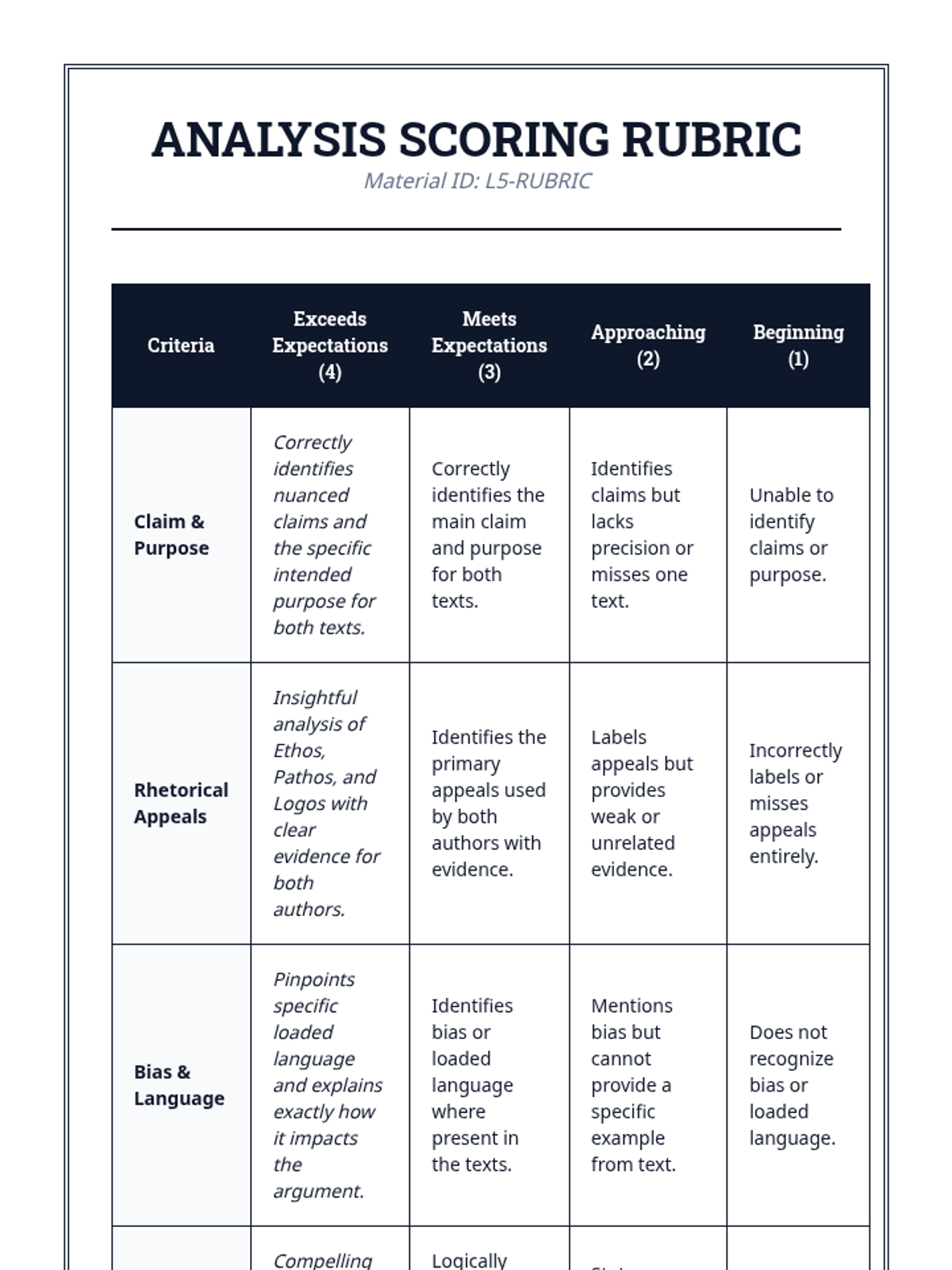 A 10th-grade English sequence focused on media literacy, helping students distinguish between fact and opinion, identify claims, analyze rhetorical appeals, and detect bias in persuasive texts.
