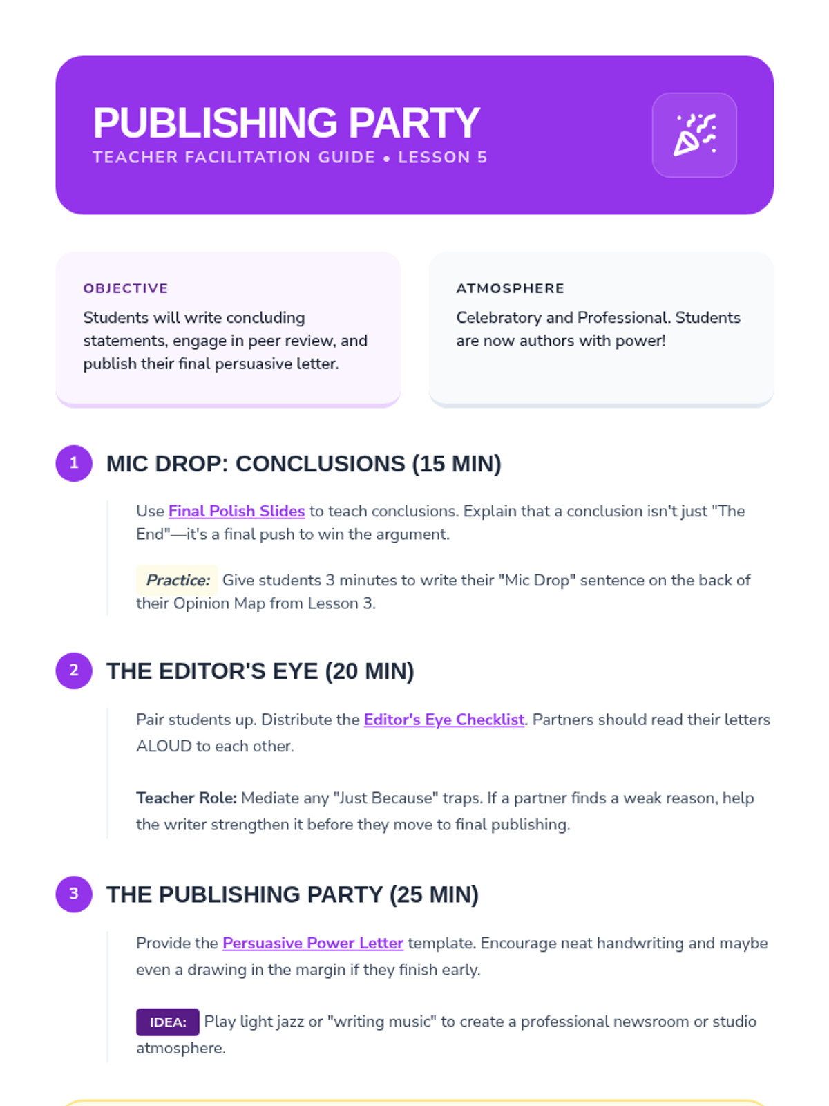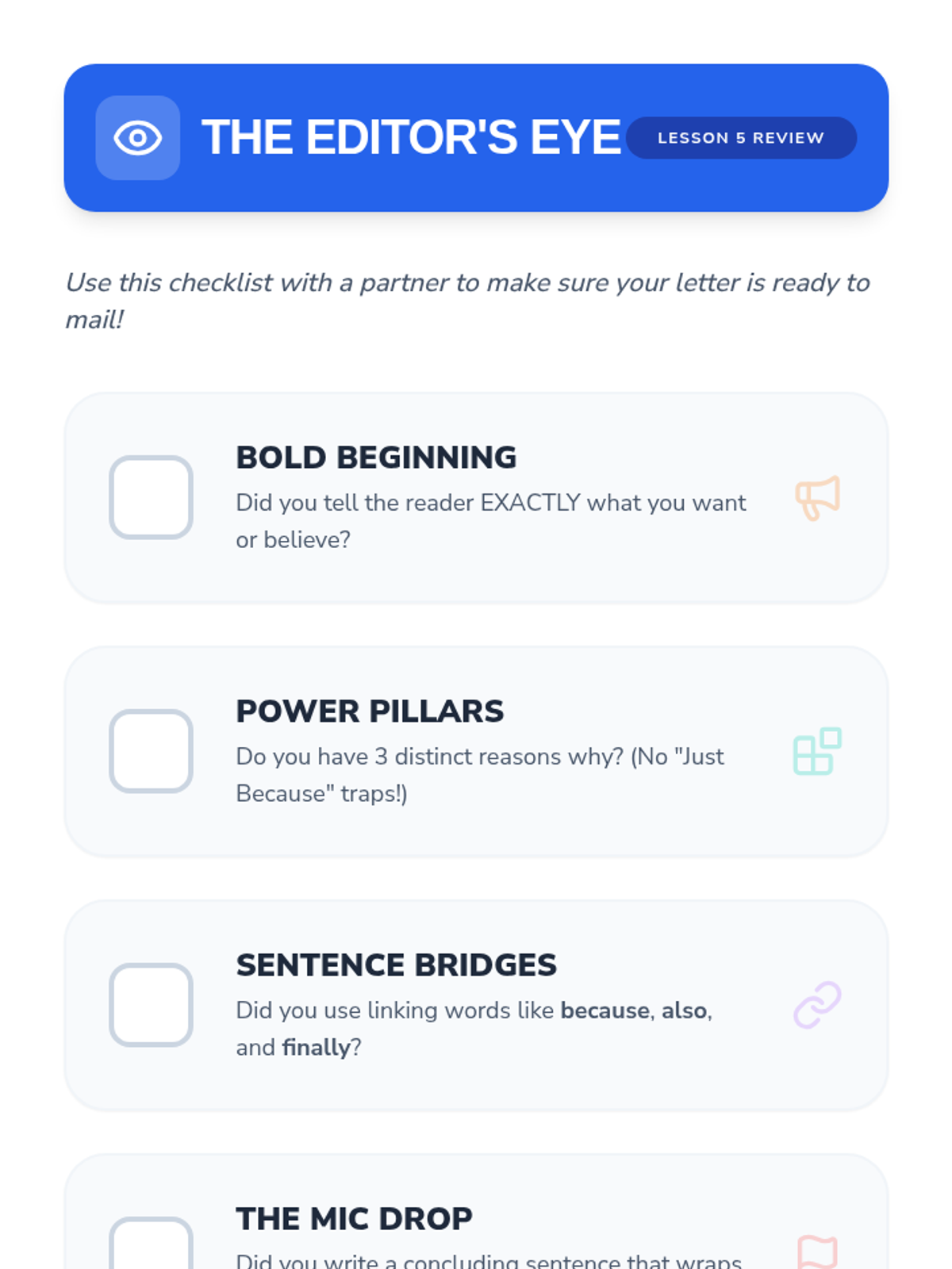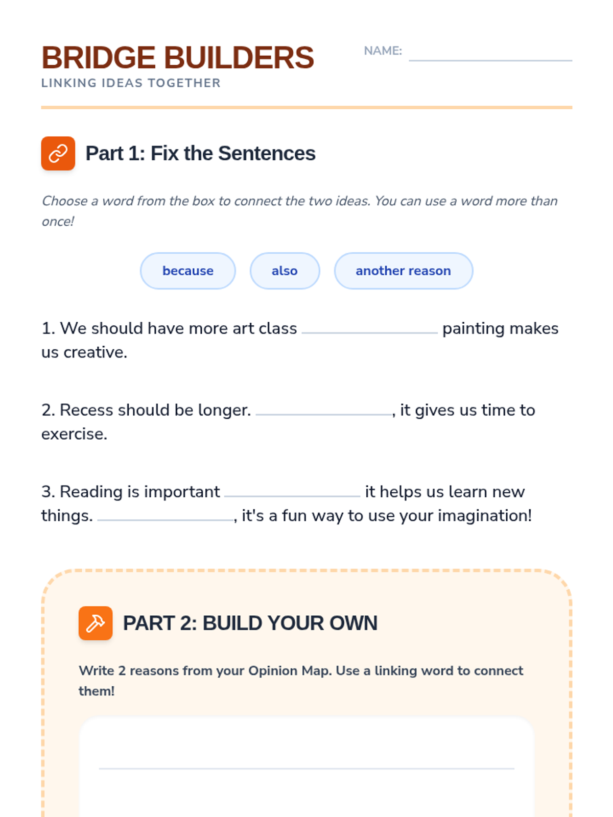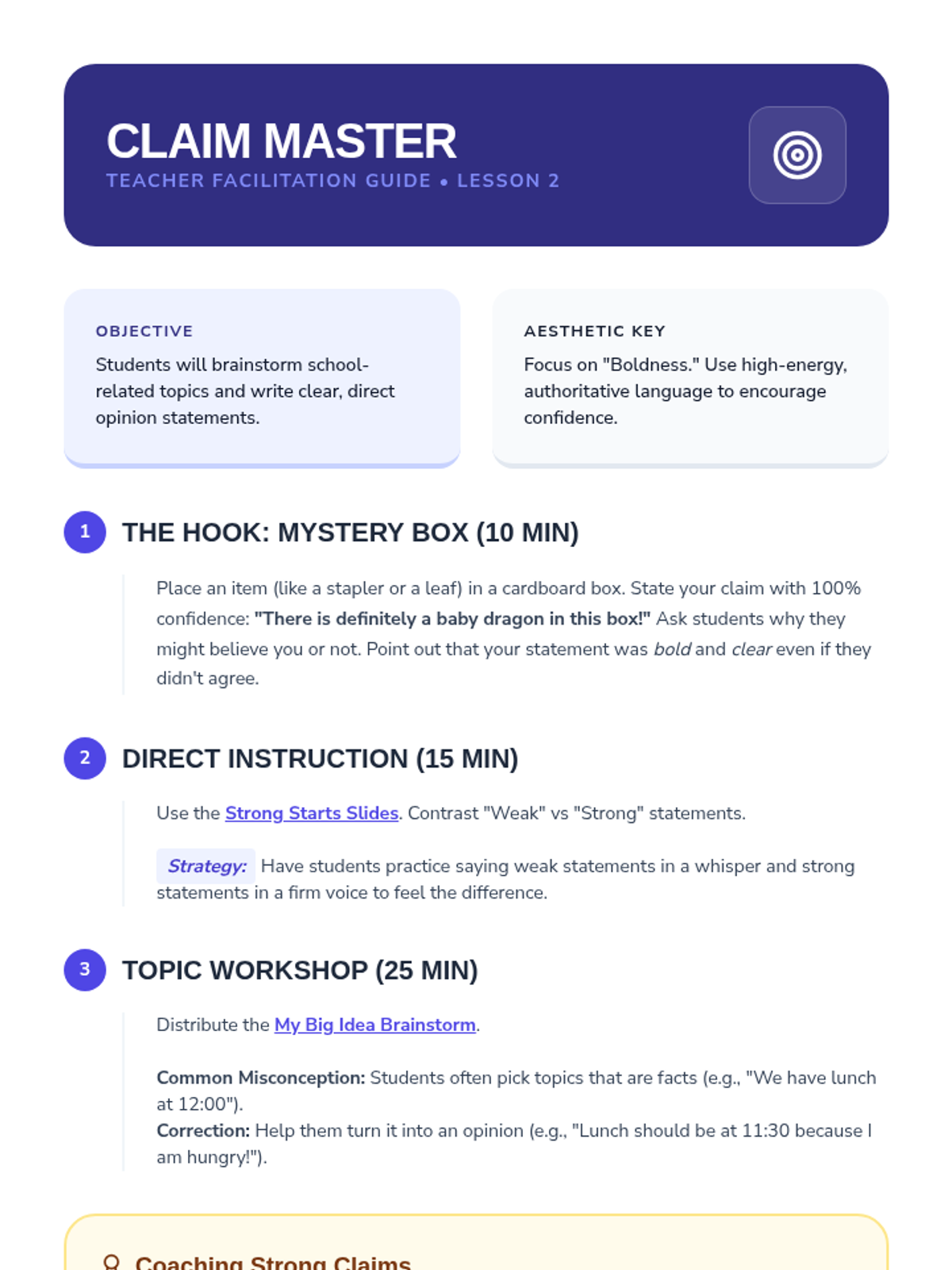 A comprehensive 2nd-grade writing unit where students learn to distinguish between facts and opinions, formulate strong claims, support them with logical reasons, use linking words, and draft a final persuasive letter.
