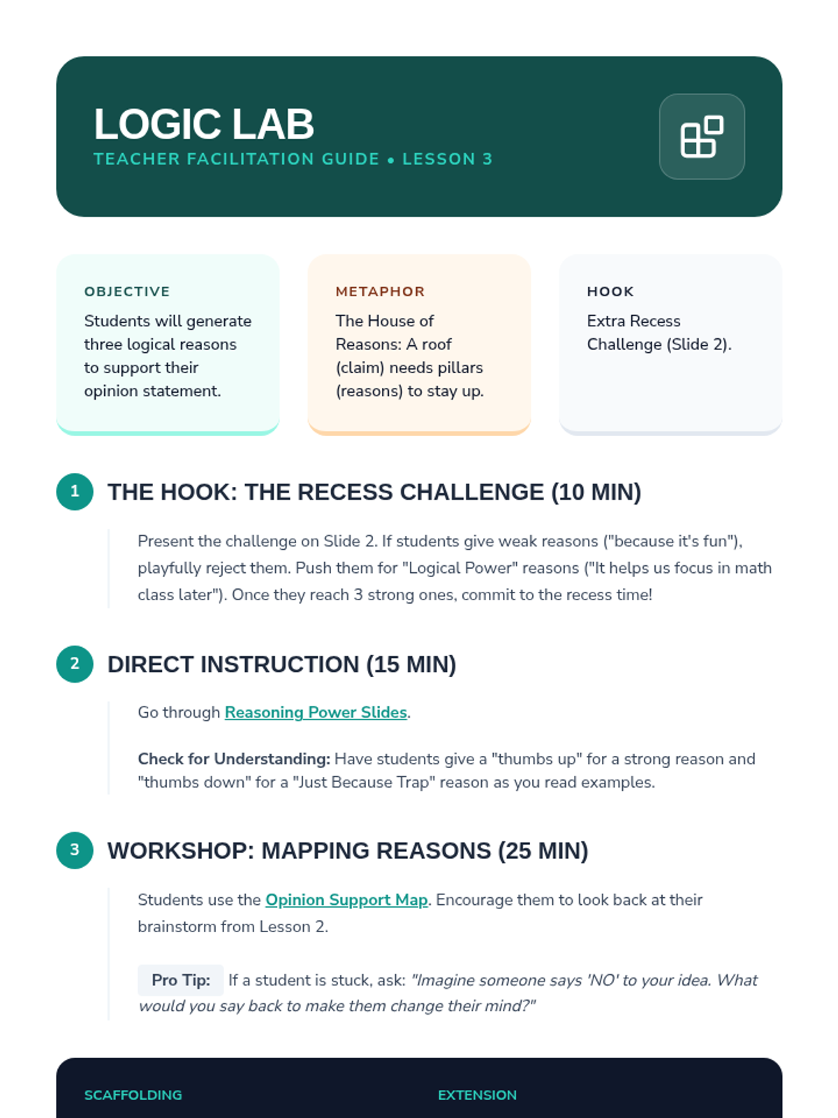 A 12-lesson comprehension mastery program focused on metacognition, reasoning, and evidence-based thinking. Students progress from basic thinking awareness to complex deductive reasoning and synthesis. Inspired by Reading Detective and Comprehension Connections.
