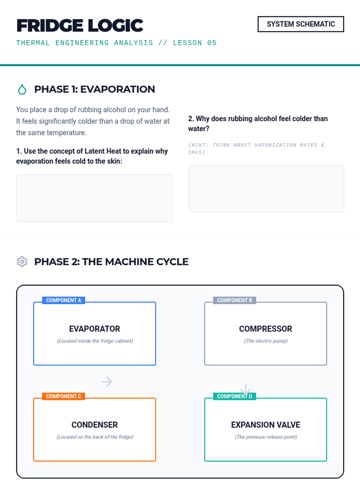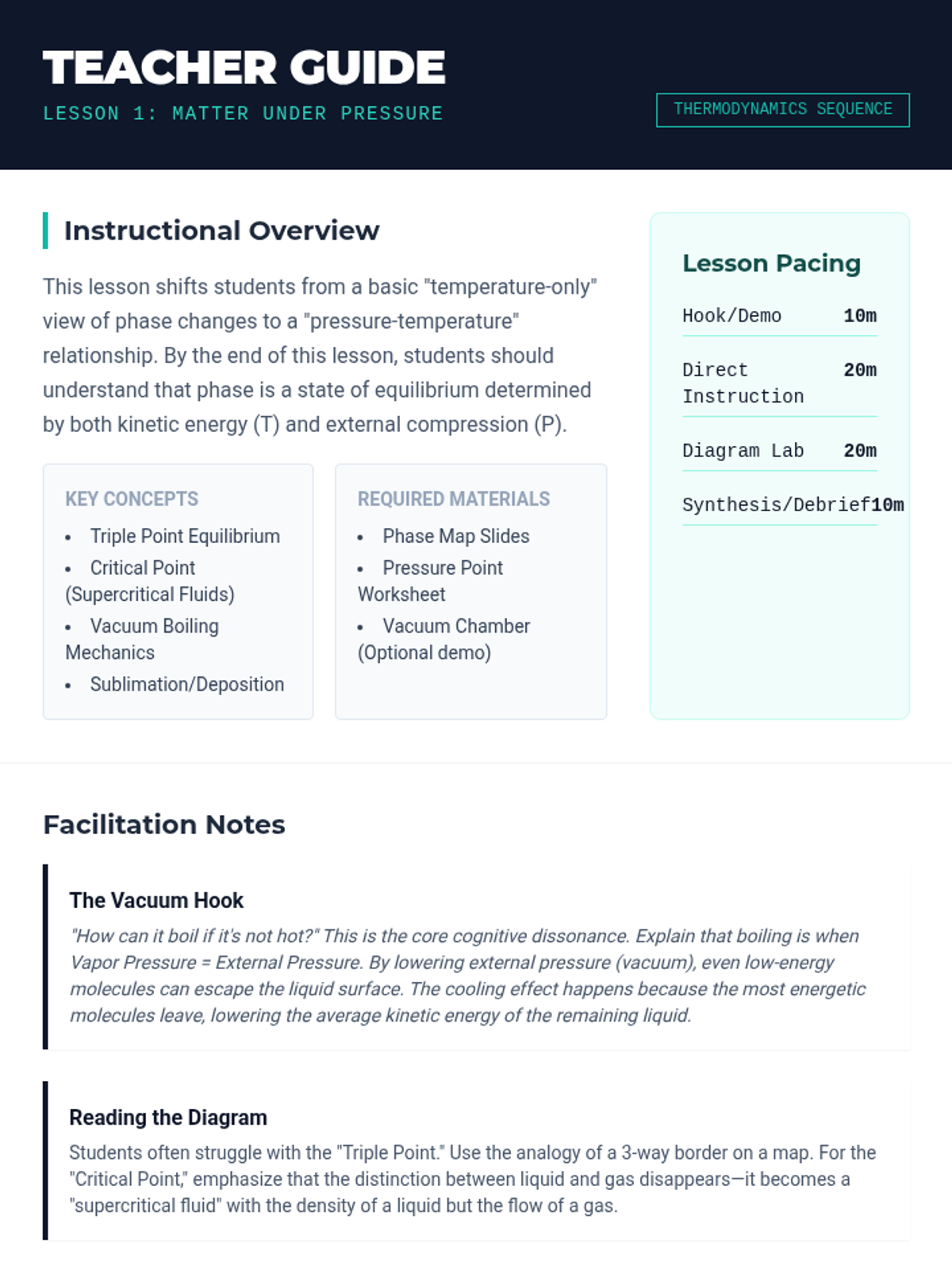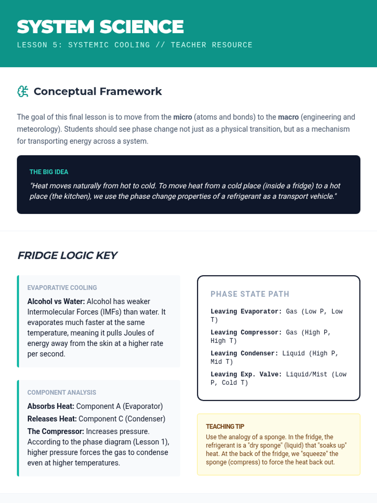 This sequence explores the energy dynamics of phase changes, moving beyond simple heating to latent heat and states of matter. Students analyze heating curves to identify plateaus where potential energy changes while kinetic energy remains constant, concluding with real-world applications in refrigeration and meteorology.