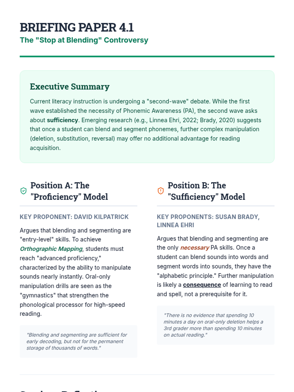 A graduate-level seminar sequence exploring the empirical evidence and theoretical debates surrounding advanced phoneme manipulation, focusing on critical analysis of the 'Science of Reading' research landscape.