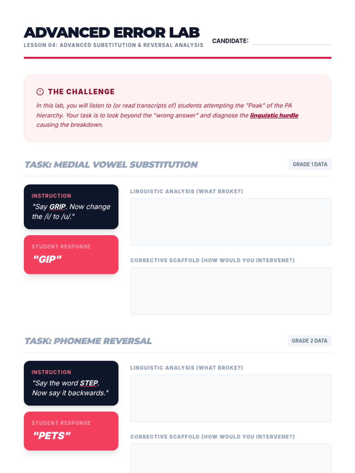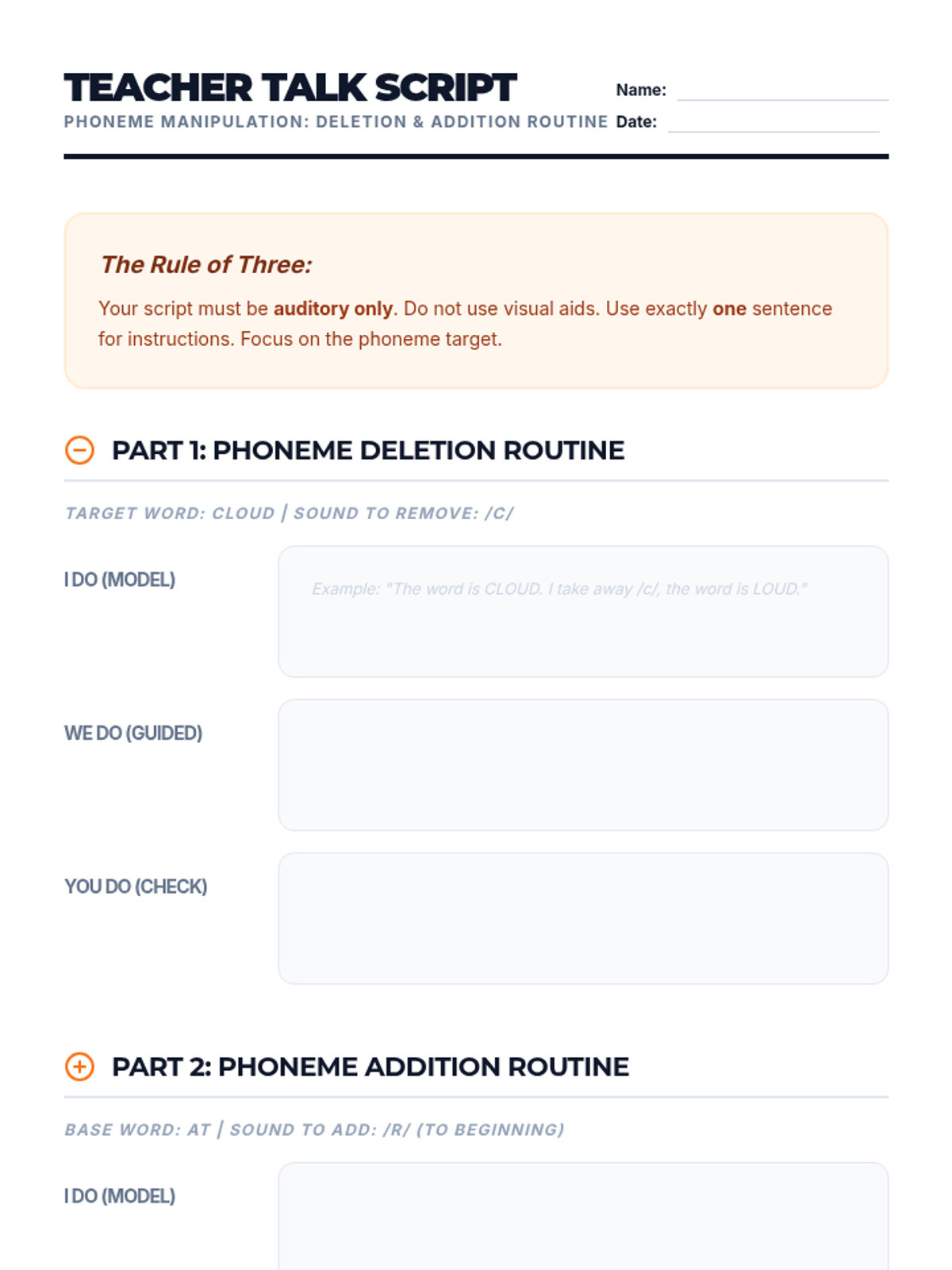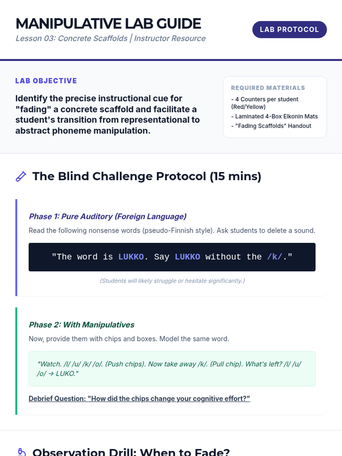 A comprehensive sequence for pre-service teachers on the pedagogical strategies for teaching phoneme manipulation. The course covers developmental hierarchies, explicit modeling (I Do, We Do, You Do), the use of manipulatives, advanced linguistic challenges, and peer-teaching simulations.