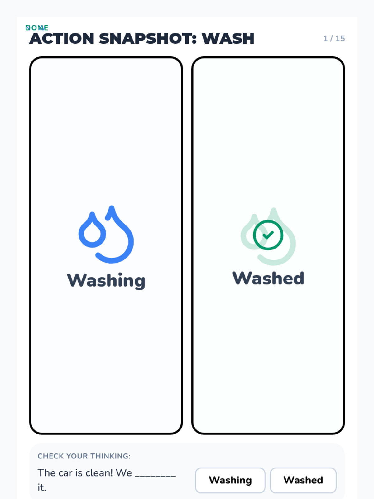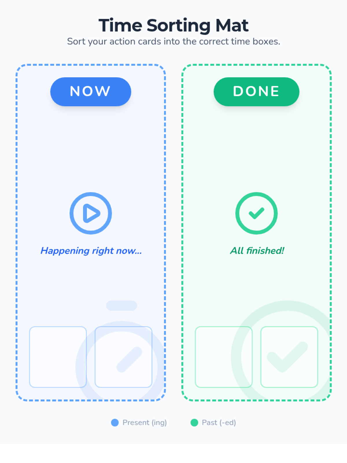A unit focused on mastering early temporal concepts and basic grammatical markers for past and present actions.