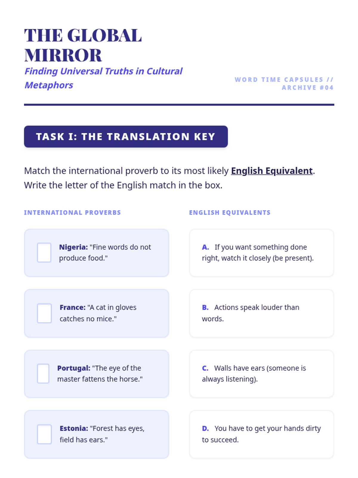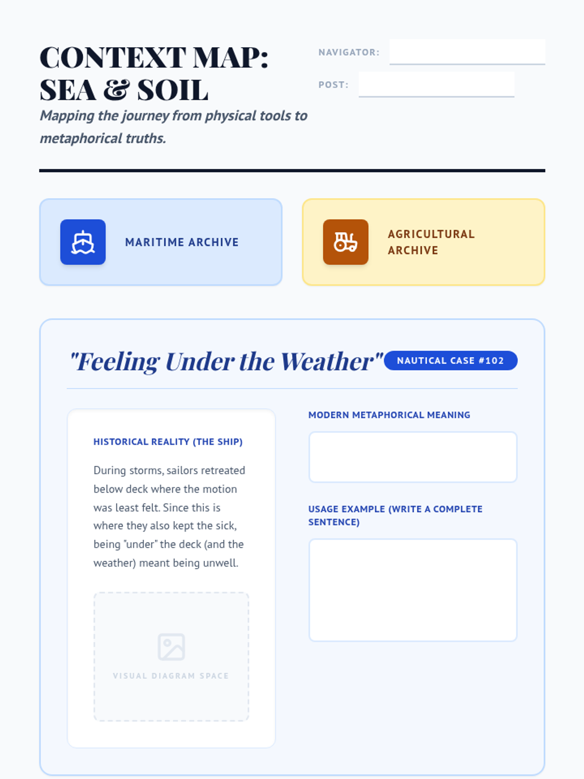 A comprehensive 7th-grade ELA sequence exploring the etymology and historical contexts of idioms and adages, from Shakespeare and Greek mythology to nautical history and global cultures.