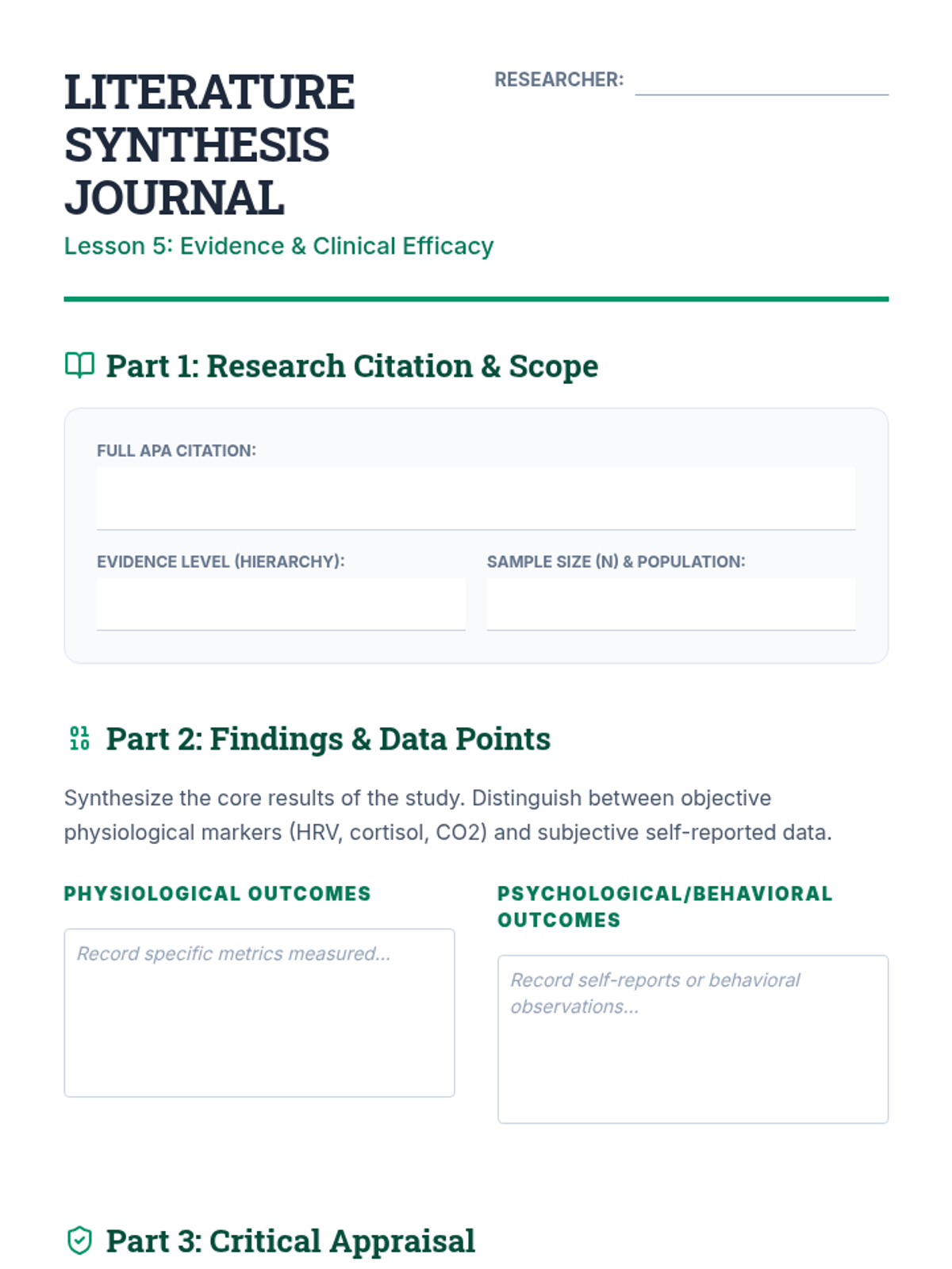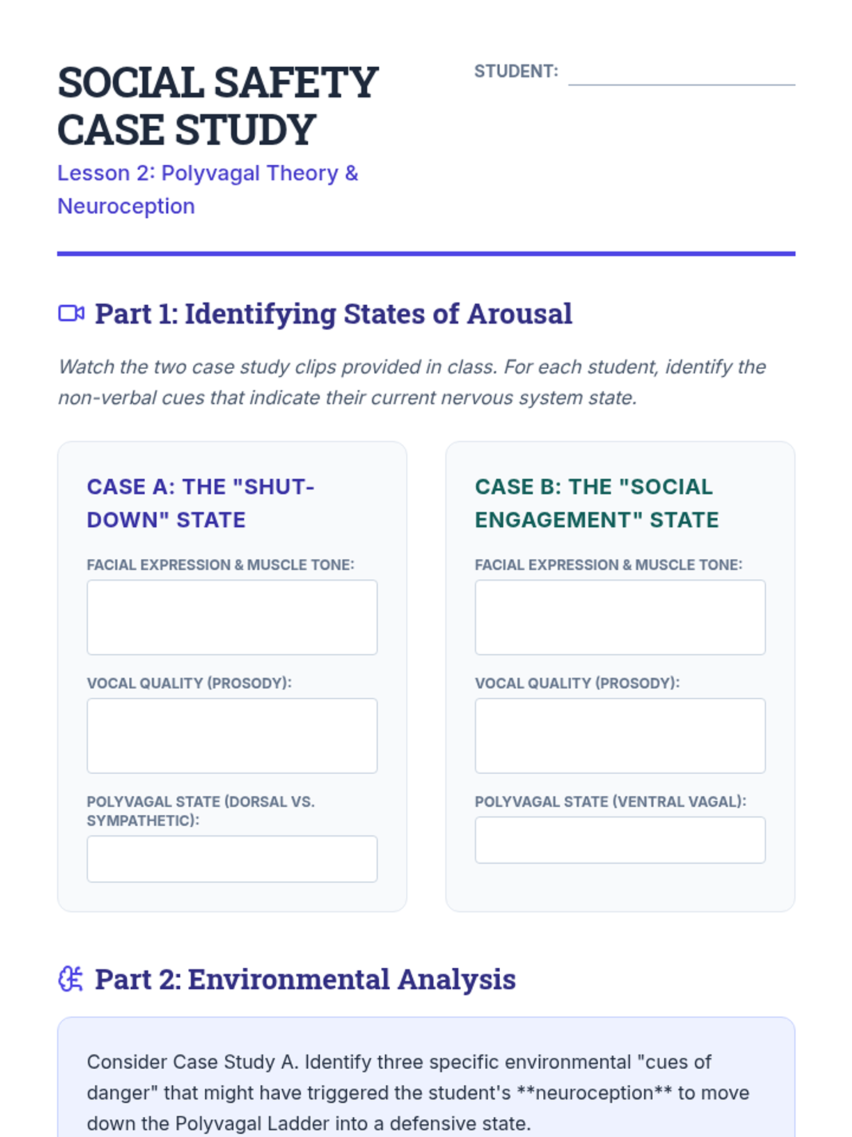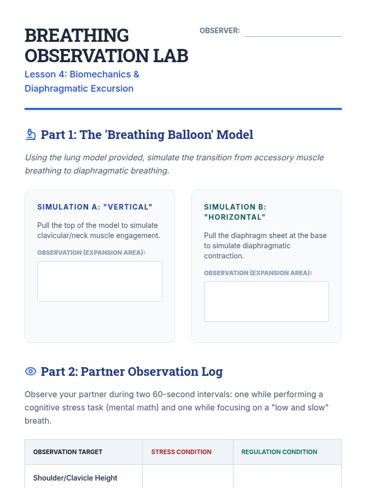 This undergraduate sequence explores the physiological underpinnings of sensory regulation, focusing on the Autonomic Nervous System, Polyvagal Theory, and the biomechanics of respiration to understand deep breathing as a clinical intervention.