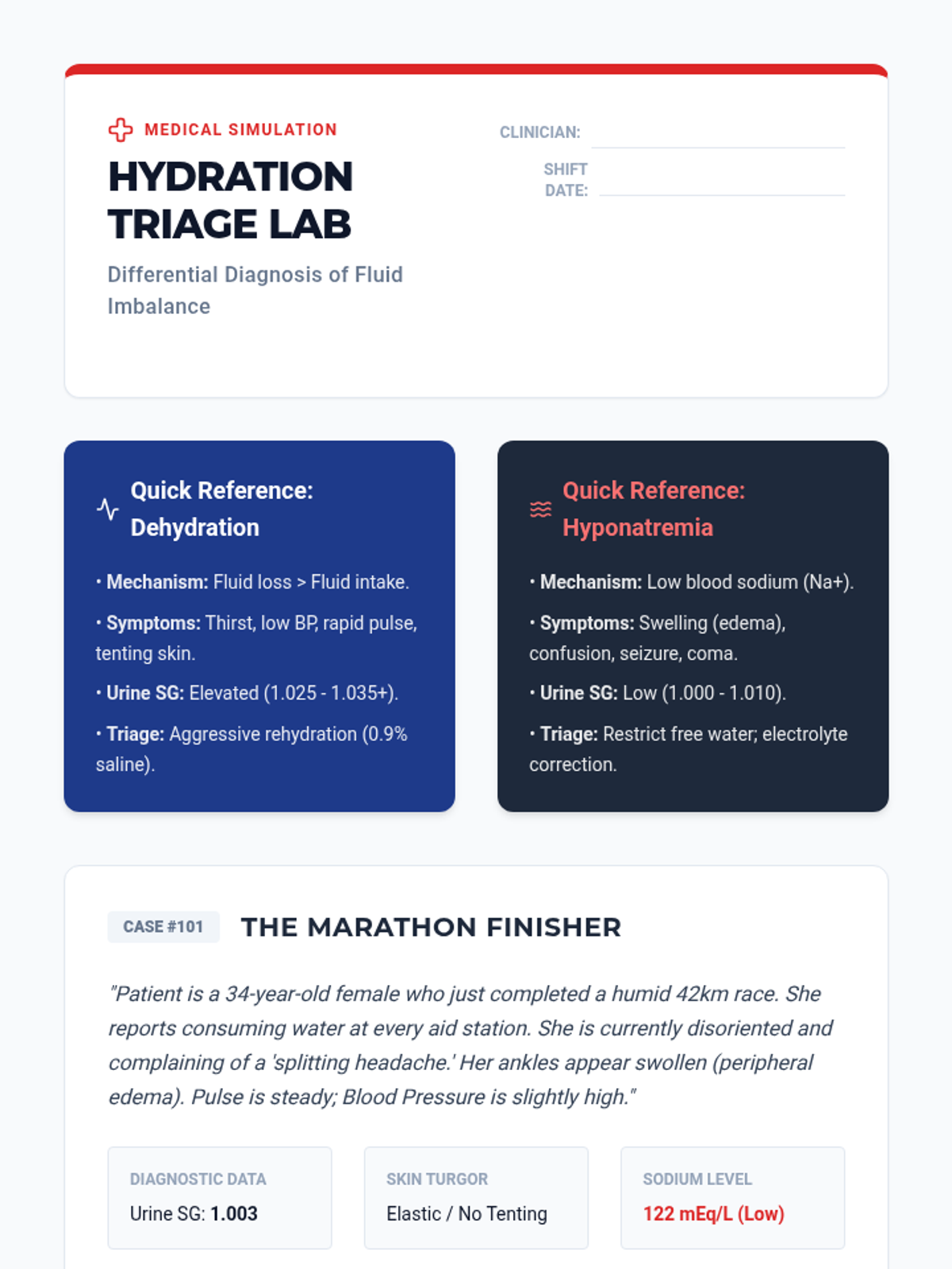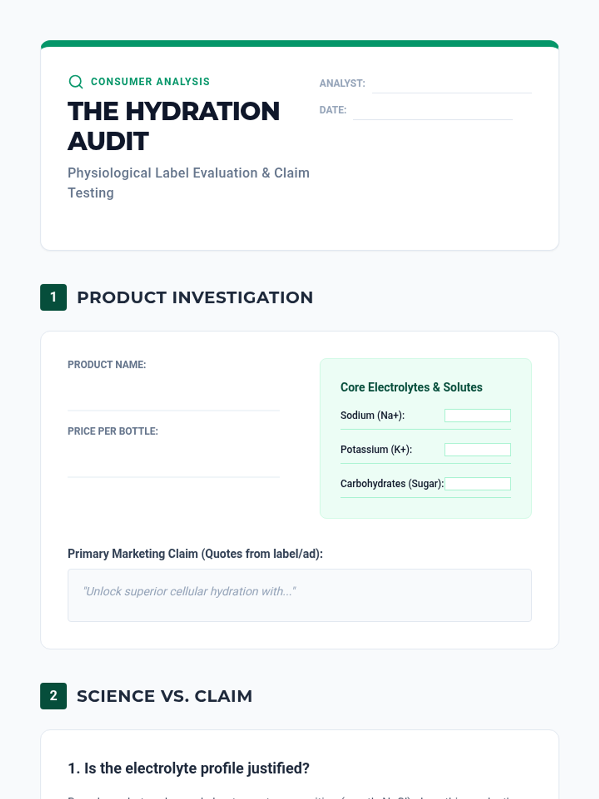 This advanced health sequence challenges 12th-grade students to investigate the physiological mechanisms of osmoregulation and fluid balance. Students analyze the biological necessity of water, diagnose hydration disorders through clinical case studies, calculate personalized sweat rates, and critically evaluate the hydration market to optimize both physical and cognitive performance.